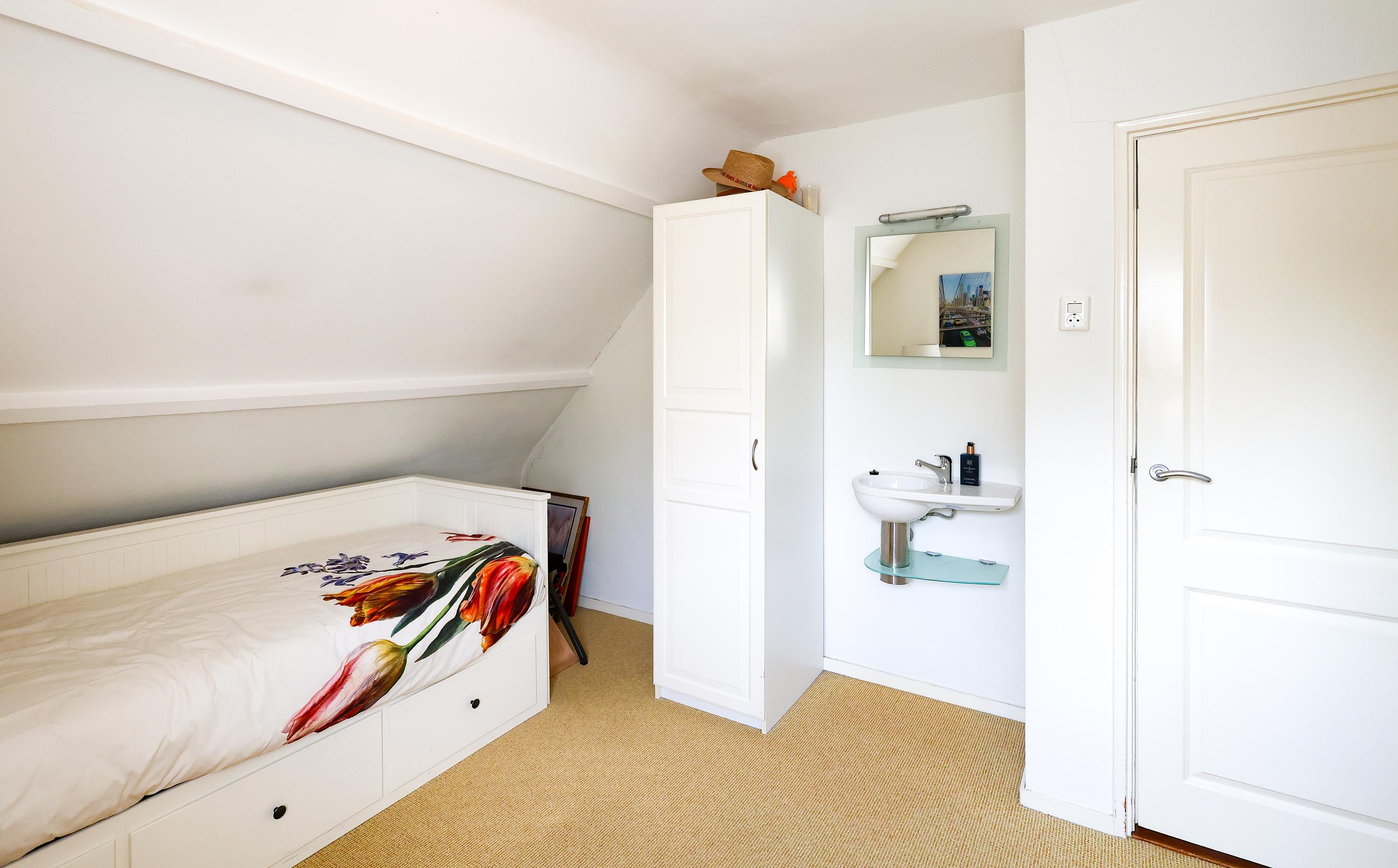 The detached studio of approx. 16 m² — formerly a garage — has been converted into a bright, heated space with water and electricity. An ideal spot for peaceful work or creative pursuits. There is also potential to extend the ground floor towards the studio.