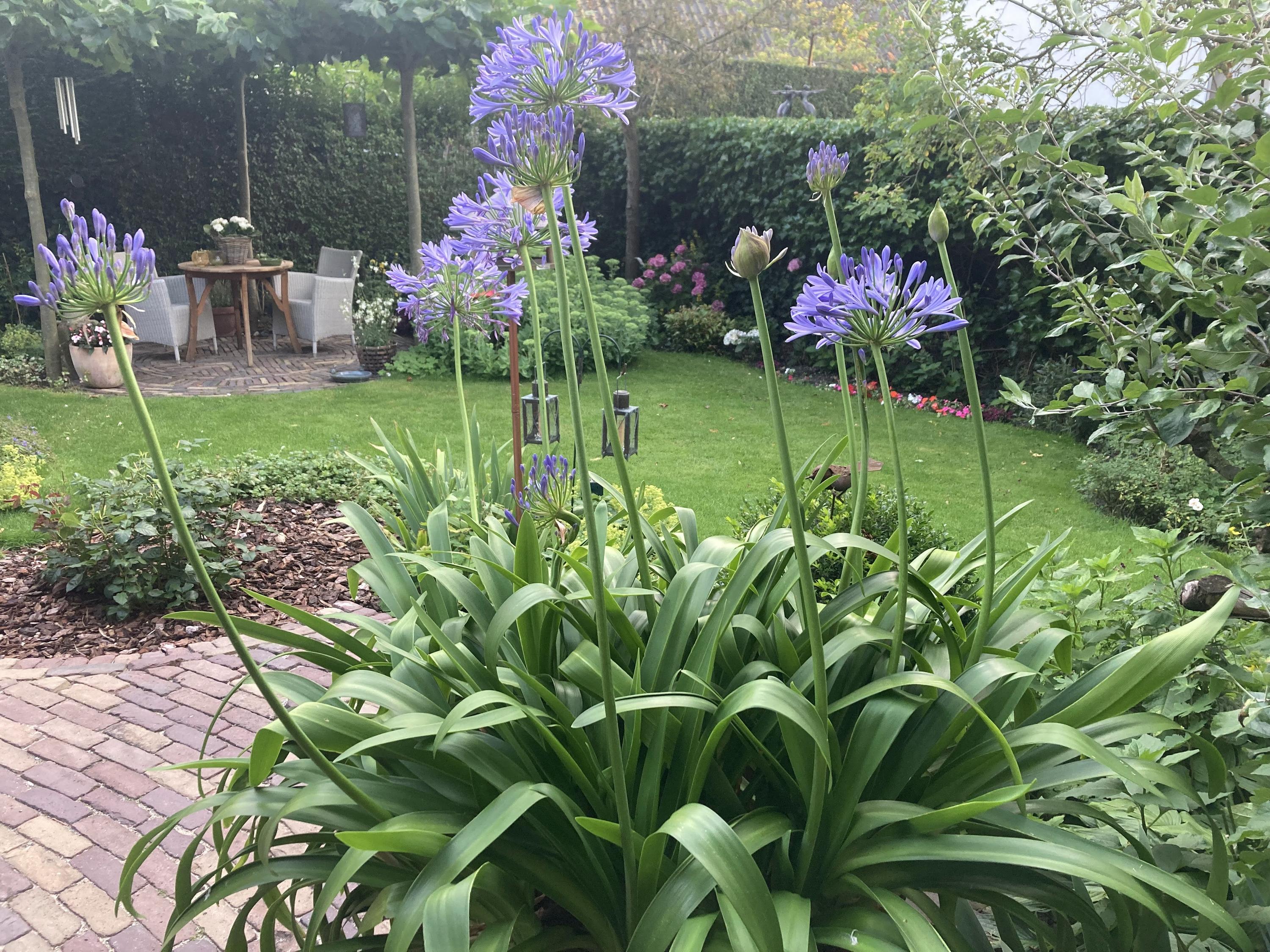 Beautifully landscaped all around, with the largest section facing southwest. Sunny, romantic, and full of flowers. Thanks to the various seating areas, there’s always a perfect spot to relax.