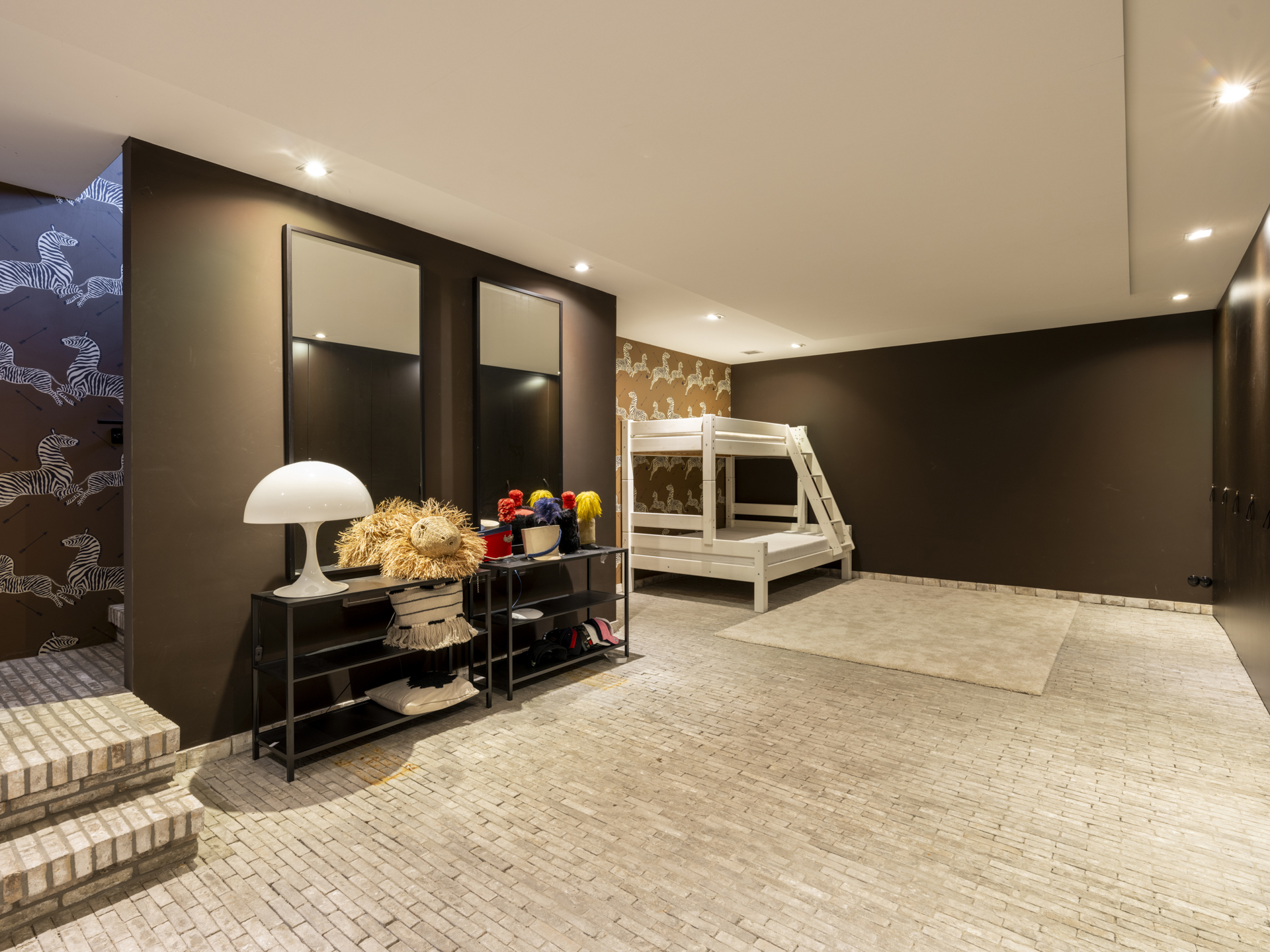 The other side of the floor is for the children; the two bedrooms have their own beautifully finished bathroom. The bedrooms are situated at the front and back.