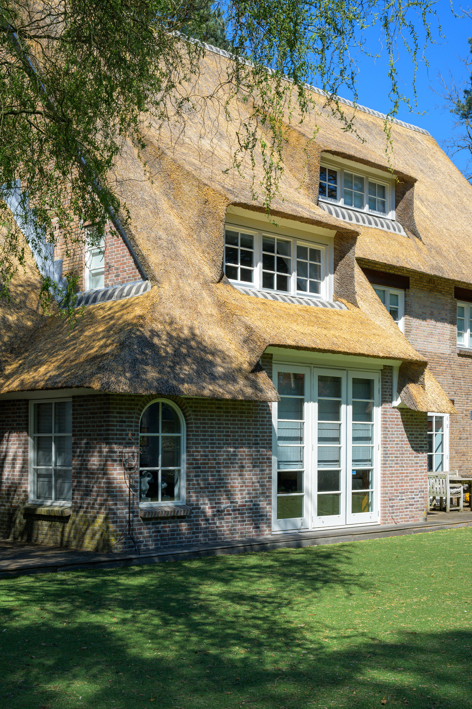 Very unique, perfectly maintained, thatched country house with, among other things, a luxurious wellness area with indoor swimming pool and fantastic outdoor space, situated at a prominent point in the middle of the popular and stately residential area "Ruitersbos" with its beautiful trees and within walking distance of the Mastbos.