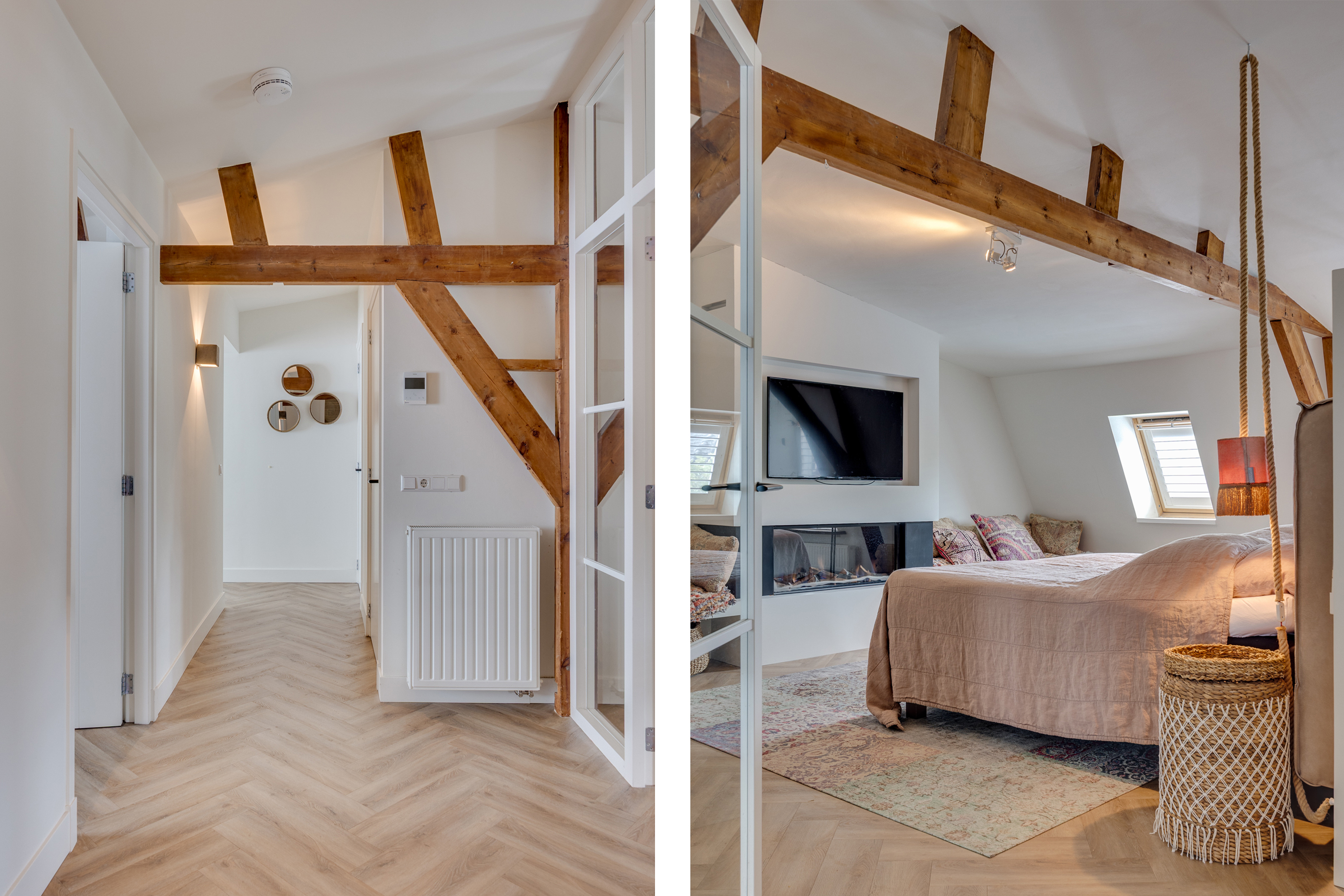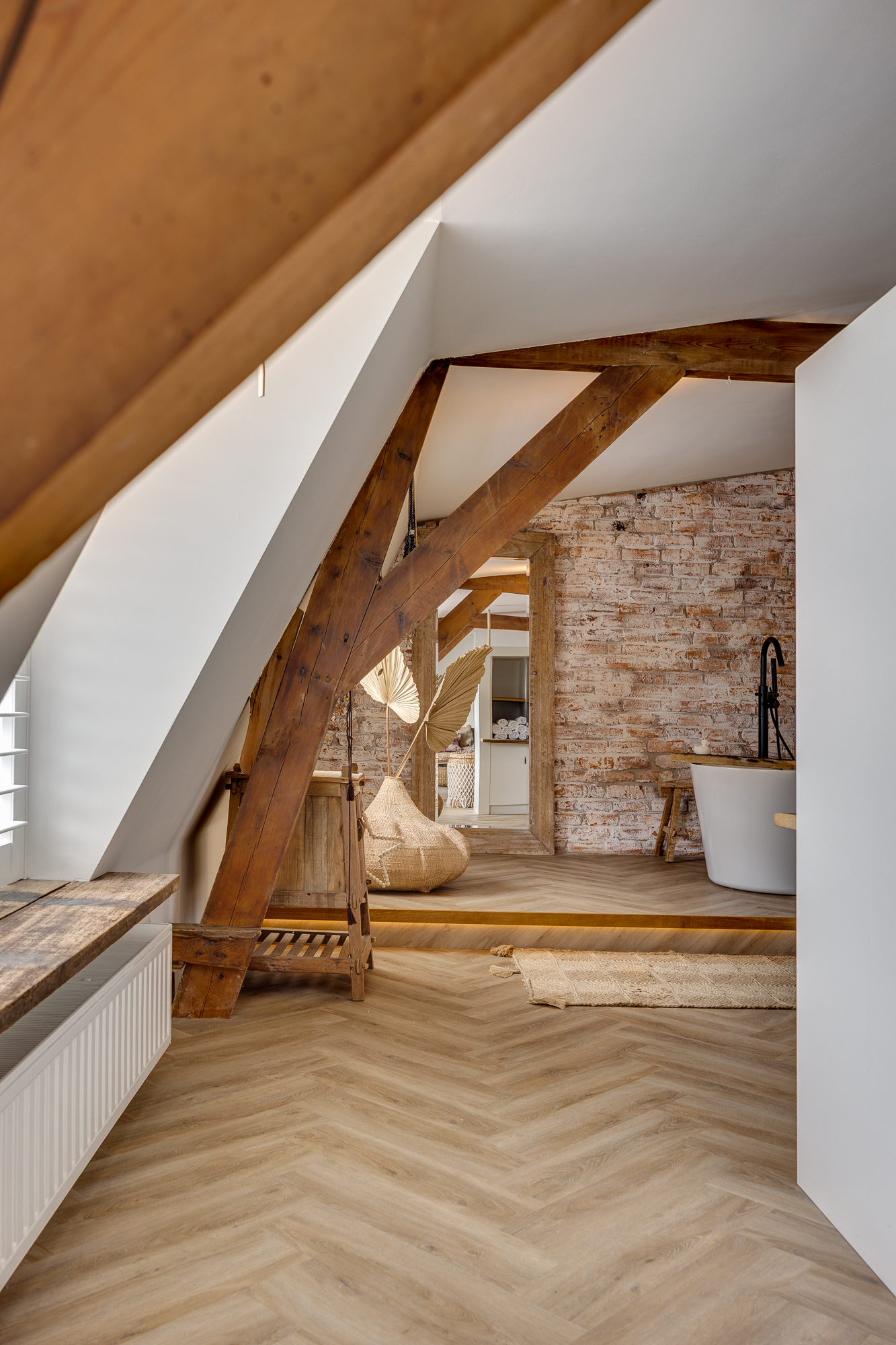 The spacious living room at the front is a real eye-catcher, with large windows that provide an abundance of natural light and offer a beautiful view of the lively Kerkbrink. The stylish PVC flooring that runs throughout the entire living area is immediately noticeable. This flooring combines a warm, soothing look with practical features such as durability and ease of maintenance. It forms the perfect basis for any interior. The modern gas fireplace creates a cozy ambiance, ideal for atmospheric evenings. In addition, the air conditioning ensures that the indoor climate remains pleasant throughout the year. Everything about this floor exudes comfort, style, and luxury.