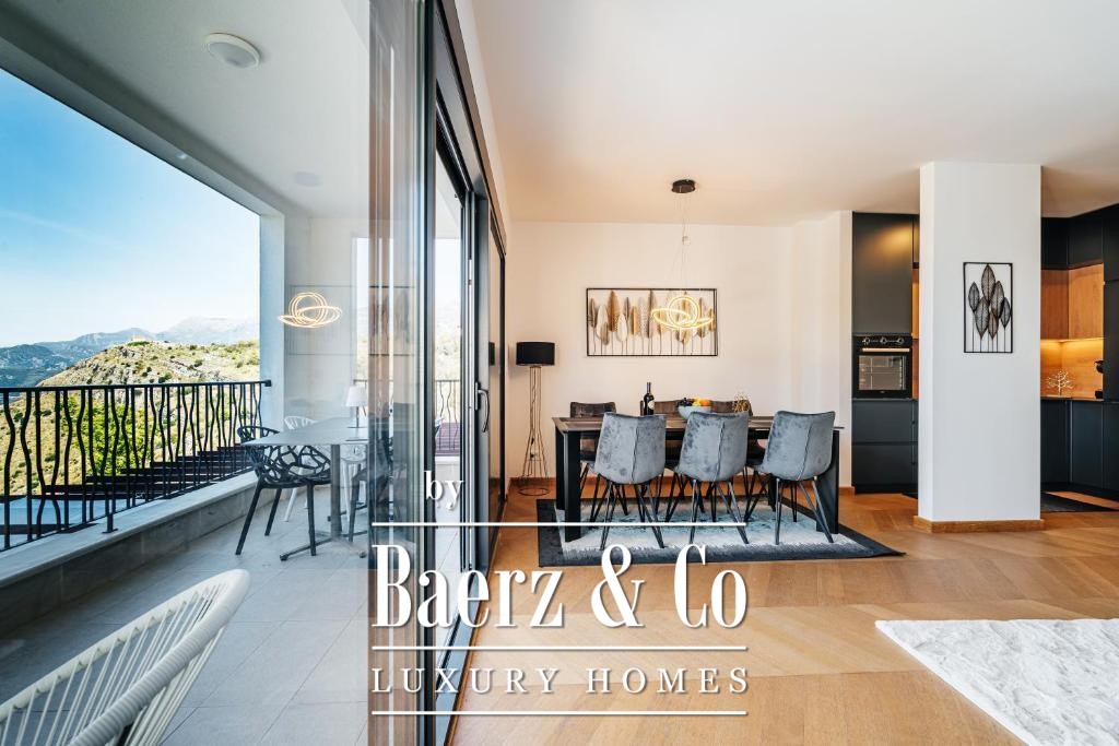 Apartment Budva Montenegro sits quietly in the hills of Sveti Stefan, offering an understated retreat just 13 kilometers from Budva’s vibrant center. Embraced by nature, this 90 m² residence privileges calm, with the Adriatic coast and its beaches only 3 kilometers away. Within a discreet private complex of four buildings, each designed for privacy, this apartment is situated on the first floor of a smaller building. There is private parking and an asphalt drive connecting to the main road, ensuring ease of access without intrusion.