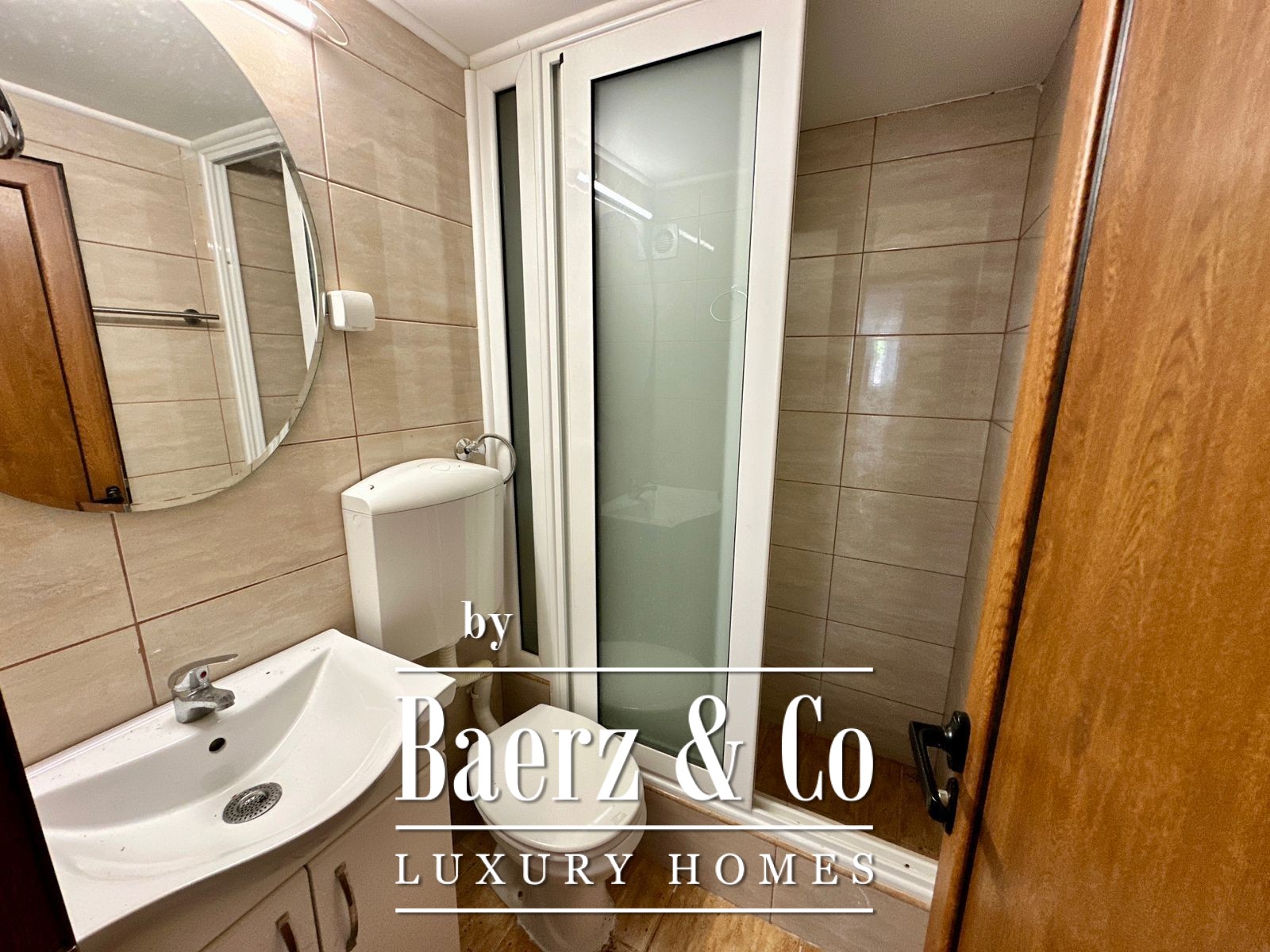 Within its 150 square metres, the layout is considered: three living rooms, two kitchens with dining space, five bedrooms, two bathrooms, an additional toilet, and three terraces that welcome sea breezes and mountain views. The home is fully furnished and ready for immediate occupancy, balancing comfort and function.