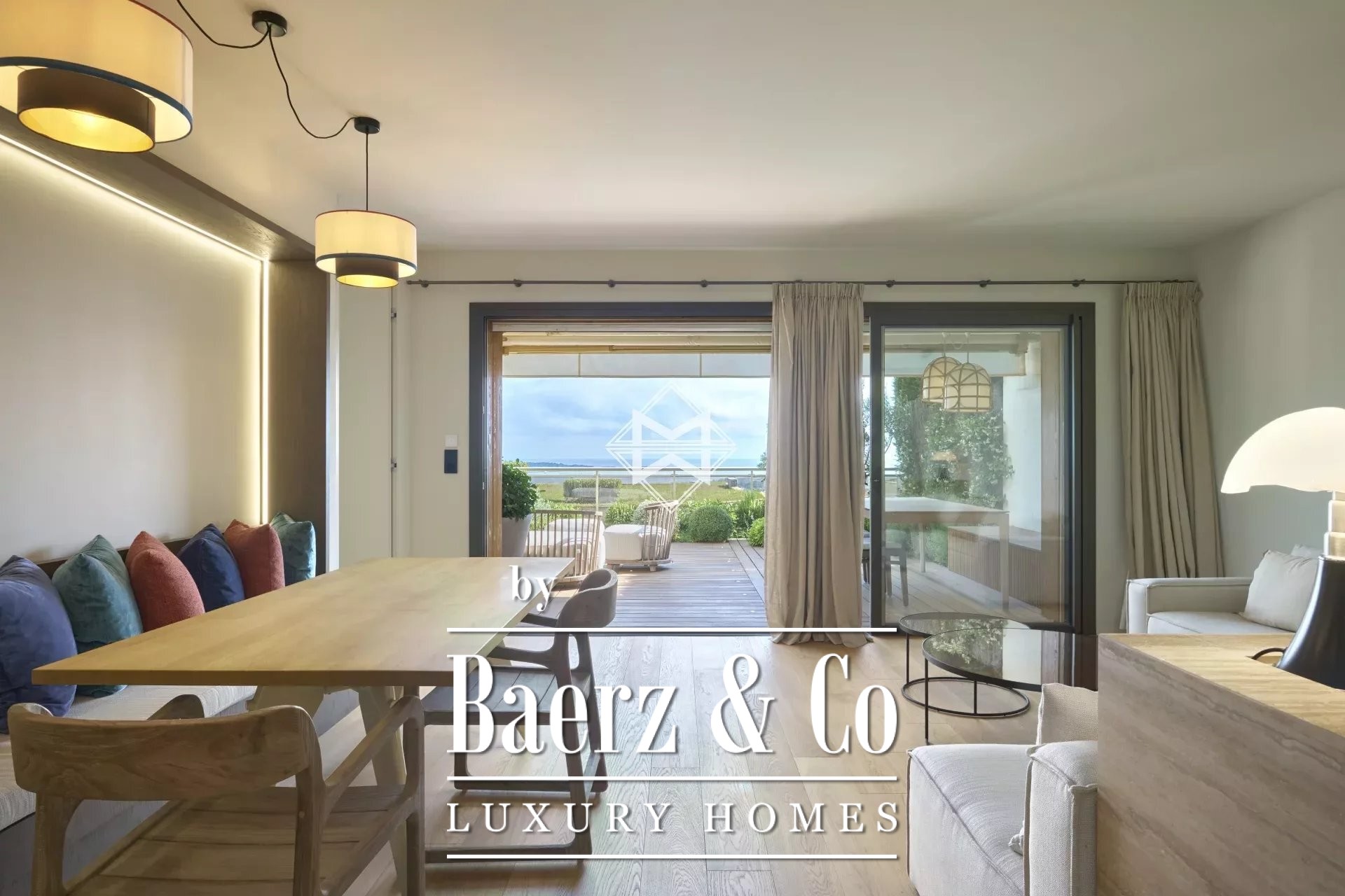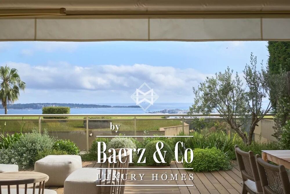 Two en-suite bedrooms, each with either a bathroom or a shower room and a dressing room, provide privacy and comfort. Discreet storage, a guest toilet, and refined finishes such as air-conditioning, double glazing, and automated systems underscore the apartment's thoughtful amenities. The secure residence features a caretaker, video security, a superb park, a swimming pool, and a tennis court for an elevated daily rhythm. A cellar and a closed garage complete the offering. This luxury apartment for sale in Cannes blends effortless living with rare Mediterranean perspective.
