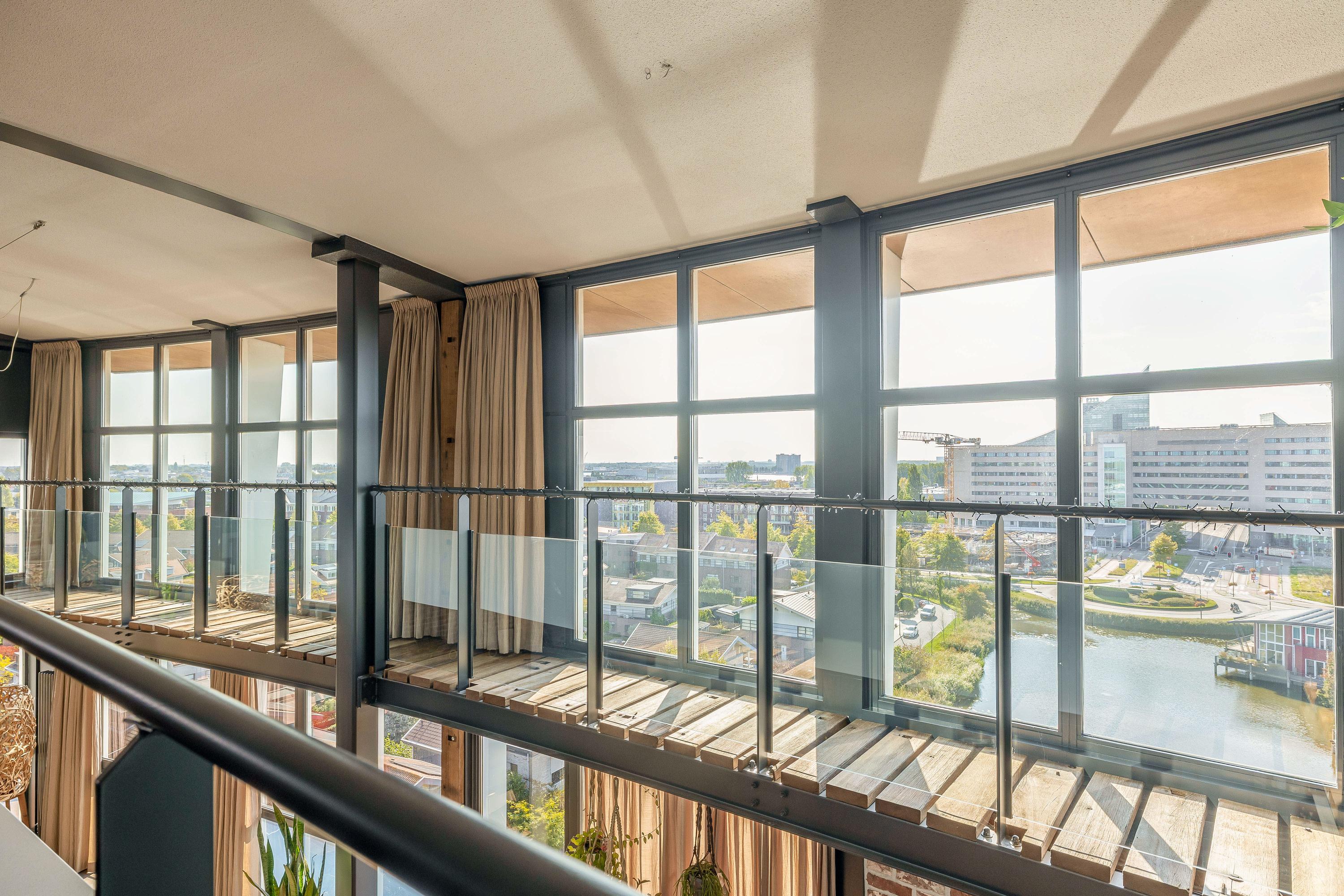 Living at a higher level takes on a whole new meaning here. This double penthouse on the 8th and 9th floors offers a whopping 251 m² of living space, making it a rare and exceptionally spacious city apartment. Everything about this home exudes comfort, luxury, and privacy. With no direct neighbours, you’ll enjoy peace, quiet, and total freedom. The panoramic windows offer breathtaking views of the Rotterdam skyline, the Brienenoord Bridge, and the lights of De Kuip – a view that never gets old. And it continues seamlessly into the outdoor space: spread across two levels, you have a total of 98 m² of roof terraces, ideally positioned to the southeast and southwest. That means: morning sun and evening sun with stunning sunsets.