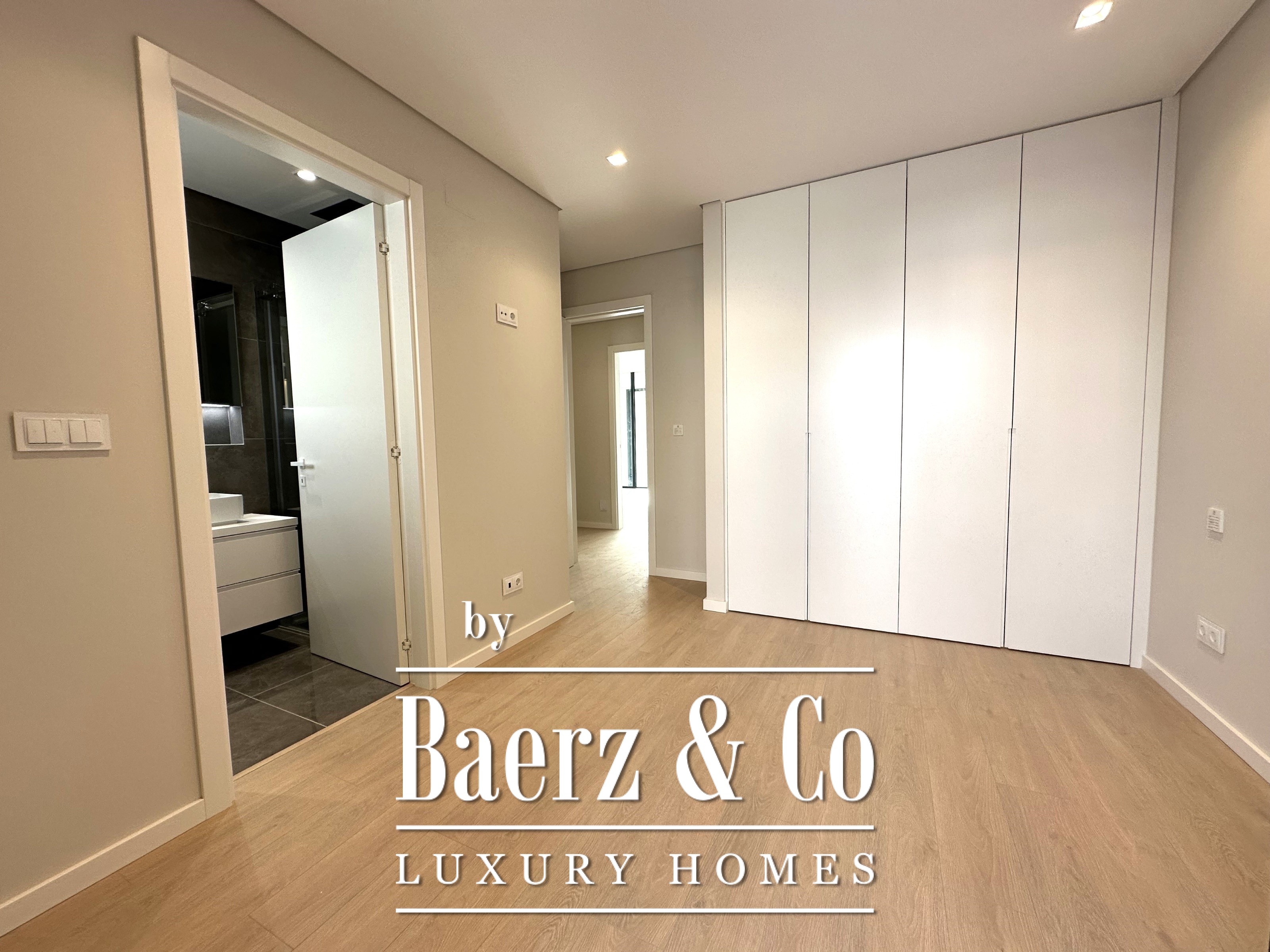 The lower level features three further suites, sized at 27 m², 13.43 m², and 12 m², each finished to a high standard. The absence of built-in wardrobes opens possibilities for fully custom interiors. An expansive terrace of 106 m² crowns the residence, offering views and space for outdoor leisure, supported by a 27 m² technical area. Additional amenities include a private garage of 72 m², an 8 m² laundry room, and further technical storage.