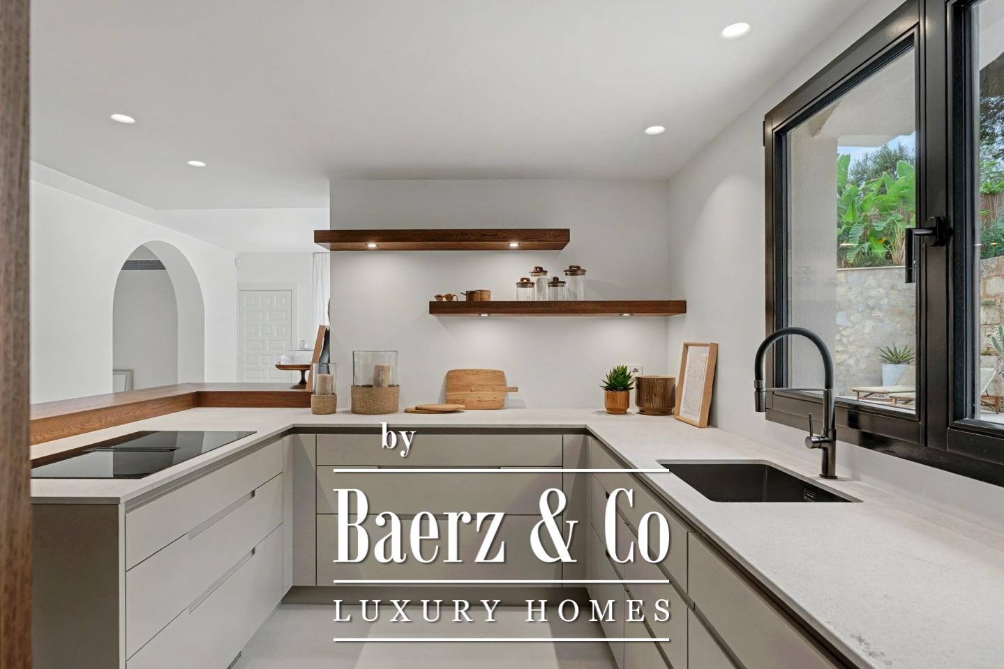 Luxury villa Costa d'en Blanes presents a compelling invitation to refined Mediterranean living. This fully refurbished residence, set in one of southwest Mallorca’s most esteemed enclaves, offers a thoughtfully modern design, partial sea views, and 320 m² of interior space on a 920 m² plot. The home’s comprehensive renovation combines premium materials and all-new high-end furnishings, achieving an understated elegance throughout.