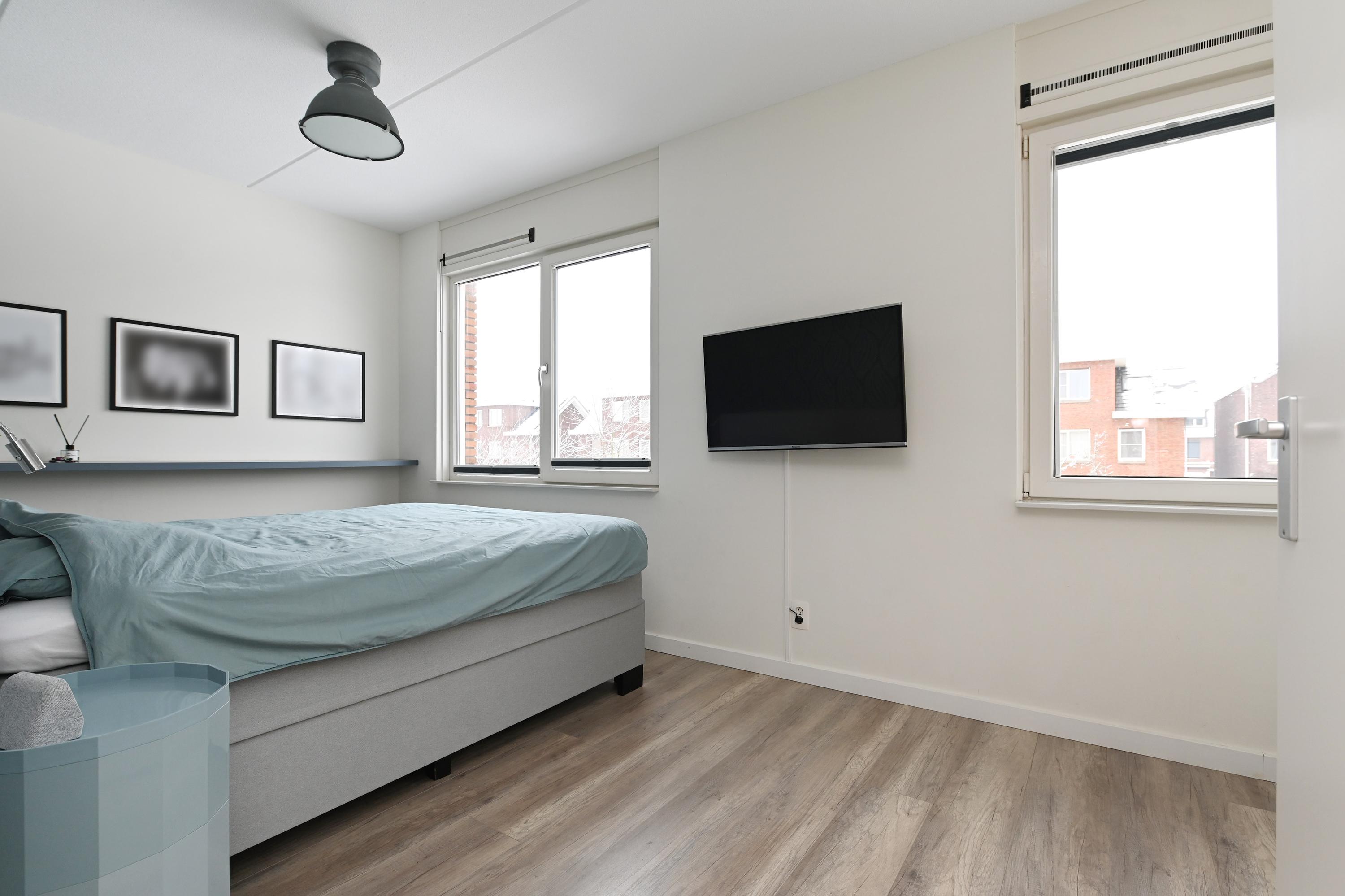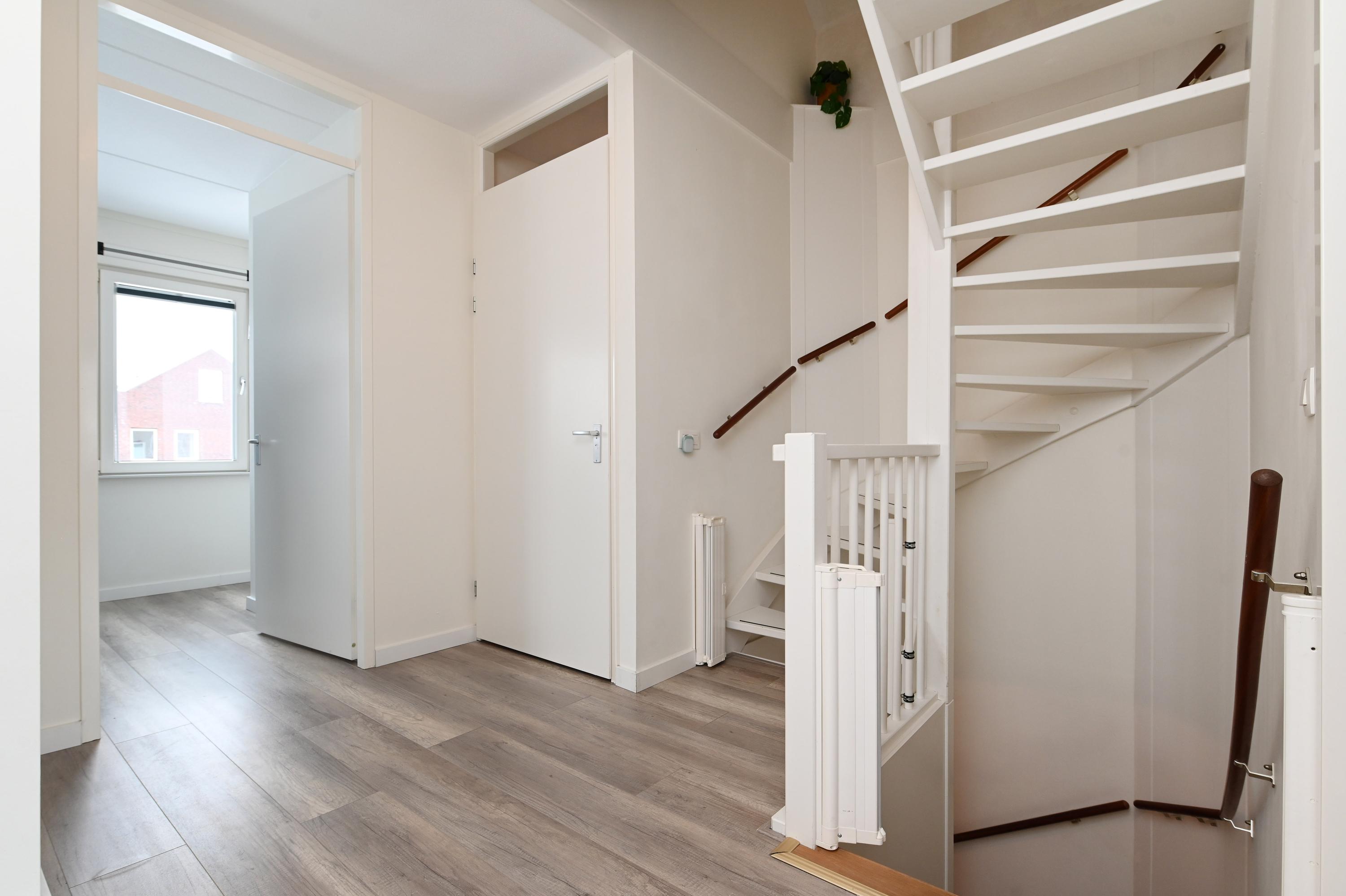 Overloop, twee slaapkamers, waarvan de slaapkamer aan de voorzijde is voorzien van een wastafel en tevens een semi-open ruimte heeft die in gebruik is als praktische berging. Hier bevindt zich tevens de aansluiting voor de wasmachine en de droger. De slaapkamer aan de achterzijde is eveneens heel ruim en deze heeft een extra dakvenster.