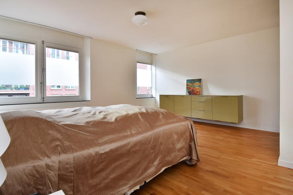 The soaring living area, measuring over 100 m², is defined by high windows, double glazing, and an impressive ceiling height of more than 5 meters, amplifying natural light and enhancing the sense of freedom within. The recently installed open kitchen by Siematic and a nearly new Boley fireplace add both comfort and understated luxury to the heart of the home. Four expansive bedrooms and two bathrooms offer privacy and flexibility; the primary suite is thoughtfully positioned next to a modern bathroom on the main level, while an elegant entresol connects visually with the living space below.