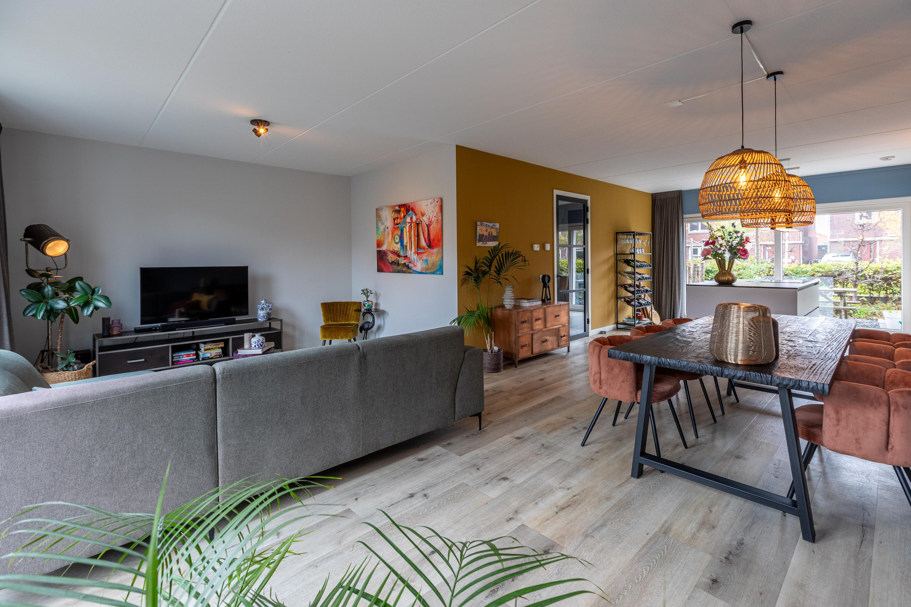 At the rear is the living area with a view of the beautifully landscaped garden. The living room is wide and offers enough space for a spacious sitting area. The sunny south-facing back garden has a large terrace, a greenhouse, a wooden shed and a jetty on the water. In summer, you can step right from your own garden onto your SUP board! The garden is also accessible via a back entrance along the house.