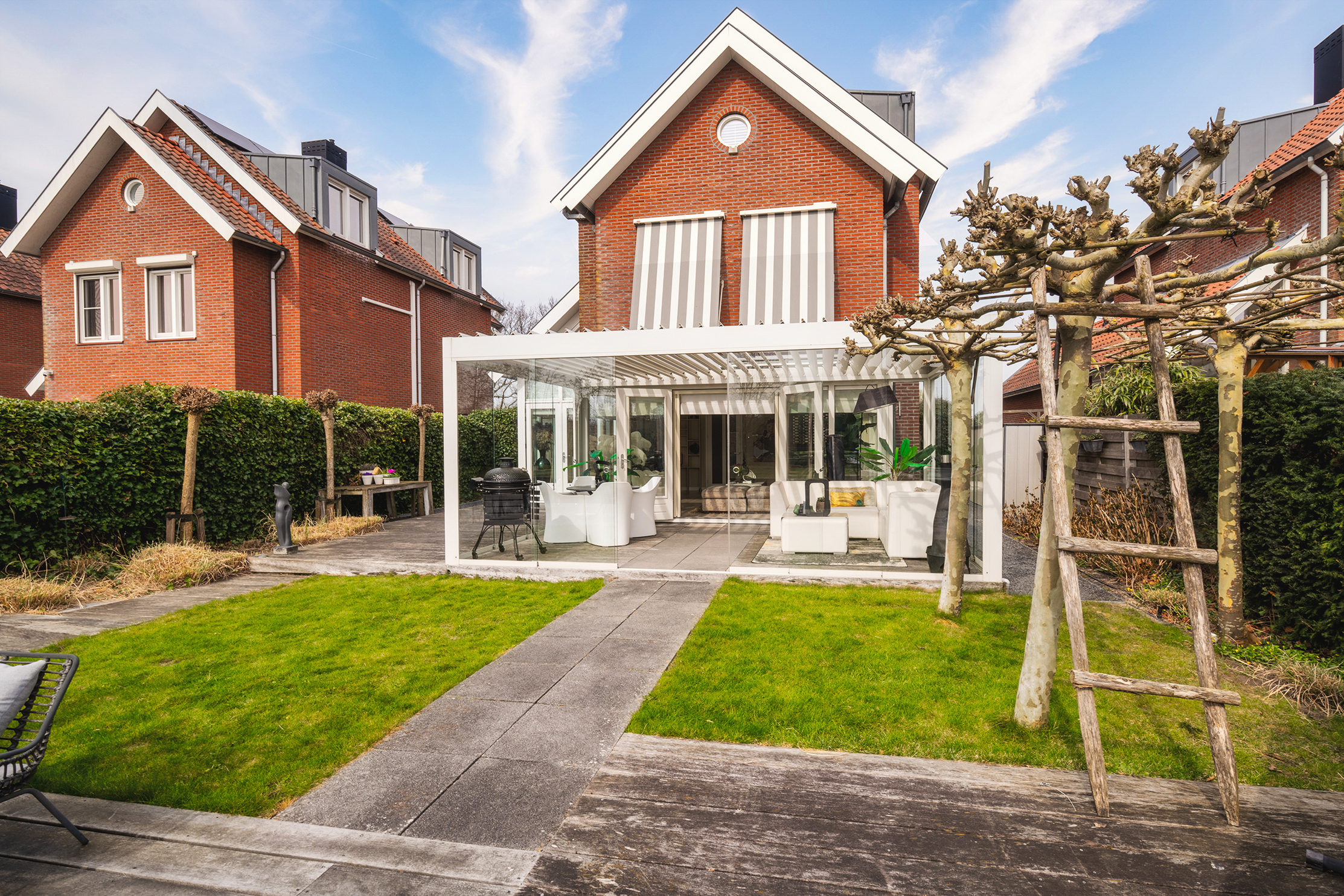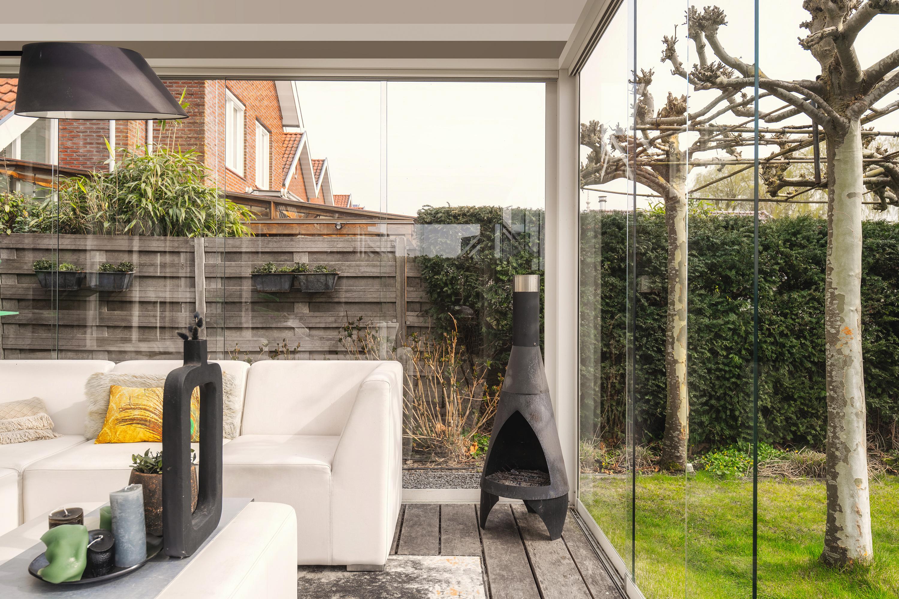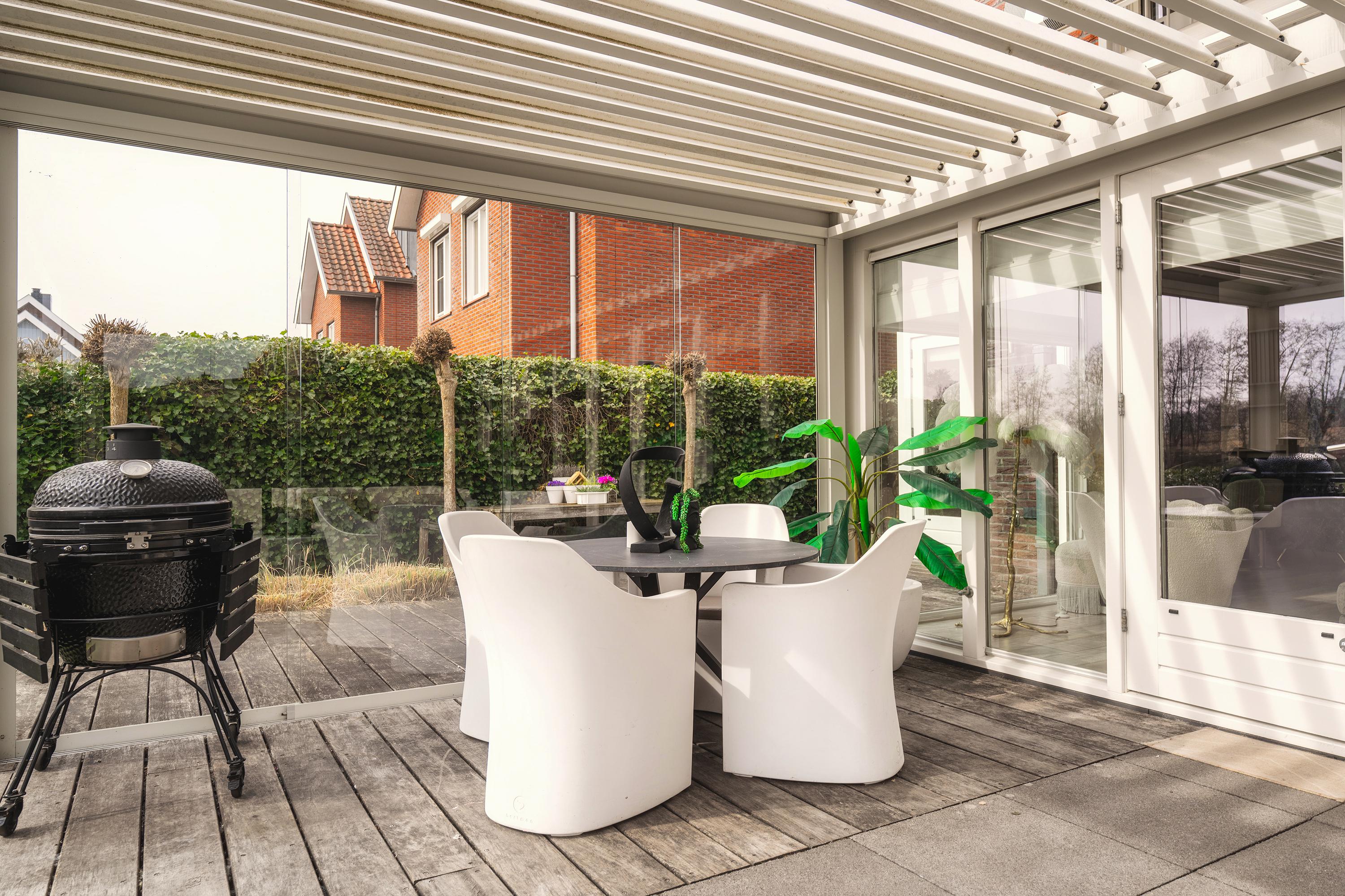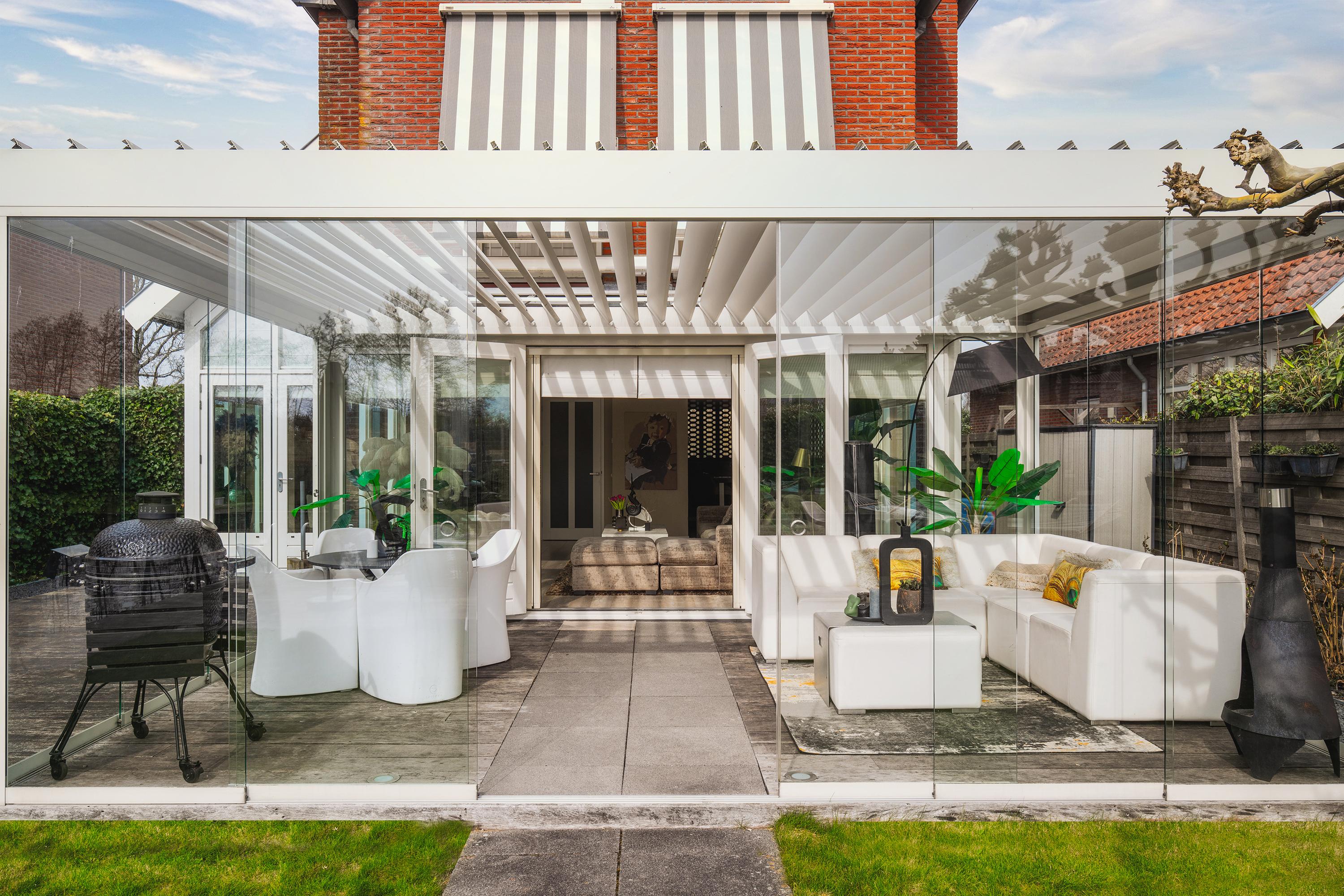 The garden is beautifully landscaped and thoughtfully designed. Located on the water with a private mooring for a sloop and a swimming ladder to enjoy the open water directly. Whether you are lying in the hammock or sitting on the terrace by the water, the view of the water and Het Twiske never gets boring. The garden has drip irrigation for optimal watering and atmospheric lighting with 12V spots. Under the canopy with louvered tilting roof and glass sliding doors (with integrated drainage function), you can enjoy it all year round.
