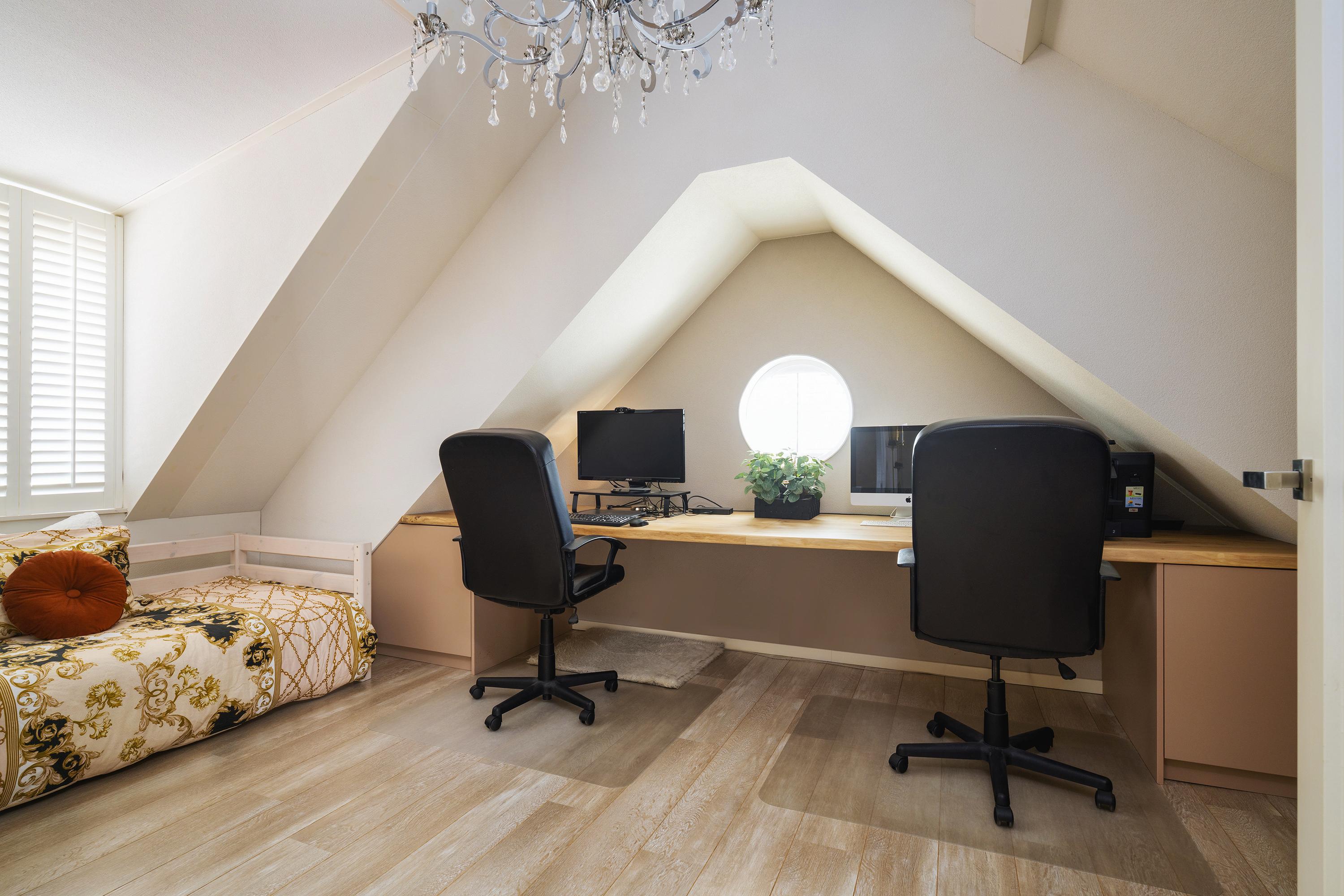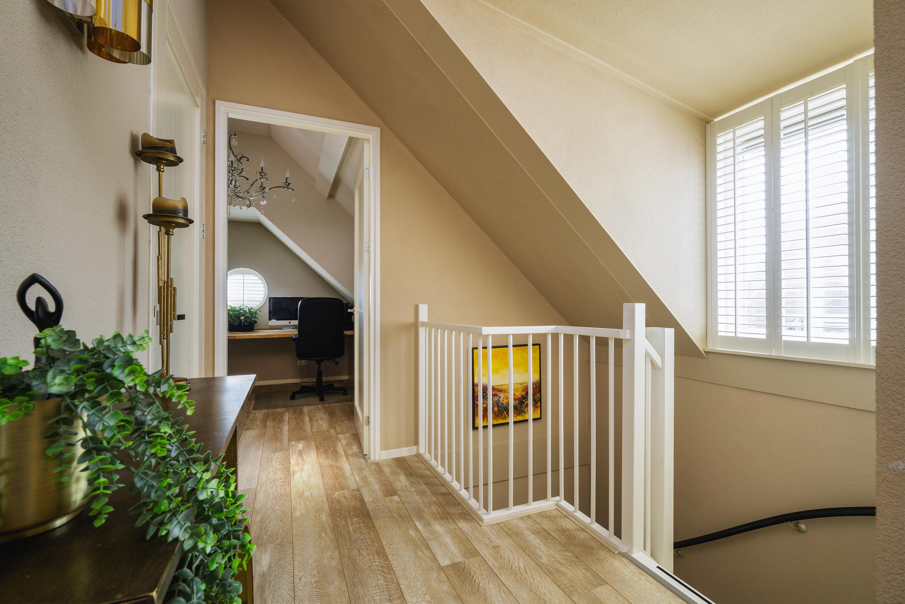 Spacious and bright landing thanks to the dormer, 2 spacious bedrooms of which 1 is used as an office, second bathroom, technical room with central vacuum unit and solar boiler (80 liters) for energy-efficient hot water, making the house extremely suitable for larger families or guests.