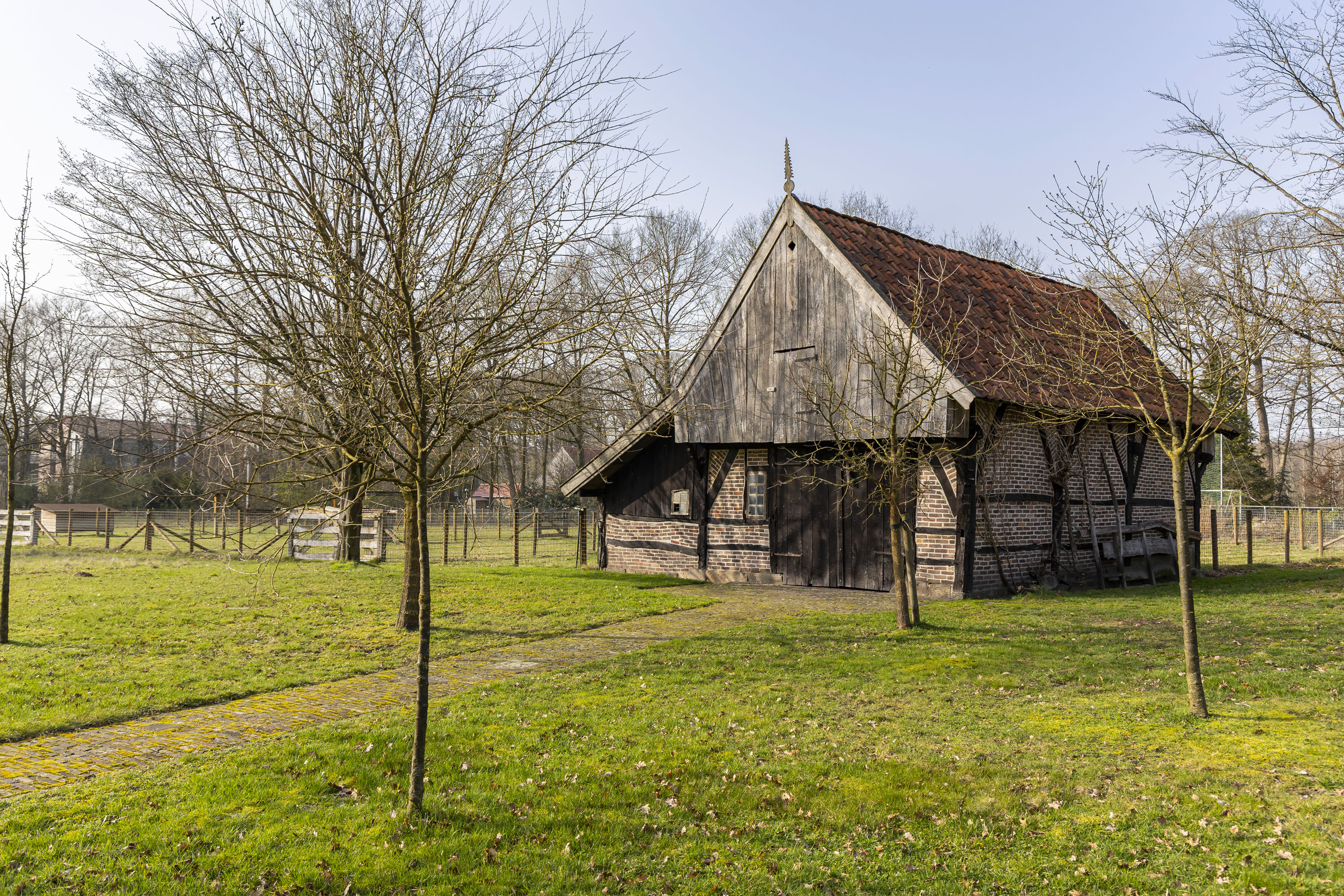 • Half-timbered barn of approx. 7.5 x 8.5 m, suitable for storing garden machinery and tools