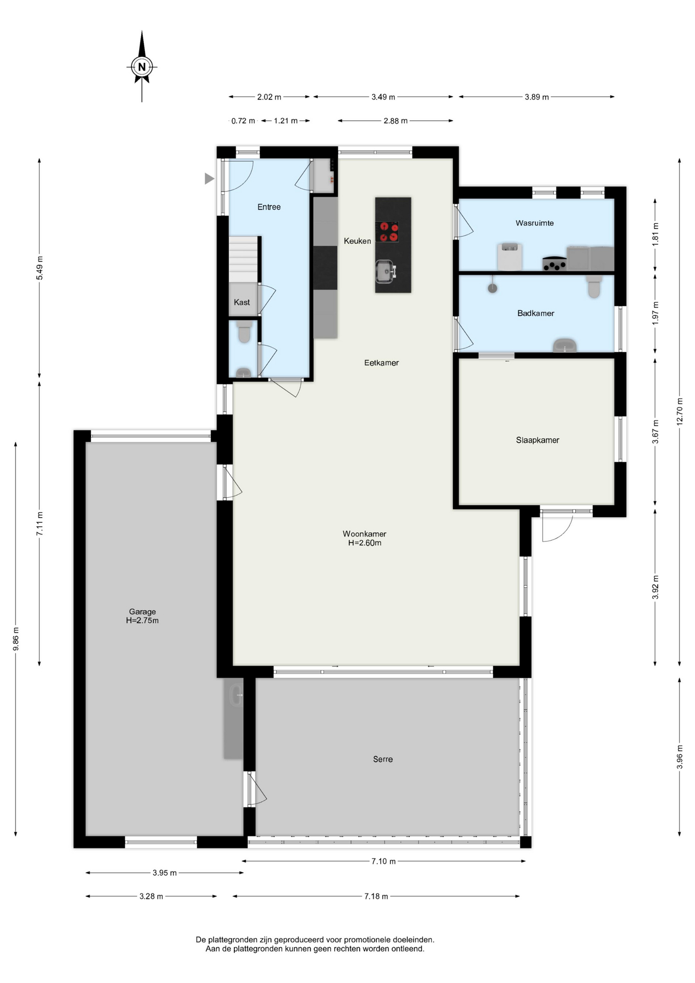 * The garage, with a ceiling height of 2.75 m (clearance height of 2.62 m), may accommodate a caravan