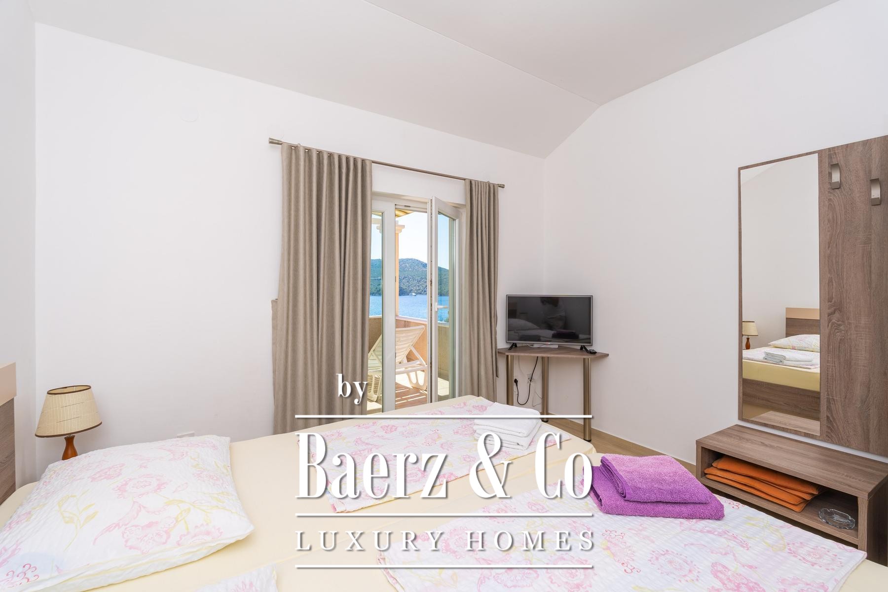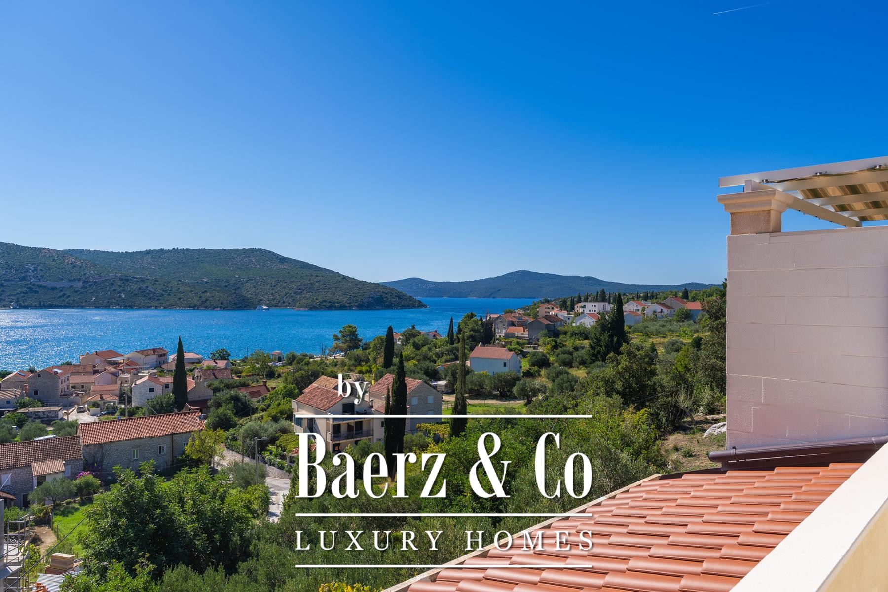 Slano - House with Garage, 350 m² Gross Floor Area, in an Elevated Position with Stunning Sea and Surrounding ViewsThe property has three levels, including the garage and a parking area in front of the house.The basement has a storage room, a living room with a kitchen, a bedroom, a bathroom, a laundry/storage room, and a spacious terrace.On the ground floor, there is an apartment with an entrance hall, a spacious living room with a kitchen and dining area, a loggia of 18.60 m², a toilet, a bathroom, and two bedrooms.The