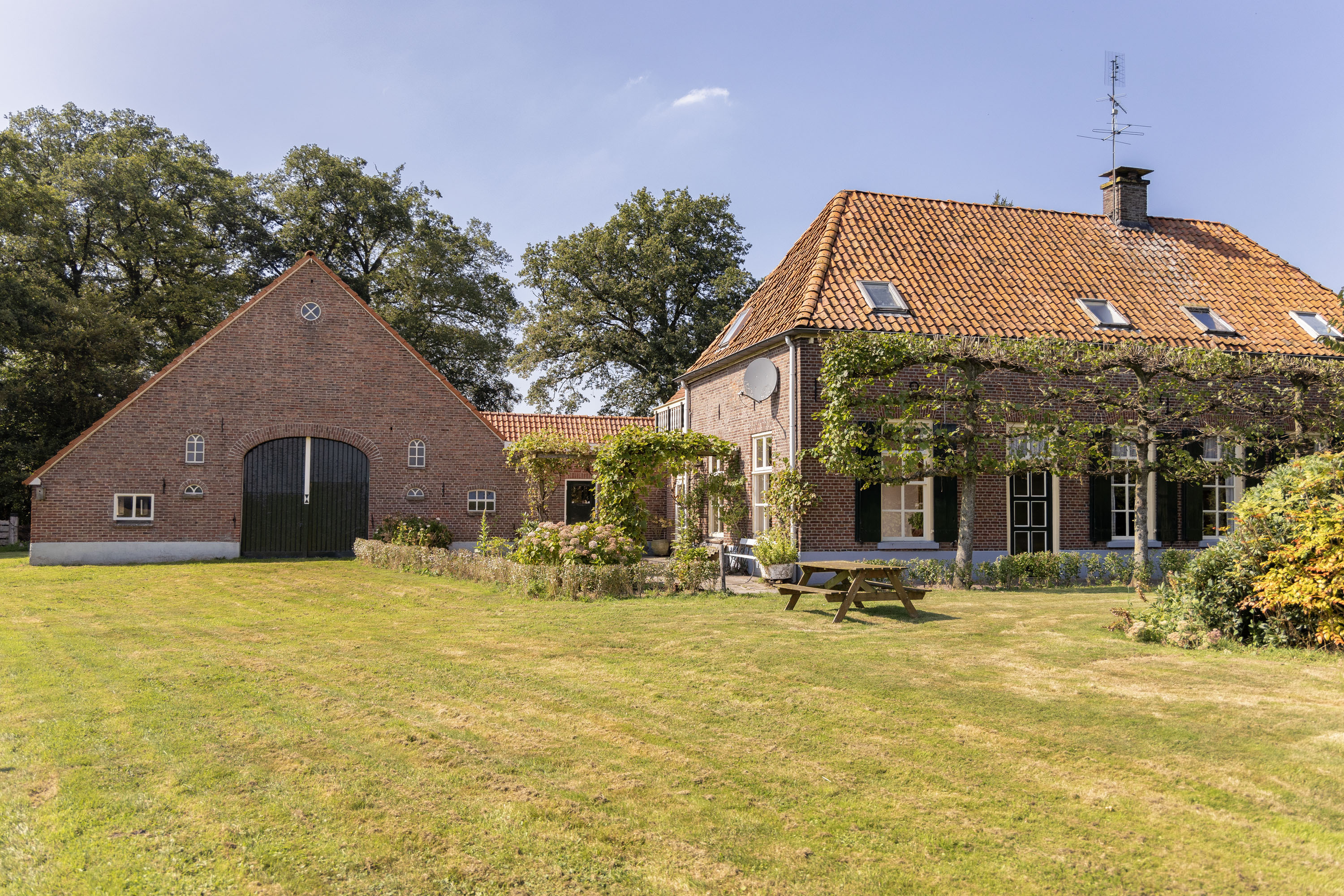 Built around 1860, the farmhouse consists of a main house with one side containing a “deel” (attached barn) for storage and stabling, and the other side used for livestock stabling. With a total indoor usable area of over 800 m², this property, after some renovation and modernization, offers tremendous potential for multi-family living or in-law accommodation, B&B rentals, a home office or practice space, keeping animals as a hobby or other space-intensive hobbies. The municipality of Berkelland actively supports property division and has designated this home for such use. Any remodeling plans will be reviewed with attention to preserving the monumental values of the property.
