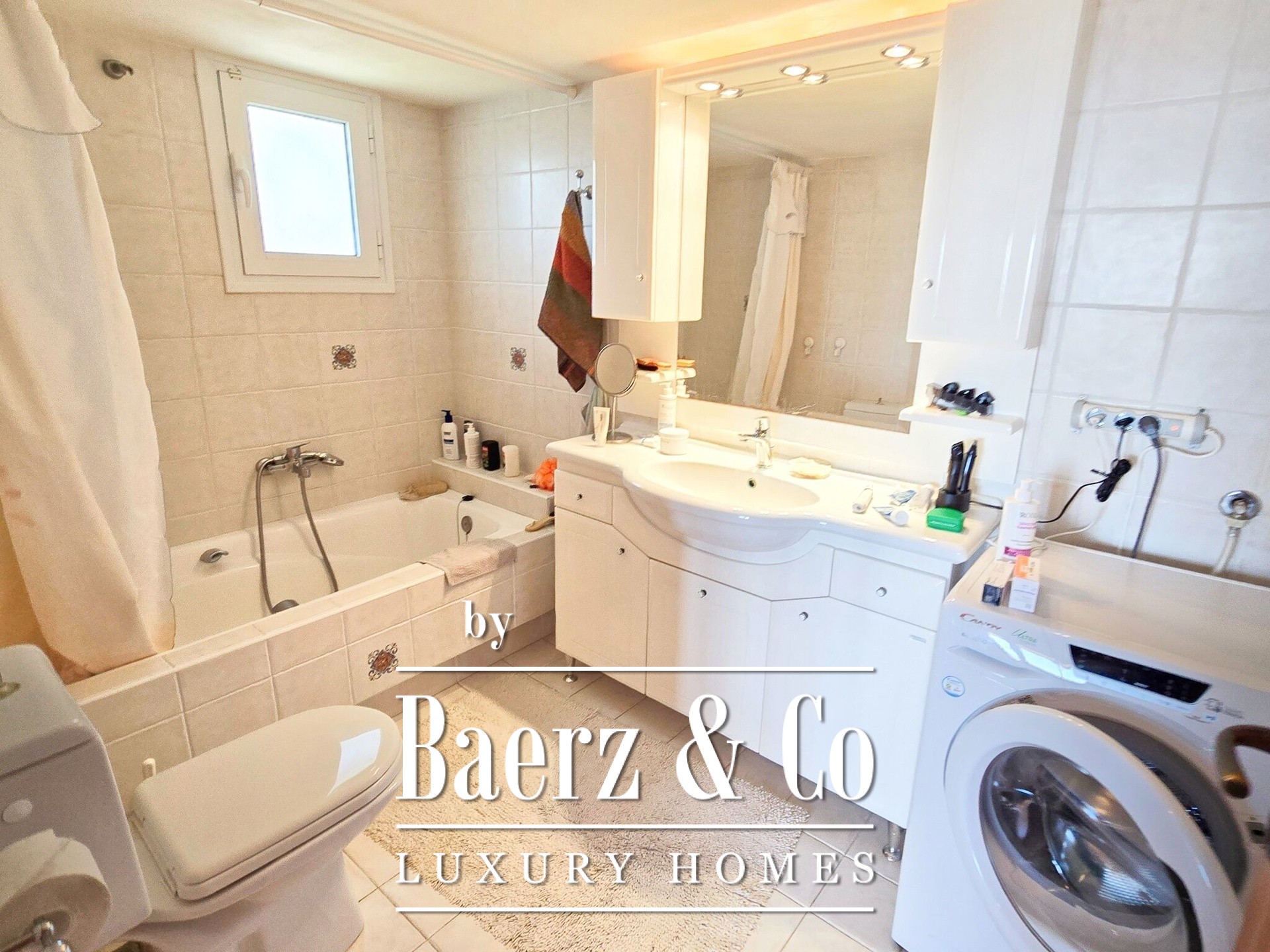 The ground floor (181 sq m) consists of a bright apartment of 123 sq m. which includes a living room, dining room and kitchen, a bathroom with hammam, a second bathroom with sauna and three comfortable and bright bedrooms, all with direct access to the garden.