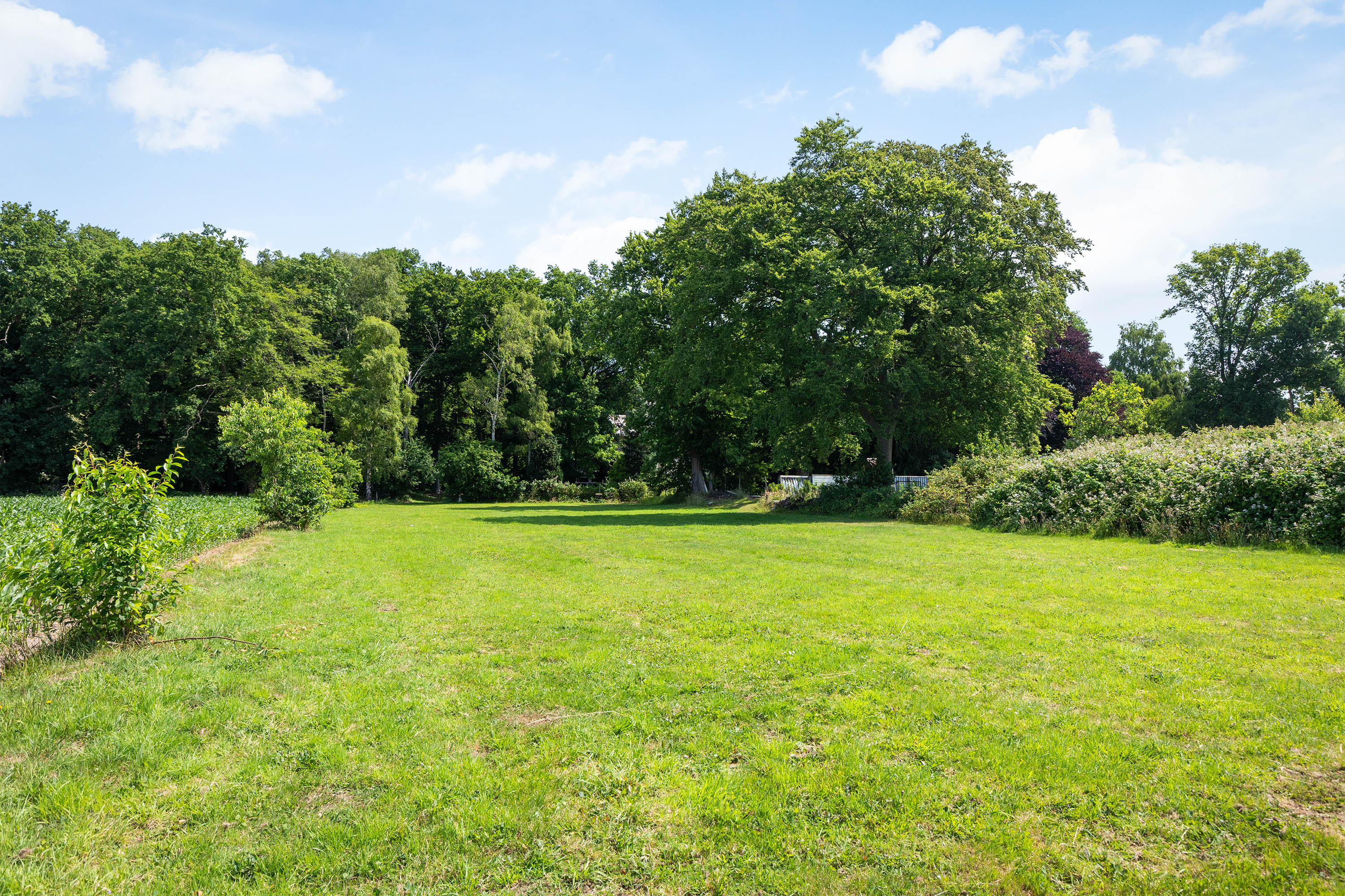 Outdoors, a south-facing garden adjoins the spacious terrace and enjoys open views of the private meadow and adjacent woodland. This entire outdoor area is ideal for nature lovers, equestrians or anyone wishing to enjoy privacy and green surroundings. The meadow is fully equipped for practical use, with connections for electricity, water and sewage.