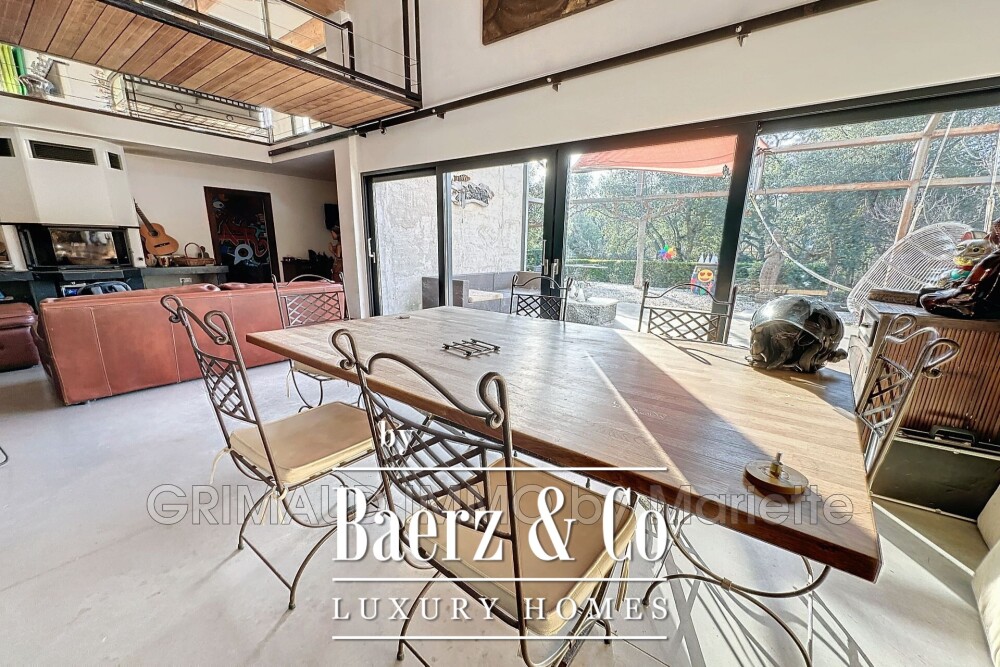 Villa Grimaud stands discreetly within easy walking distance of the village, surrounded by a wooded park measuring 1.5 hectares. The 360 m² single-story residence invites a pace of life attuned to nature and the rhythms of the French countryside. The interior is anchored by a spacious living room defined by exposed beams, continuing into an open kitchen ideal for quiet gatherings. Two ground-floor bedrooms share a shower room, while a mezzanine suite offers a private bathroom, dressing room, and access to a rooftop terrace.