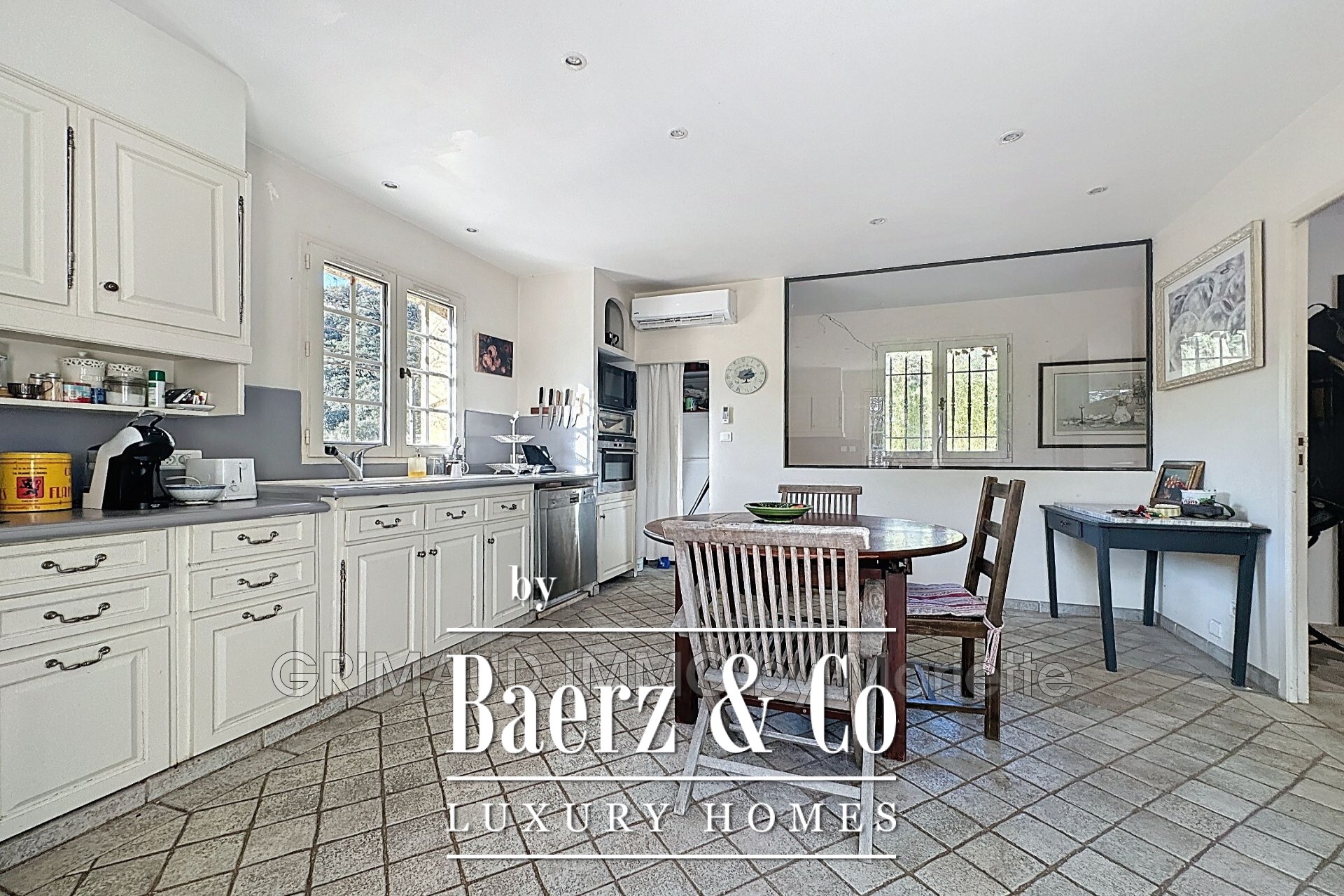 The separate kitchen opens to the outdoors with immediate garage access, reflecting thoughtful spatial planning. Below, a large basement offers wine storage, laundry, and a workshop. Vehicles find shelter in a double garage and a dedicated two-car port. Enjoy a peaceful pace within a secure gated estate, yet remain just five minutes by car from the sea. The setting balances privacy, modern comfort, and proximity to the Côte d’Azur’s coastline. This luxury house for sale in Grimaud offers a rare equilibrium between refined seclusion and coastal access.