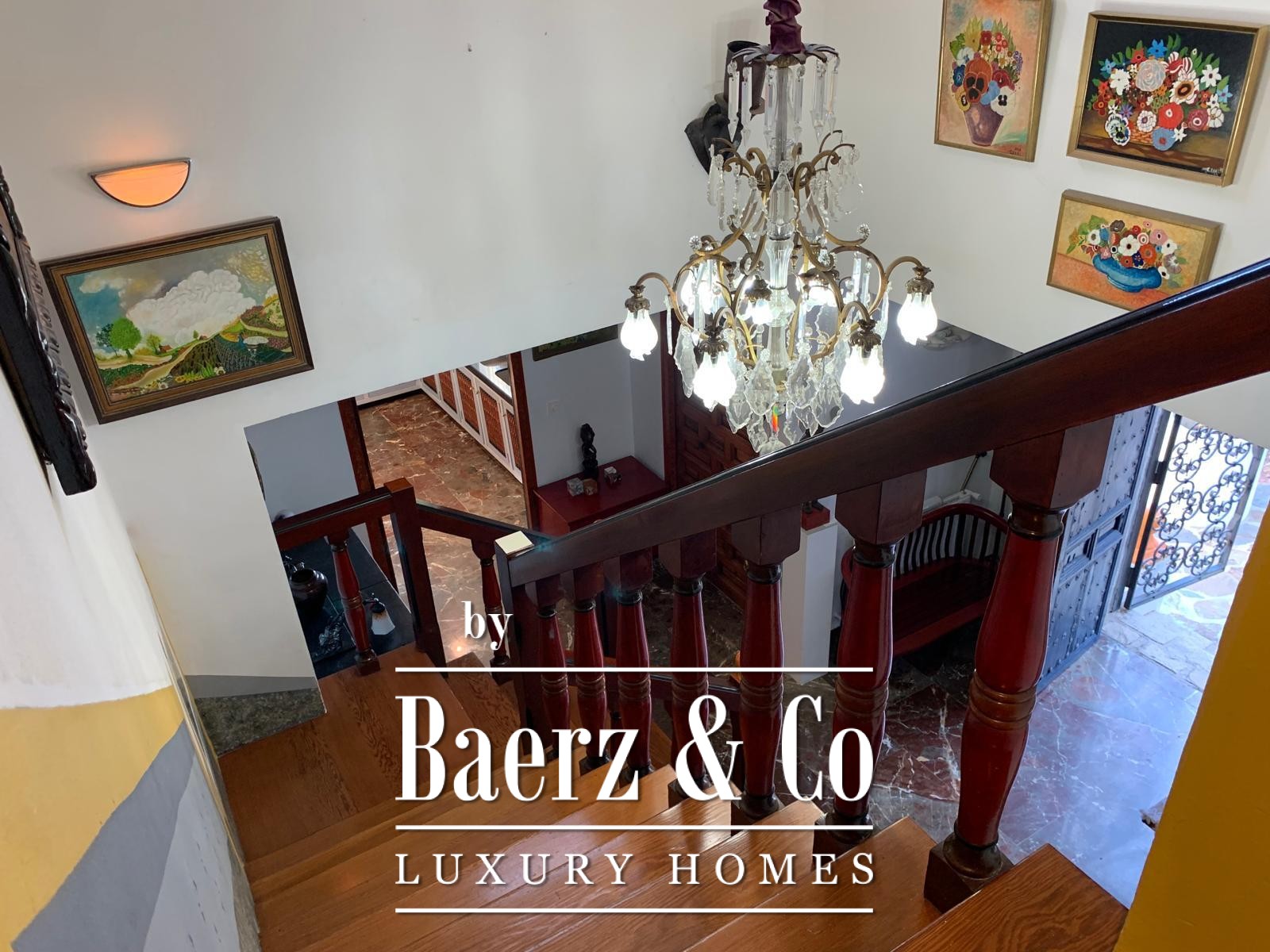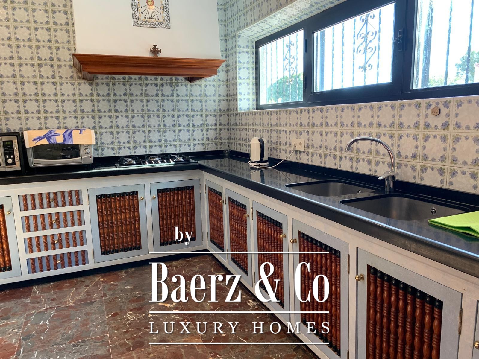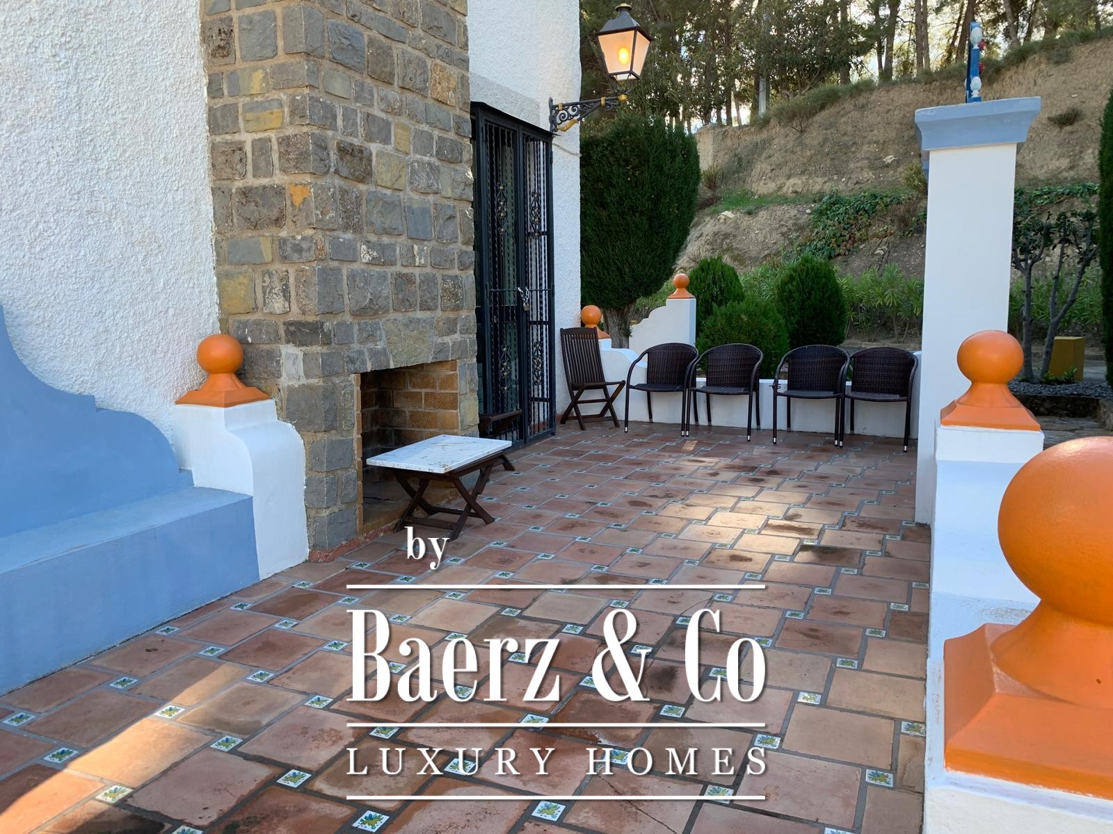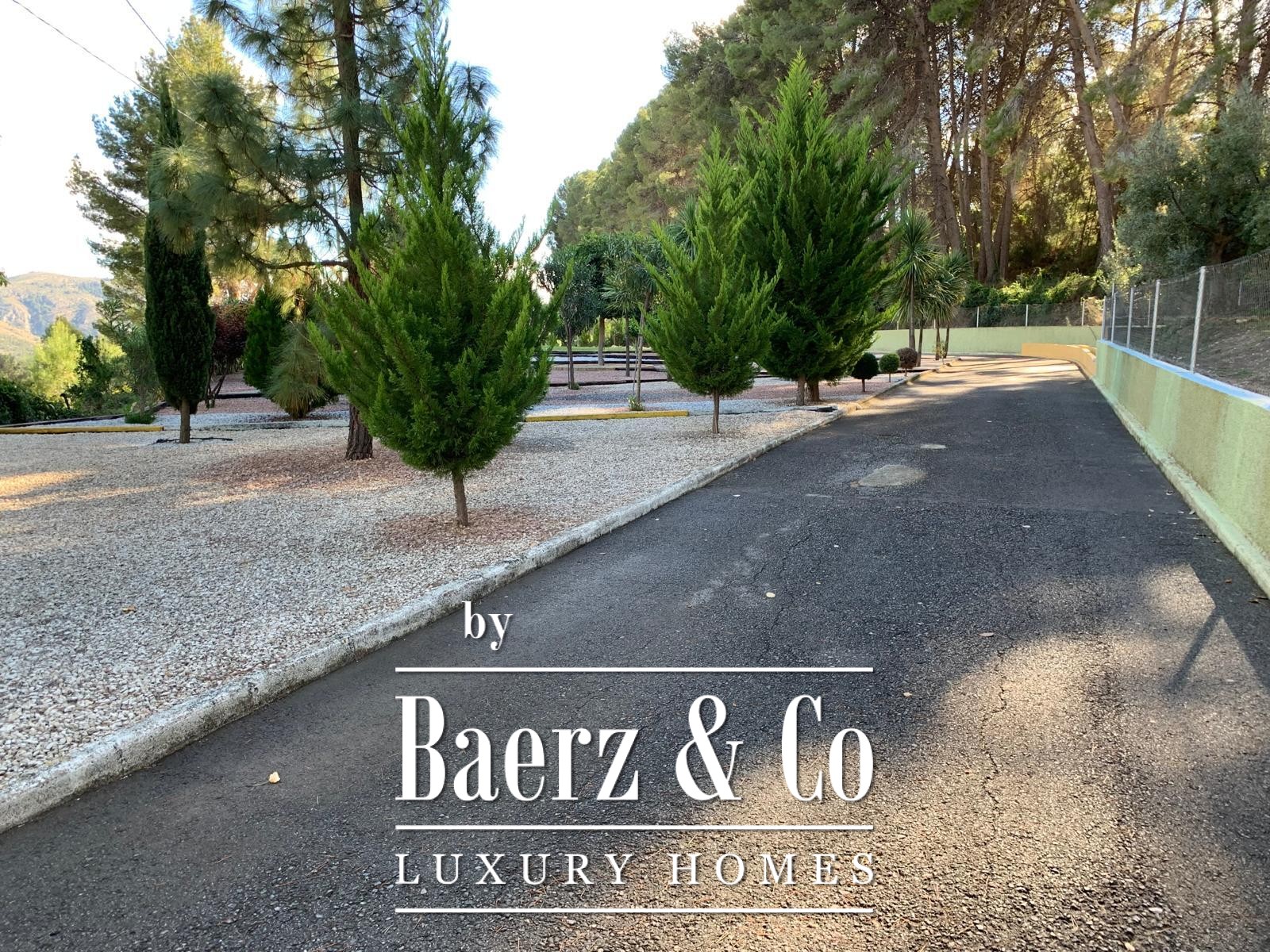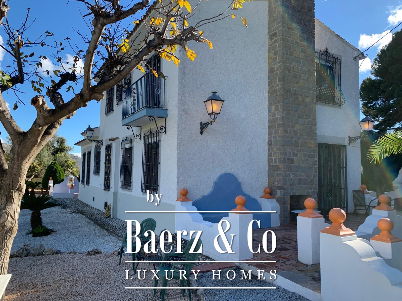 This rustic villa Guadalest offers a tranquil refuge framed by the dramatic silhouette of Guadalest Castle. Set discreetly within a generous 5,750 m² plot, the property combines classical Spanish architecture with immersive natural surroundings. Stepping inside, one immediately appreciates the sense of openness realized through high ceilings and abundant daylight. The main residence unfolds across two levels, comprising approximately 230 m², with six bedrooms and five bathrooms designed for privacy and ease.