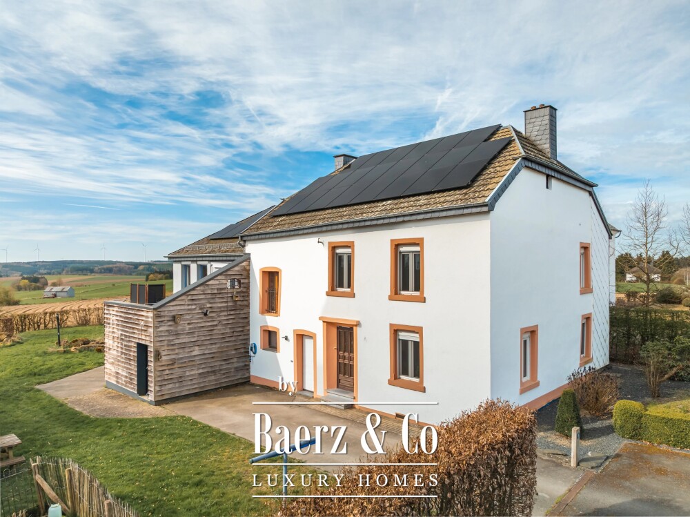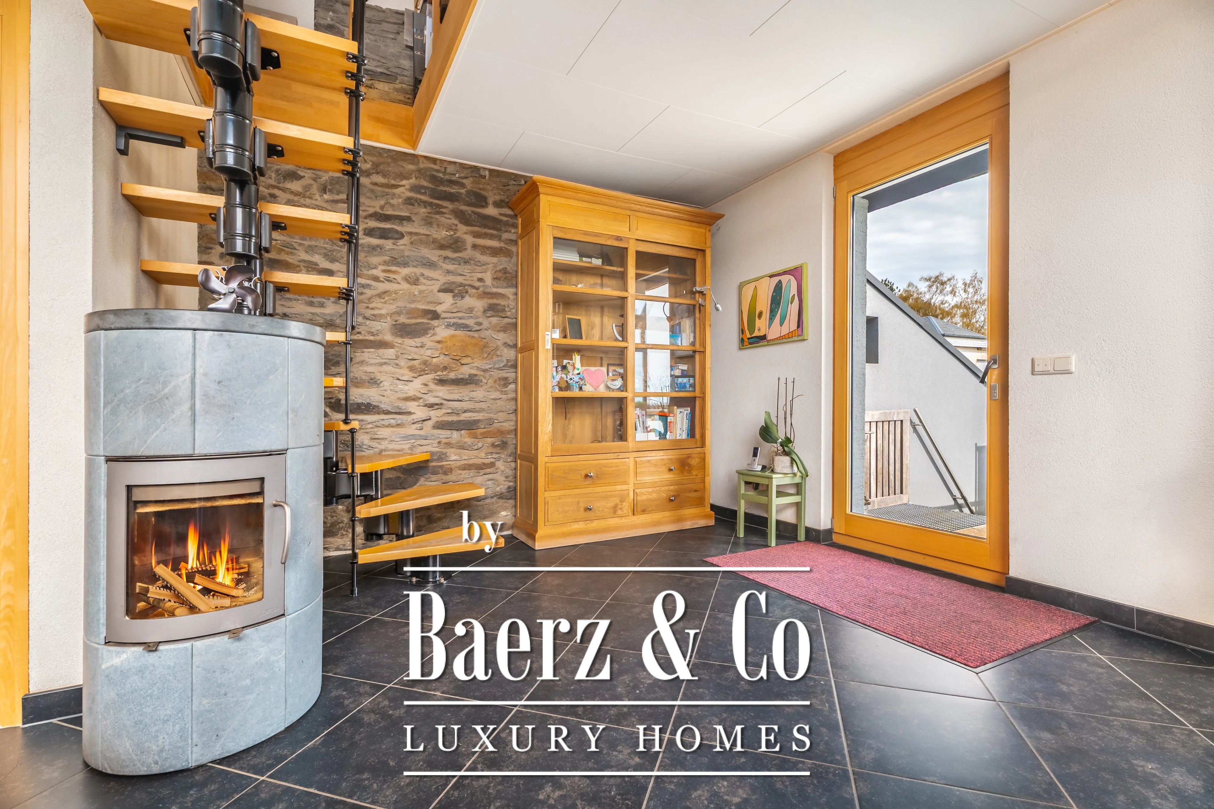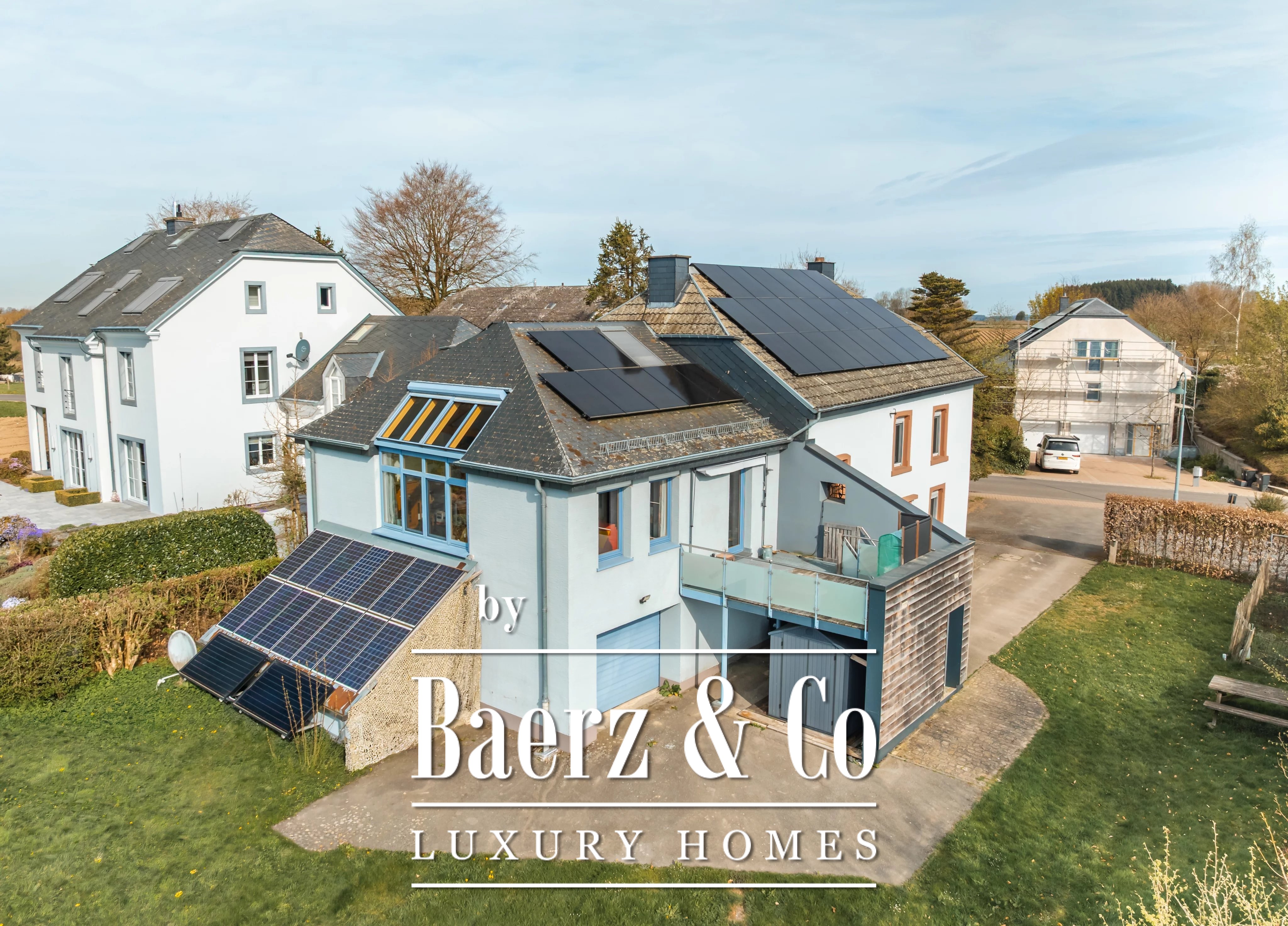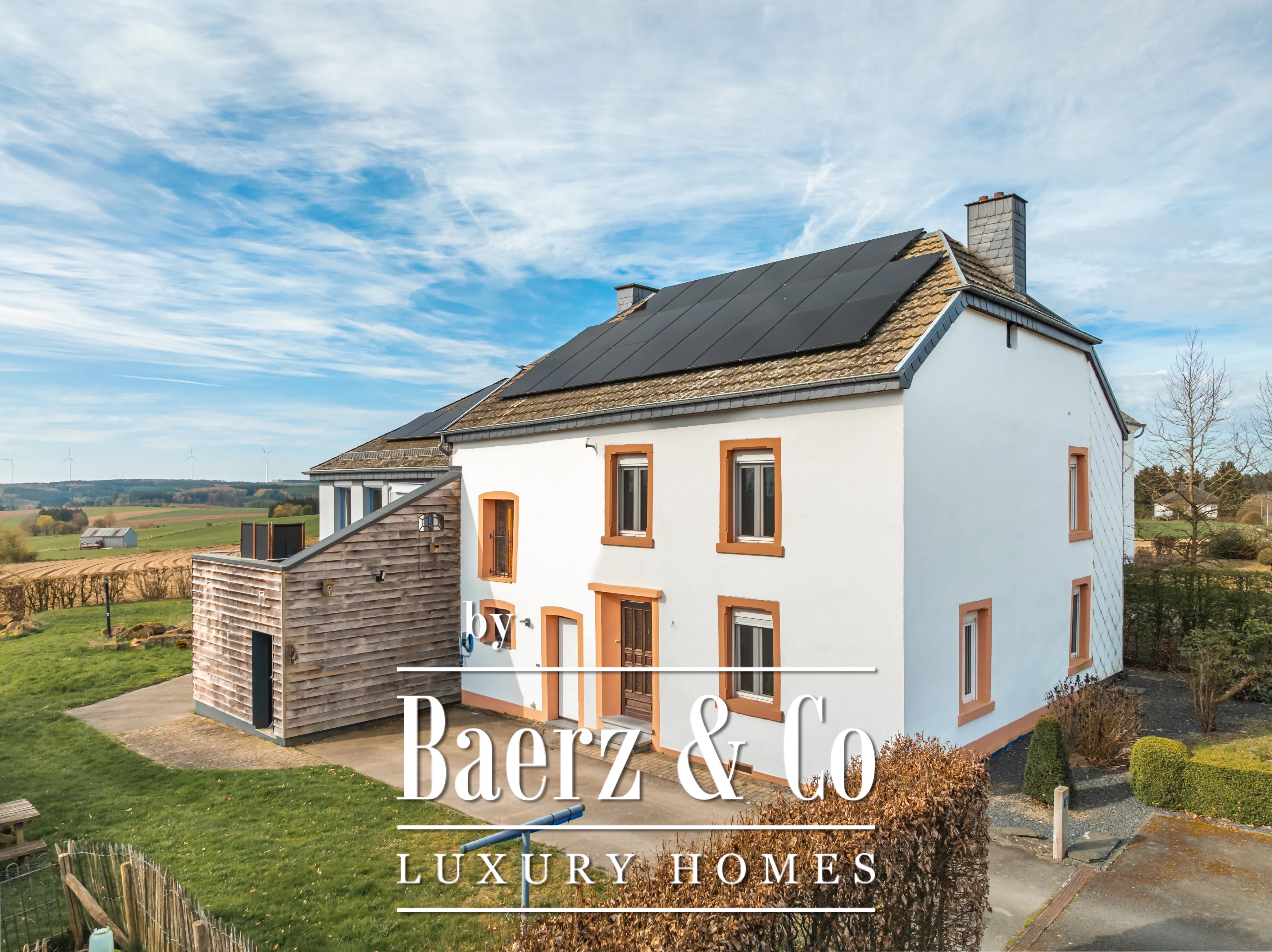 House Hautbellain offers a refined lifestyle set in a tranquil, countryside environment. This property spans 230 m² of living space, thoughtfully arranged into multiple accommodations that maximize privacy and comfort. The setting is defined by panoramic views over the hills of Eisleck, complemented by 4,930 m² of agricultural land and a mature orchard with apple, plum, cherry, and walnut trees.