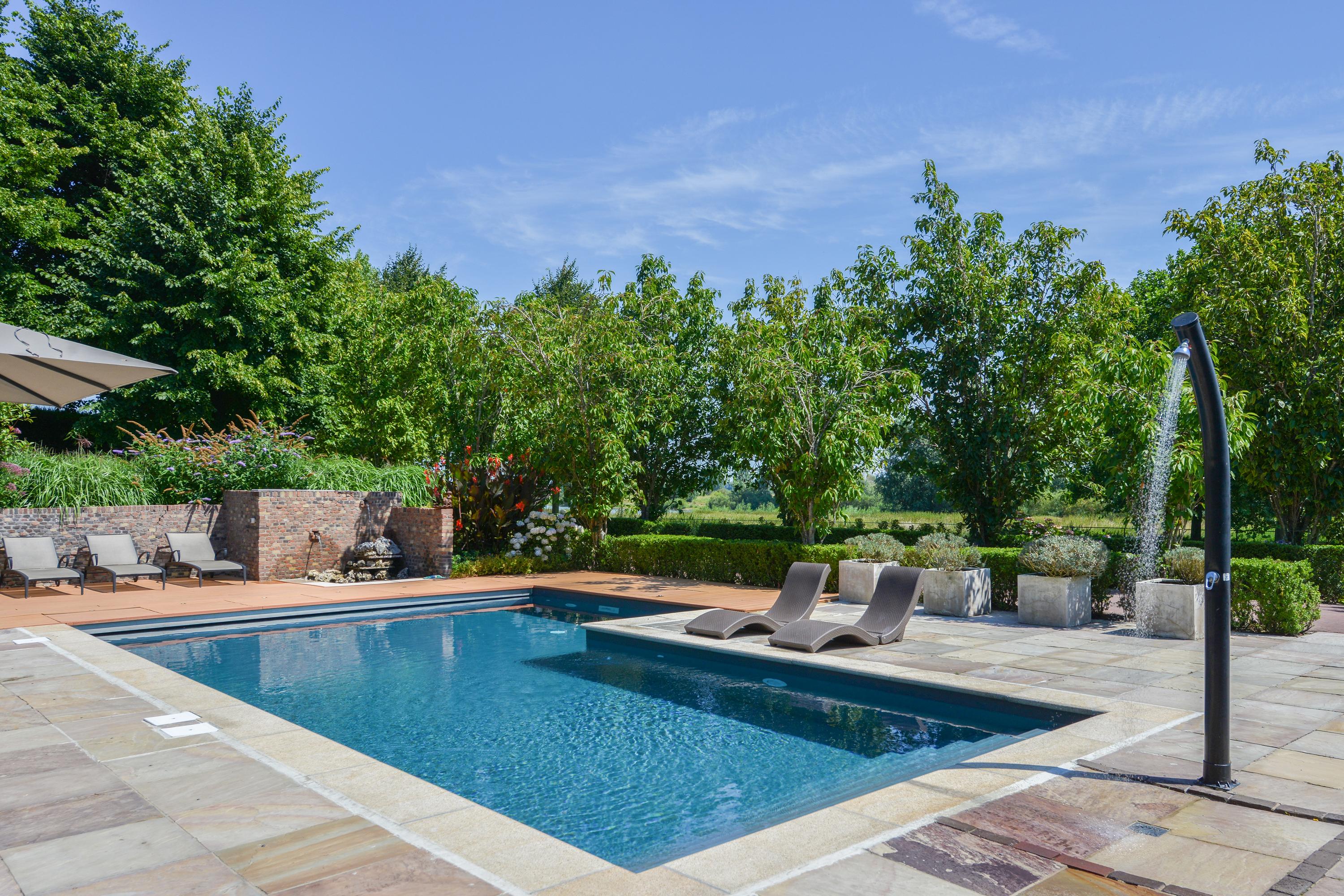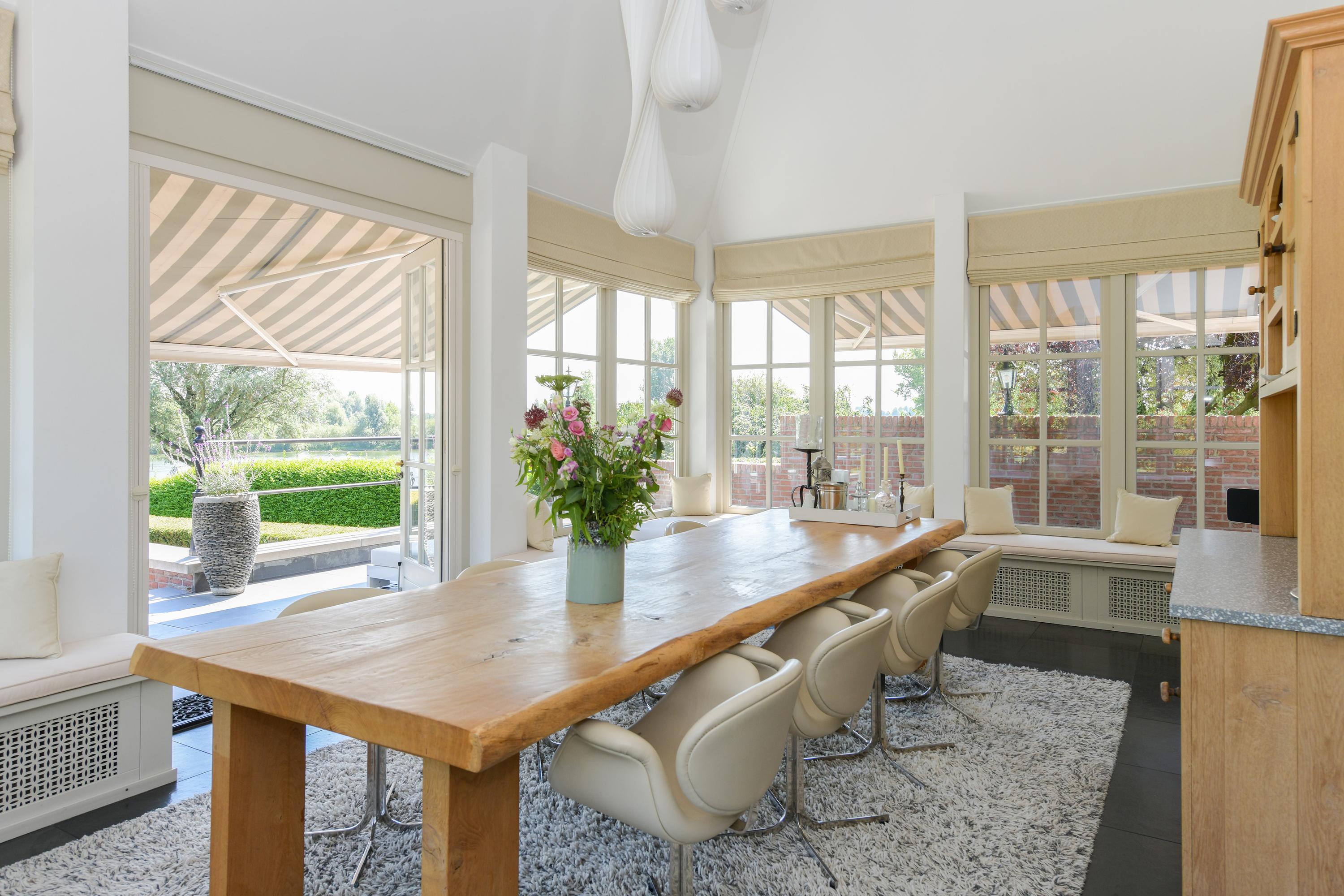 This well-maintained countryhouse with a full basement enjoys a magnificent location on the river. In addition to the five bedrooms and three bathrooms, there is an outdoor kitchen and a fully equipped poolhouse with 4th bathroom, jacuzzi, sauna and heated heated pool. From the architecturally designed plot there is direct access to the private jetty.