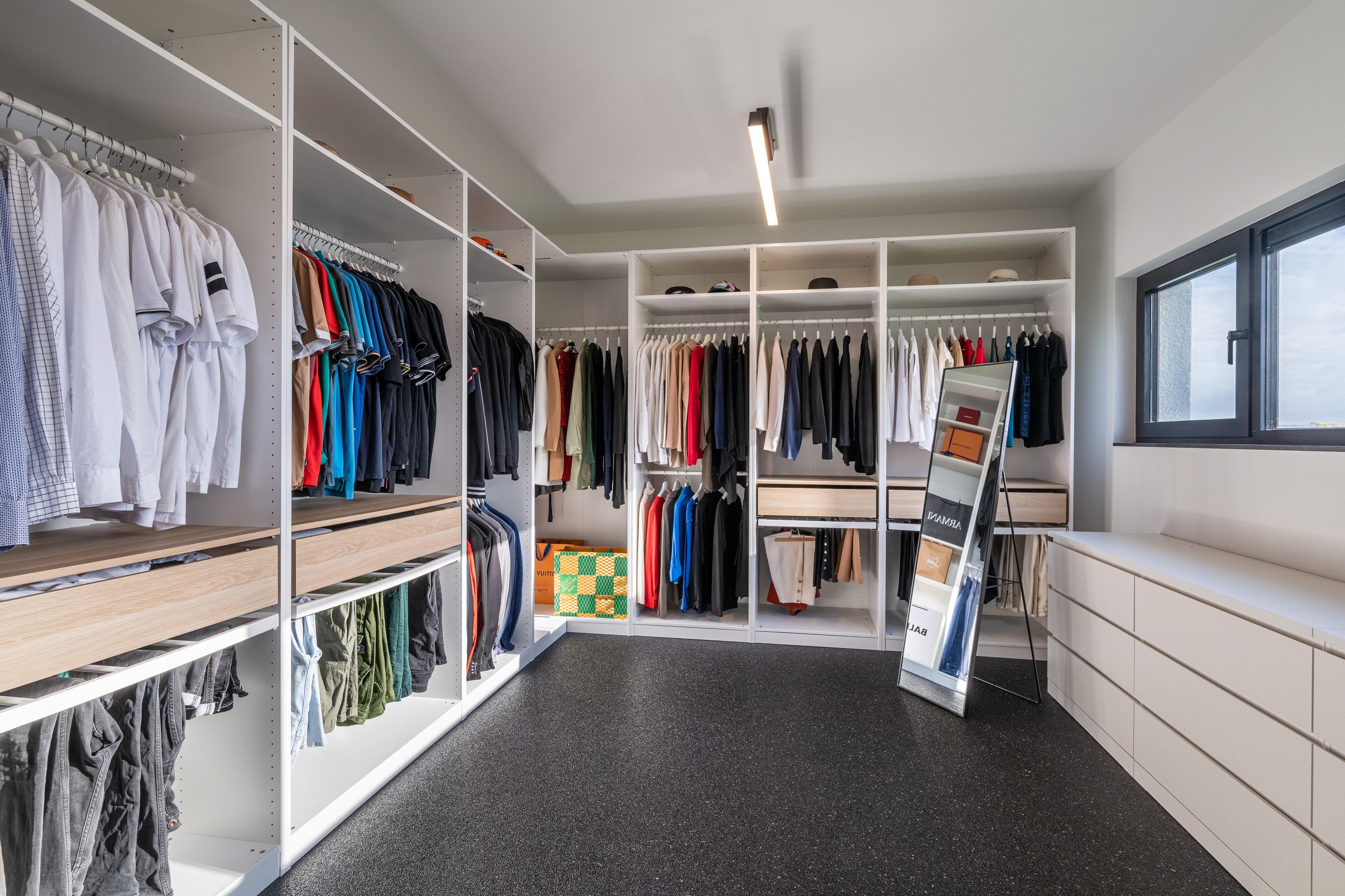 The master bedroom is impressive in size and forms a true private suite. The room offers more than enough space for a generous bed and elegantly flows into a spacious walk-in closet — a dream for enthusiasts.