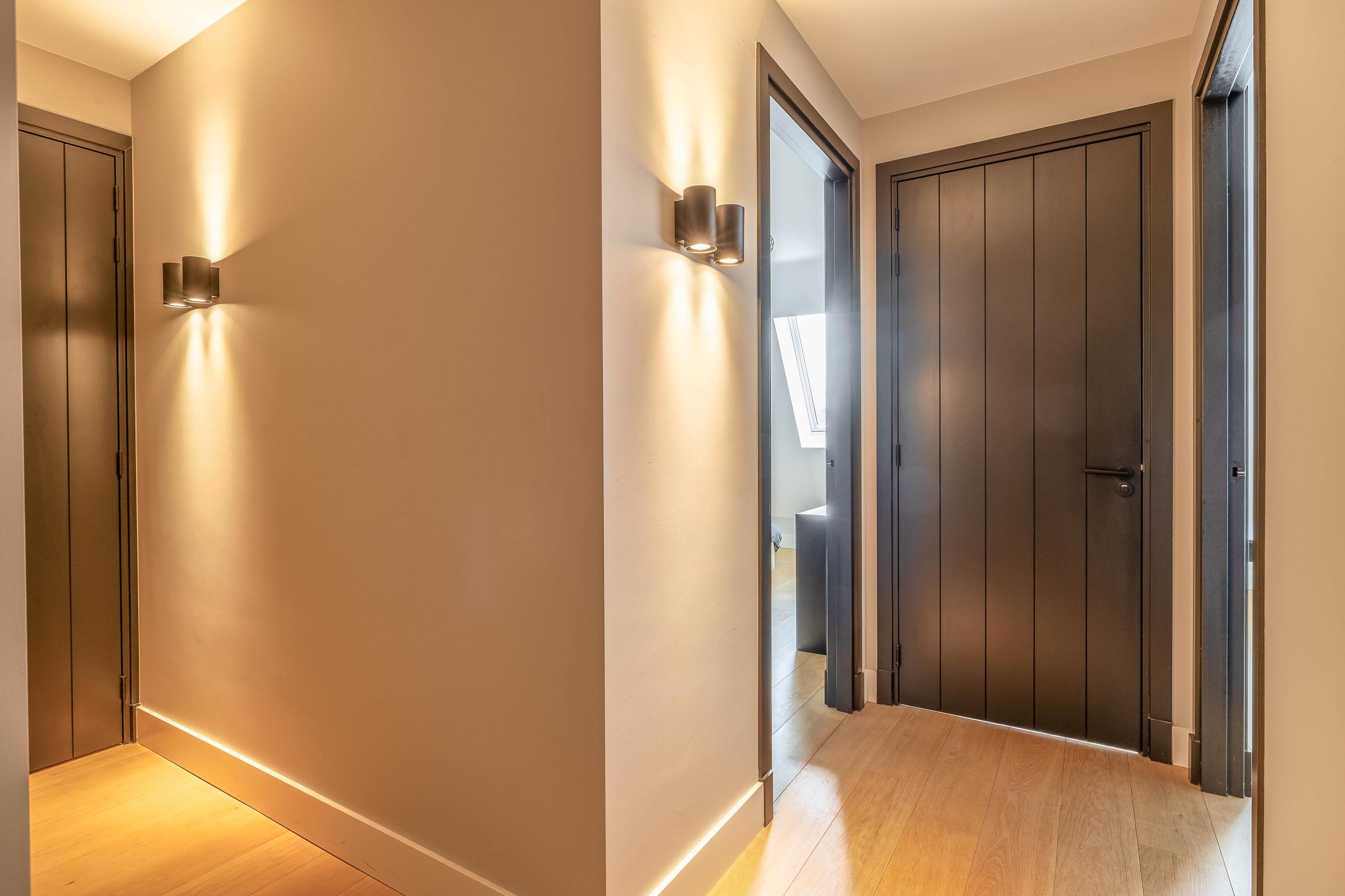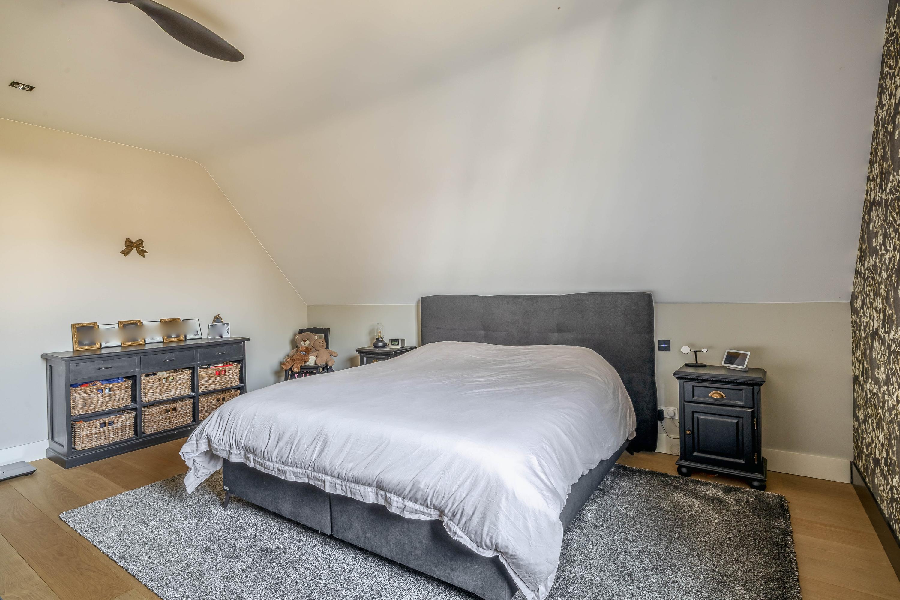 The first floor is reached via a spacious landing with a mezzanine, inviting you to discover the three bedrooms. The expansive master bedroom with a walk-in closet also offers direct access to a luxurious, private bathroom. On the other side of this floor, there is a separate toilet, various storage spaces, and a second stylish bathroom. Here, every family member or guest finds the room and comfort they deserve.