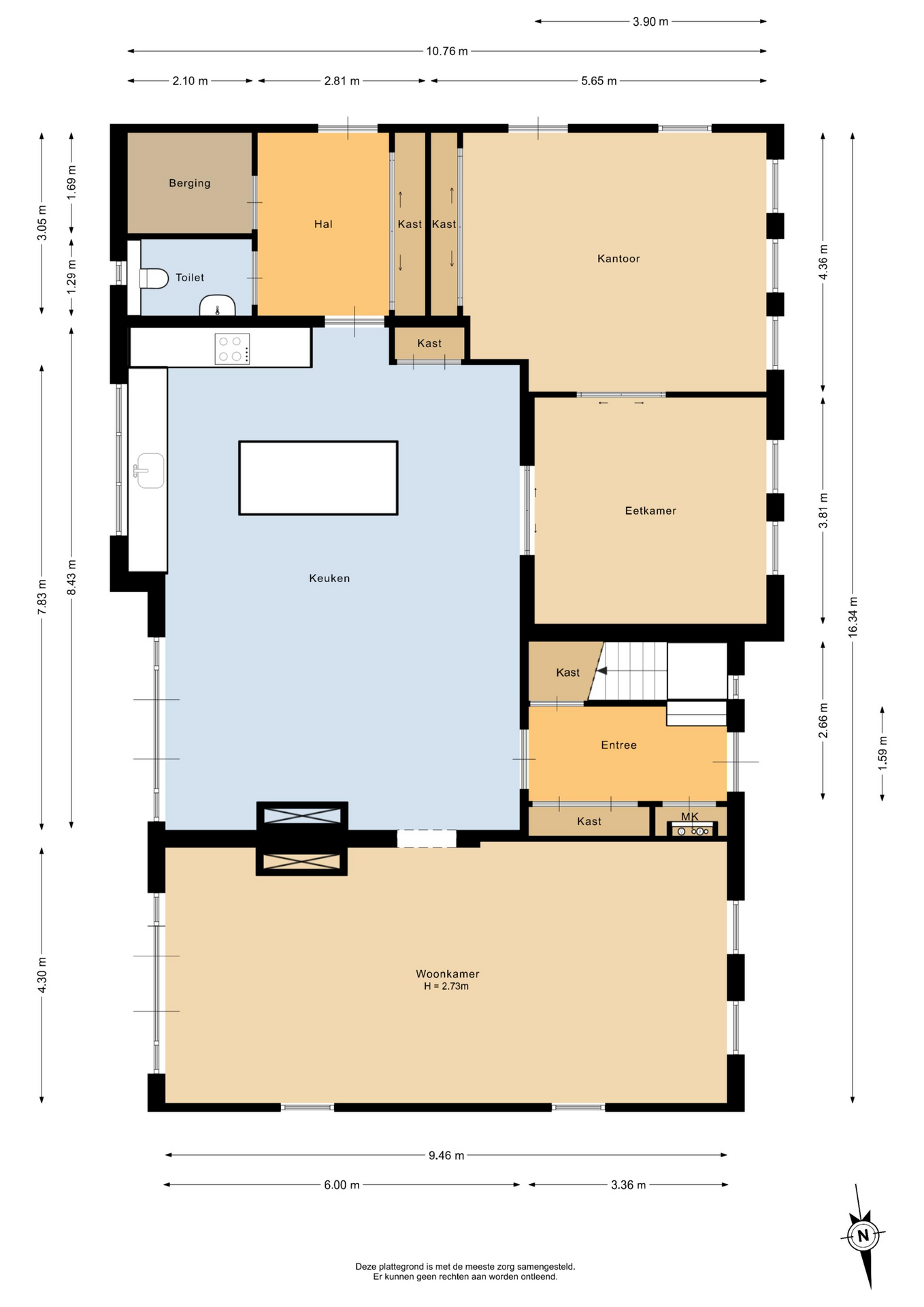 Through the entrance, you reach a hall that provides access to a storage cupboard beneath the staircase, the fuse box, a wardrobe cupboard, and a staircase leading to the first floor. The expansive living room, complete with a gas fireplace and large windows, forms the heart of the ground floor. From the living room, garden doors lead directly to the enchanting rear garden, where the terrace offers a perfect seamless connection between indoor and outdoor living. The spacious kitchen/dining room, equipped with a corner layout, an island, and high-end built-in appliances (such as a Quooker, dishwasher, exclusive cooking unit, oven, and extractor hood), allows you to enjoy culinary experiences at the highest level. A side entrance with a generous vestibule features a toilet, storage area, and practical built-in cabinets, with direct access to the garden via a service door.