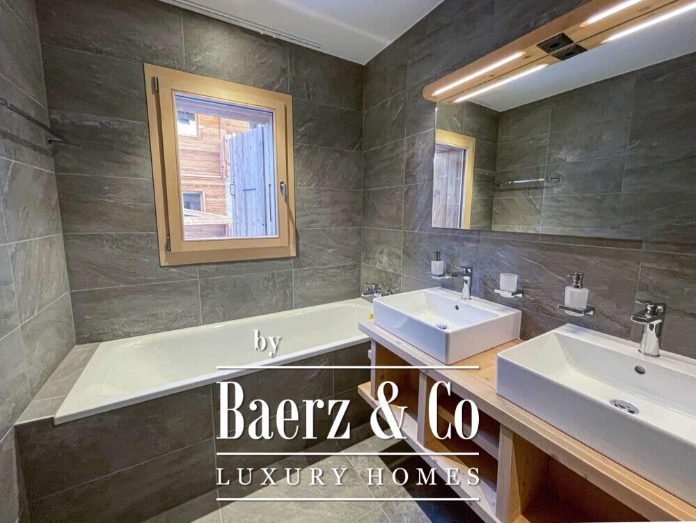 Local artisans have shaped the architecture, using natural stone and Larchwood to blend the facades seamlessly with the landscape of the Eringer valley. Underfloor heating adds a quiet sense of comfort while preserving uncluttered interiors. The apartment’s mountain outlook opens up a sense of calm and privacy.
