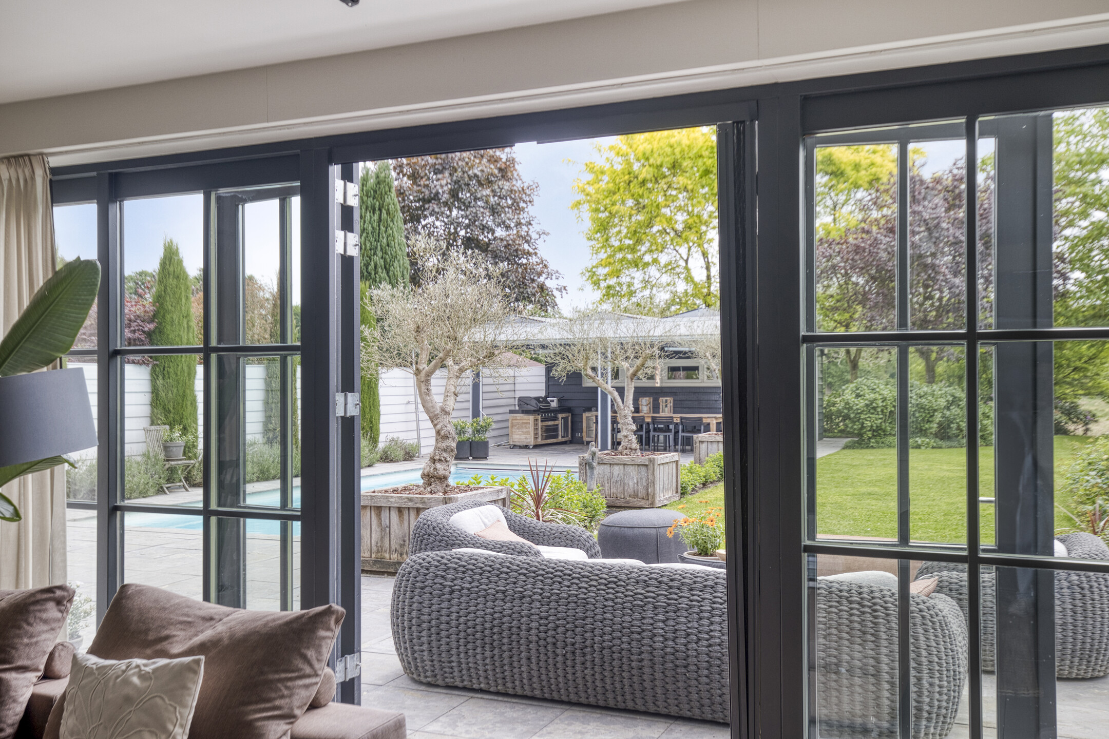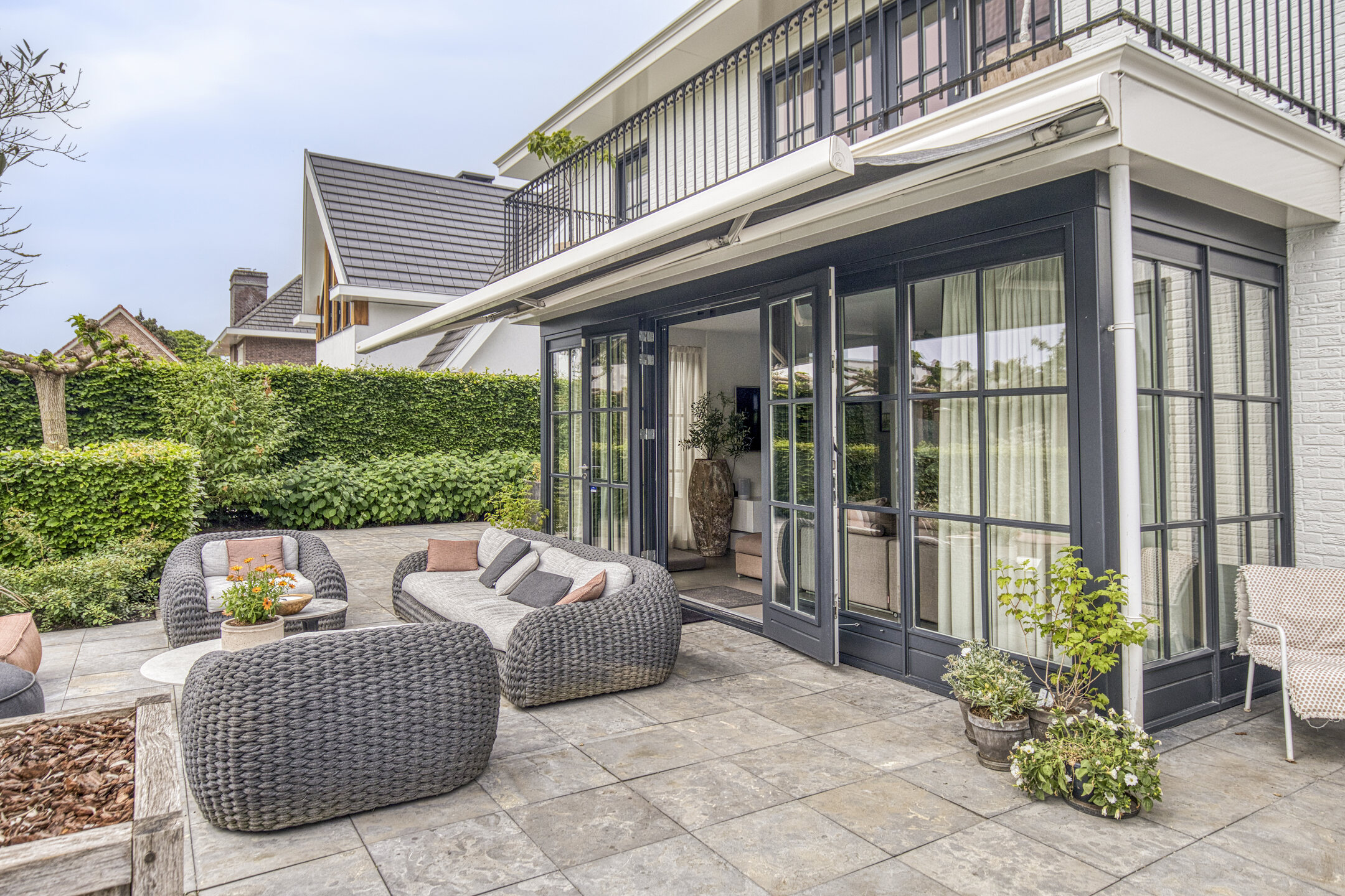 Upstairs, five bedrooms offer space and privacy, including a master with a private balcony, walk-in closet, luxury bathroom, sauna, and generous natural light. A second bathroom and separate storage area support flexibility for family or guest use. Multiple terraces provide the choice of sun or shade throughout the day, and sweeping views over adjoining meadows bring a tranquil backdrop. The landscaped garden features a heated swimming pool and poolhouse with veranda, equipped with automated systems for seamless enjoyment. Sustainability features include 24 solar panels, comprehensive insulation, HR central heating, and complete underfloor heating. This detached villa Huijbergen is a rare opportunity to experience quiet, space, and sophisticated living in the sought-after surroundings of Huijbergen.