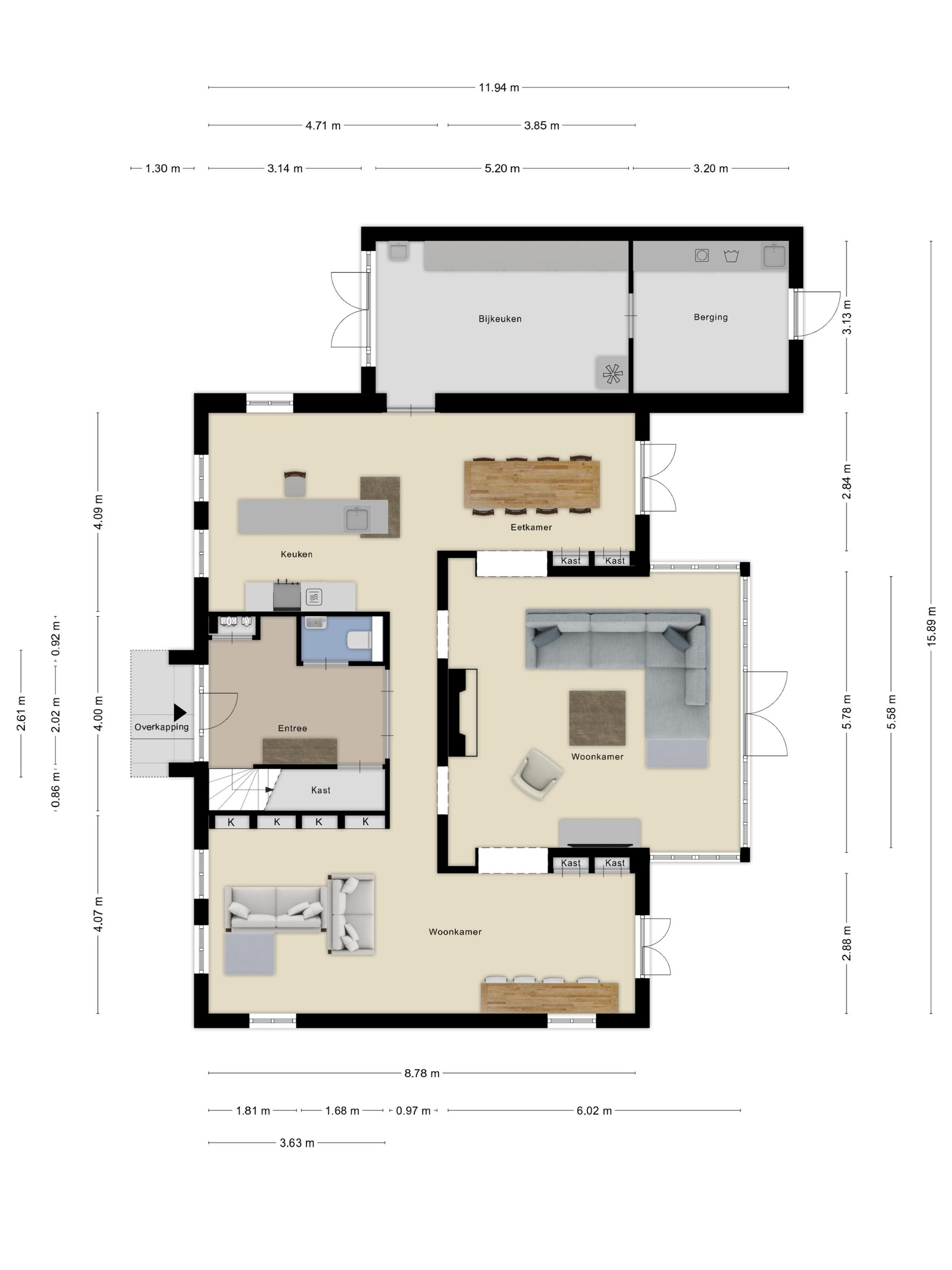 Detached villa Huijbergen offers an extraordinary blend of comfort, refined finishes, and future-ready living in a serene green setting. Completed in 2008, this villa provides 301 m² of living space on a 1,030 m² plot, combining intelligent architecture with understated luxury. Upon entry, light and volume set a welcoming tone. The half open living at the heart of the home looks onto the garden, with doors opening onto terraces, while a Boffi kitchen with island and integrated appliances forms the ideal setting for gatherings. Adjoining are a spacious utility room and additional storage. Across the ground floor are two distinct living areas, providing separation for relaxation, entertaining, work, or play, each with direct access to the outdoors.