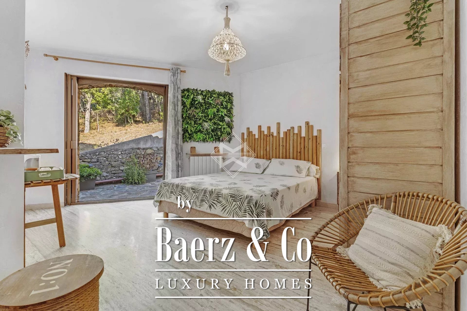 On the lower floor, a reception hall of nearly 100 m² transitions seamlessly to both indoor and outdoor pools, facilitating effortless gatherings and moments of calm. The separate 85 m² guest house extends privacy with three bedrooms, private garden, and its own terrace. The one-hectare plot is both wooded and landscaped, affording unobstructed hills views and enveloping the villa in tranquility. Modern amenities include sliding windows, flyscreens, crawl space, optical fiber, and a condominium garden. This luxury villa for sale in Hyères offers a singular opportunity to inhabit the Bayorre area, where the timeless allure of stone and the serenity of Mediterranean living quietly prevail.