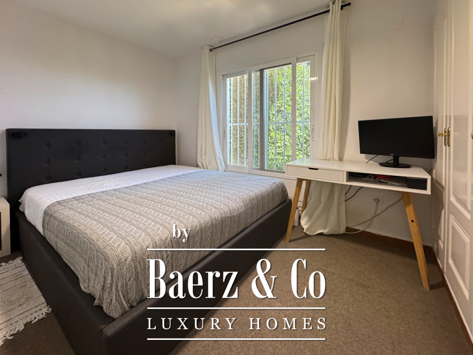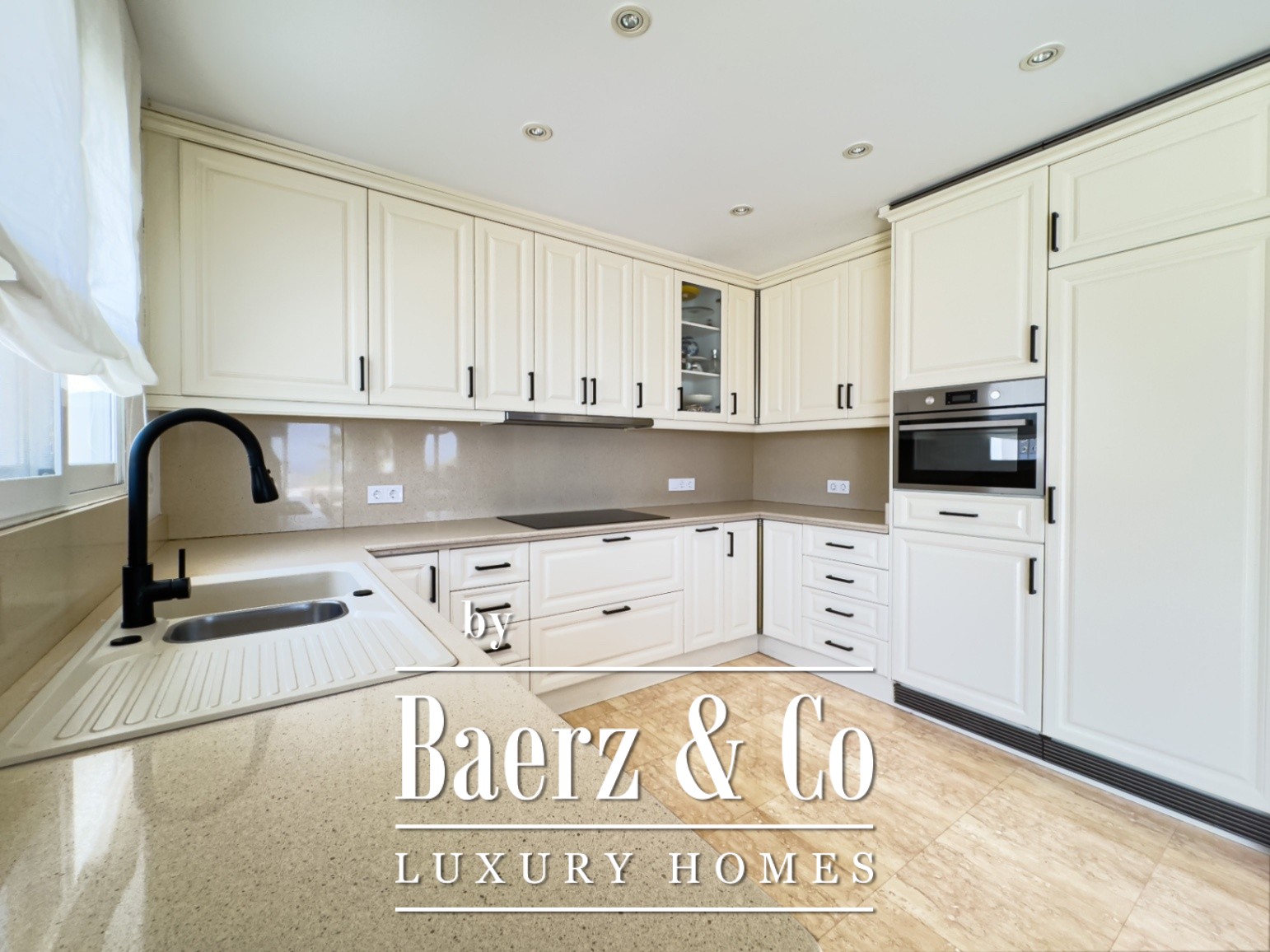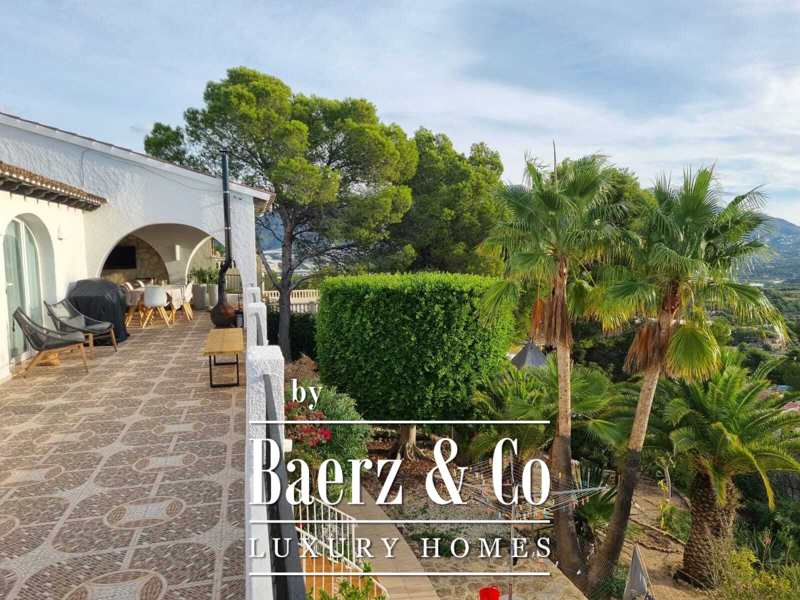 Outside, an array of palm and fruit trees create a sense of quiet seclusion. The private pool, dedicated parking, and refined garden spaces complete the sense of retreat. The outdoor kitchen enhances the Mediterranean atmosphere, making alfresco living effortless.