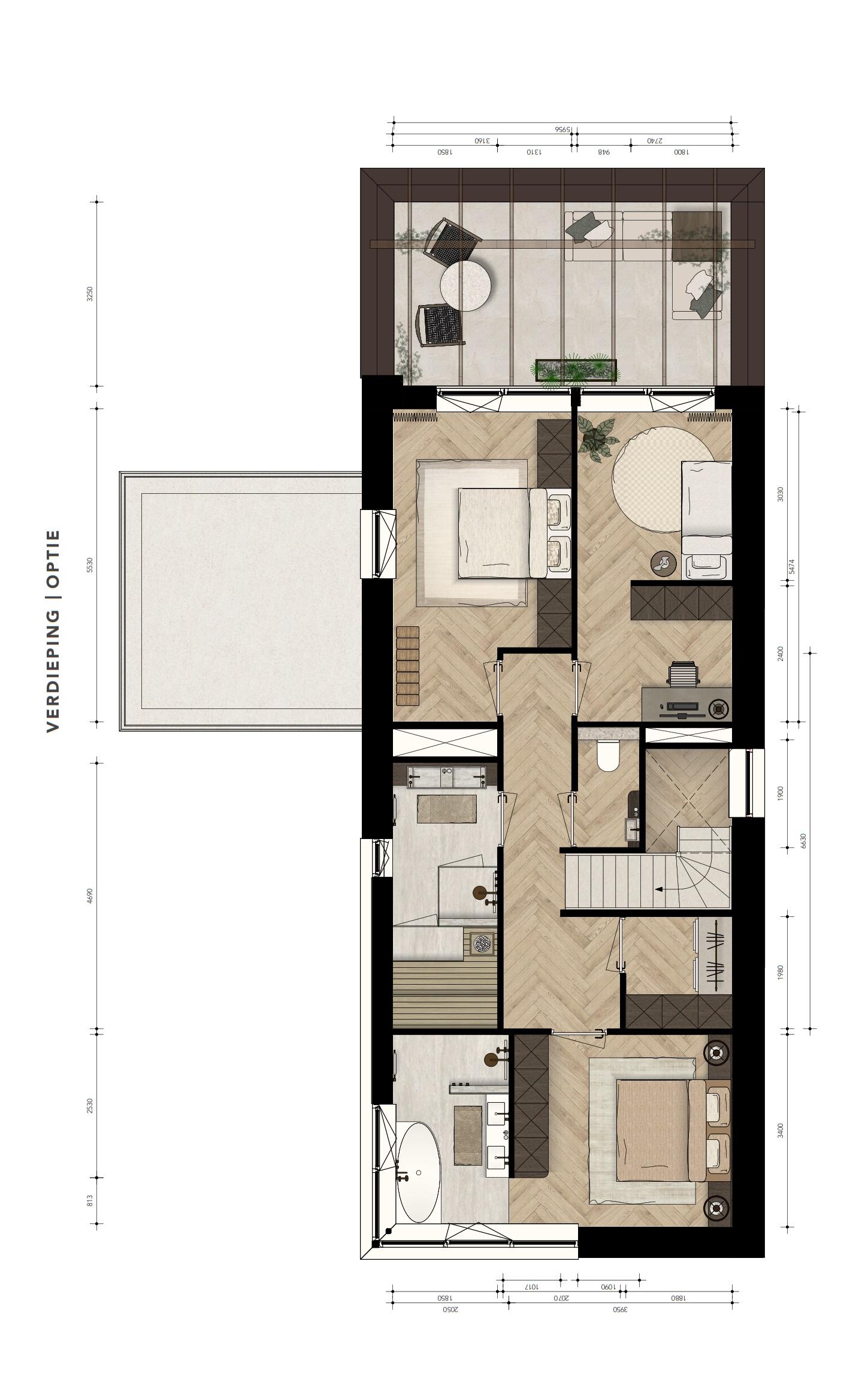 Furthermore, the ground floor will be equipped with a spacious bedroom with bathroom (shell) entirely according to the buyer's wishes.