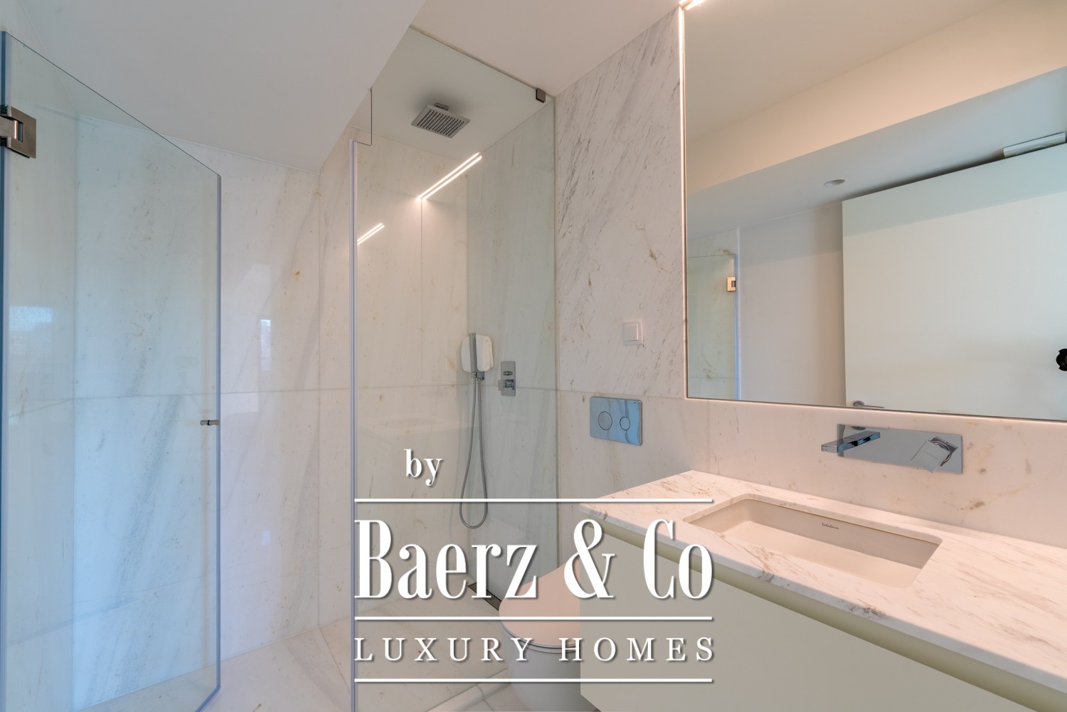 Attention to detail is evident throughout, from high-quality materials and Siemens appliances to air conditioning and an A-rated energy credential. Two parking spaces, each equipped for electric vehicle charging, underscore a commitment to sustainable mobility, while two storage rooms provide discreet organization.