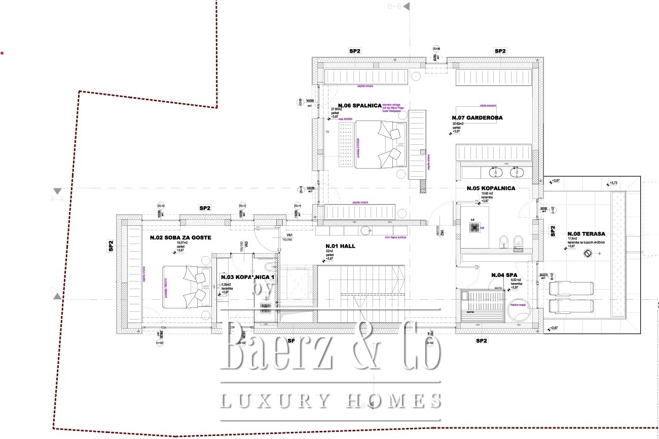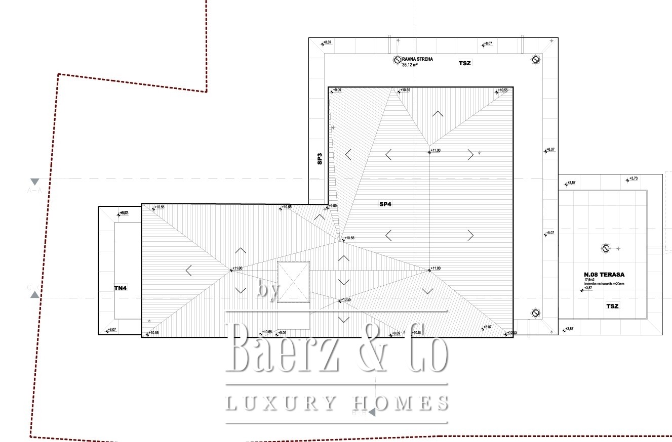 The property is sold in its third extended construction phase, with its exterior—façade, roof, windows, and entrance doors—already completed. This allows the new owner to shape the interior experience, whether envisioning a luxurious family home or an exclusive residence with dedicated space for leisure and wellness.