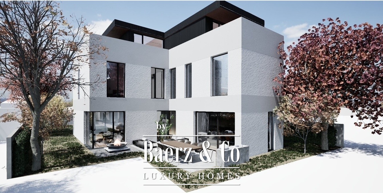 Villa in Rožna Dolina Ljubljana defines modern residential architecture in one of the city's most coveted locations. Situated on an 822 m² plot, this exceptional villa offers 446 m² of living space across a basement, ground floor, first floor, and attic, presenting striking lines and panoramic windows that invite abundant daylight and foster a seamless connection to the surrounding landscape.