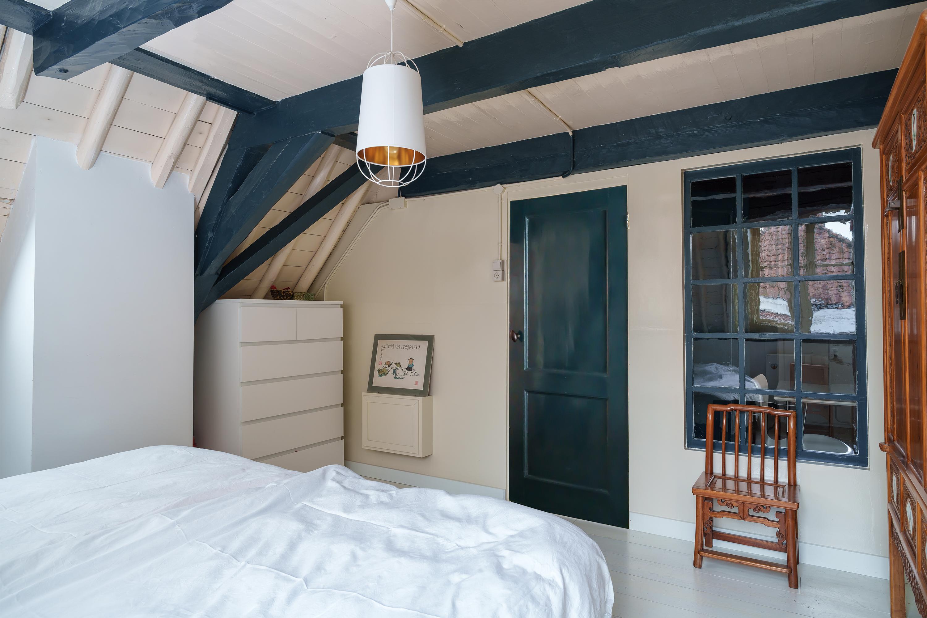 The characteristic beam construction is also clearly visible on this floor and underlines the historic character of the house. At the front of the house are two comfortable bedrooms, both with a view of the characteristic Dorpsstraat. Both have large windows and a skylight, allowing plenty of pleasant daylight to enter.