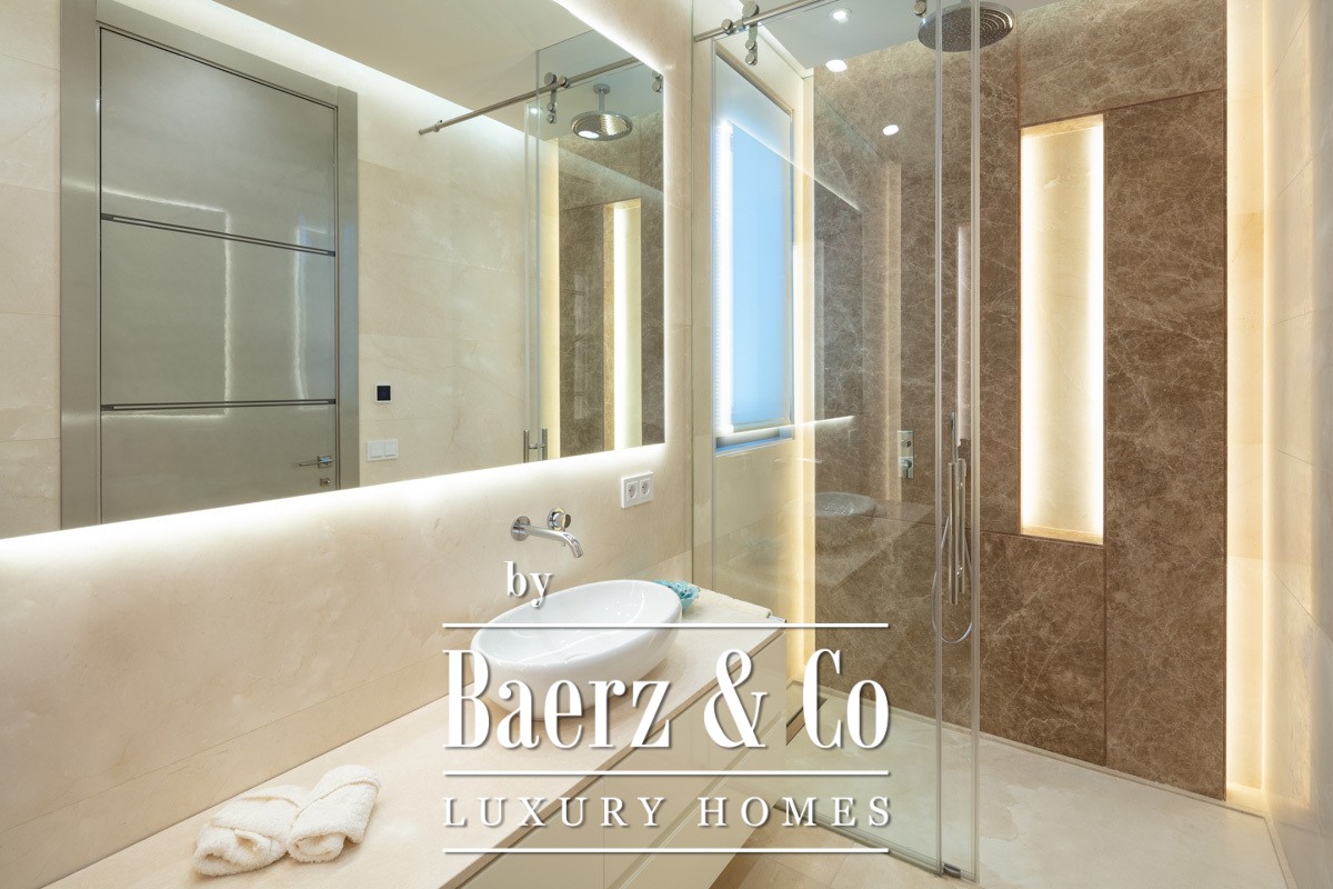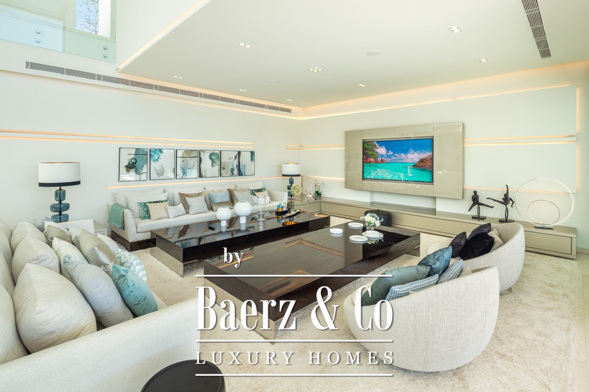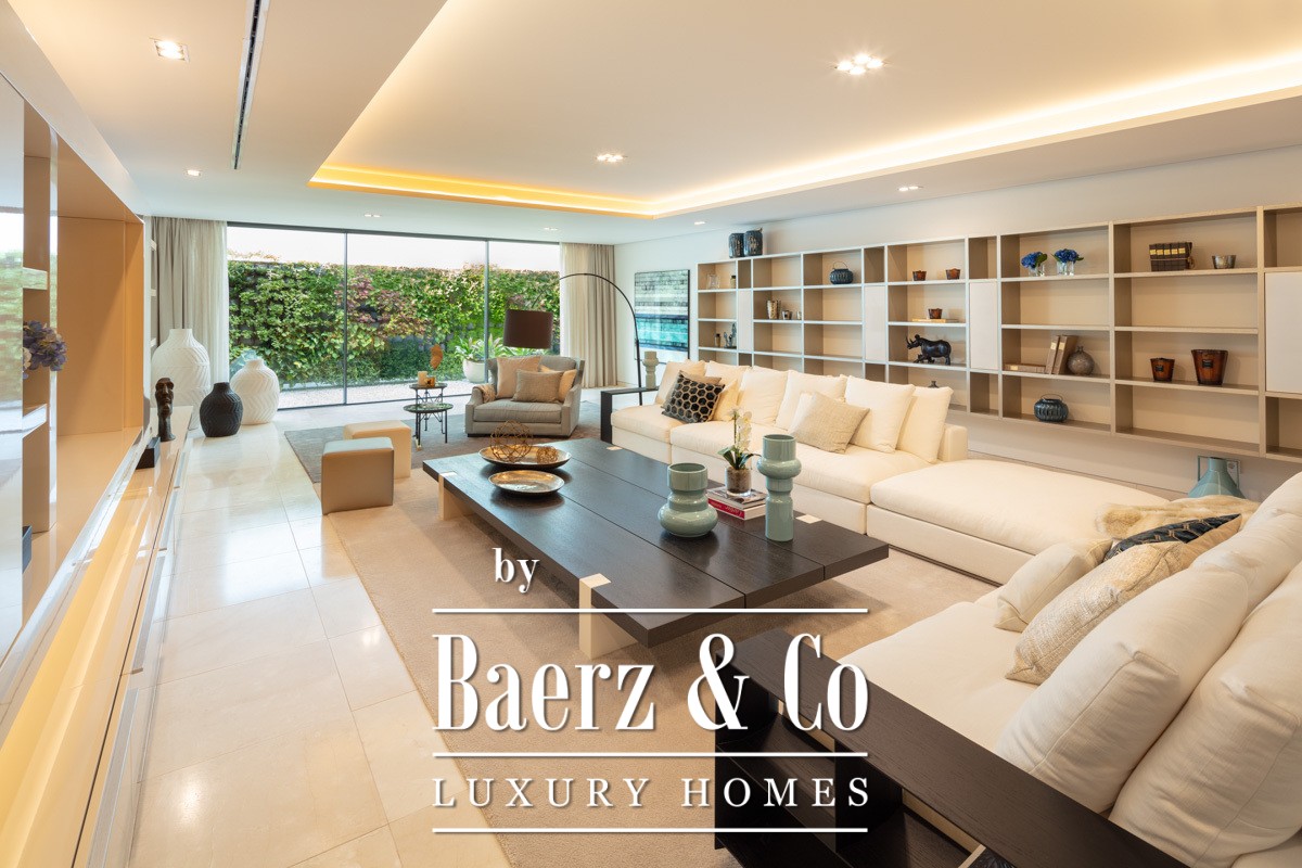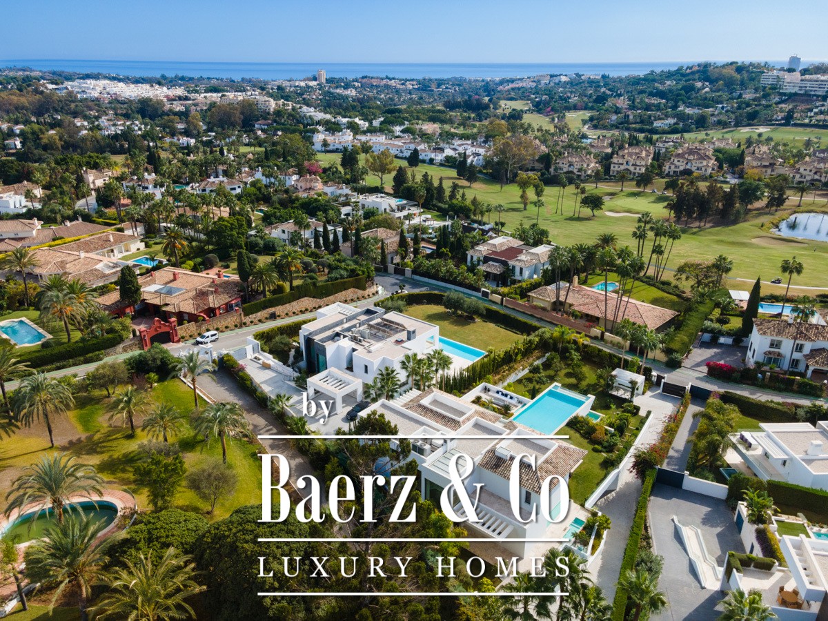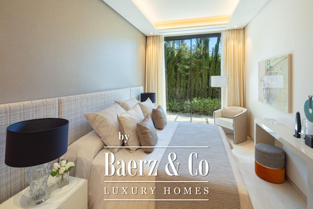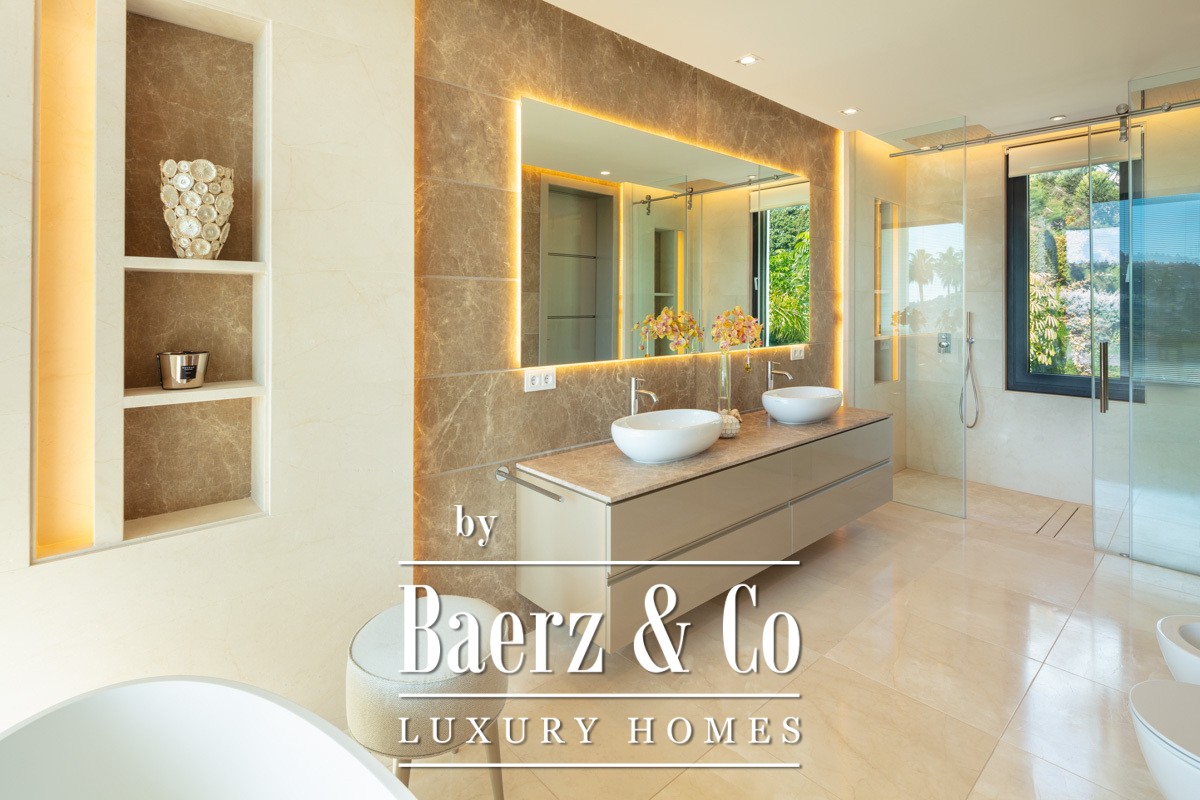 This stunning modern villa is located in the prestigious community of La Cerquilla. Nestled in the heart of the Golf Valley, this luxurious home is located within a short distance to all amenities of Nueva Andalucía and the exclusive golf courses. This bespoke home has been finished to the highest quality standards, offering top quality materials throughout. Distributed over three levels, villa welcomes you into an impressive entrance hall with double height ceiling, which leads to a large open-plan living area. The large living room is furnished with high quality furniture and overlooks the tropical garden of the villa. The