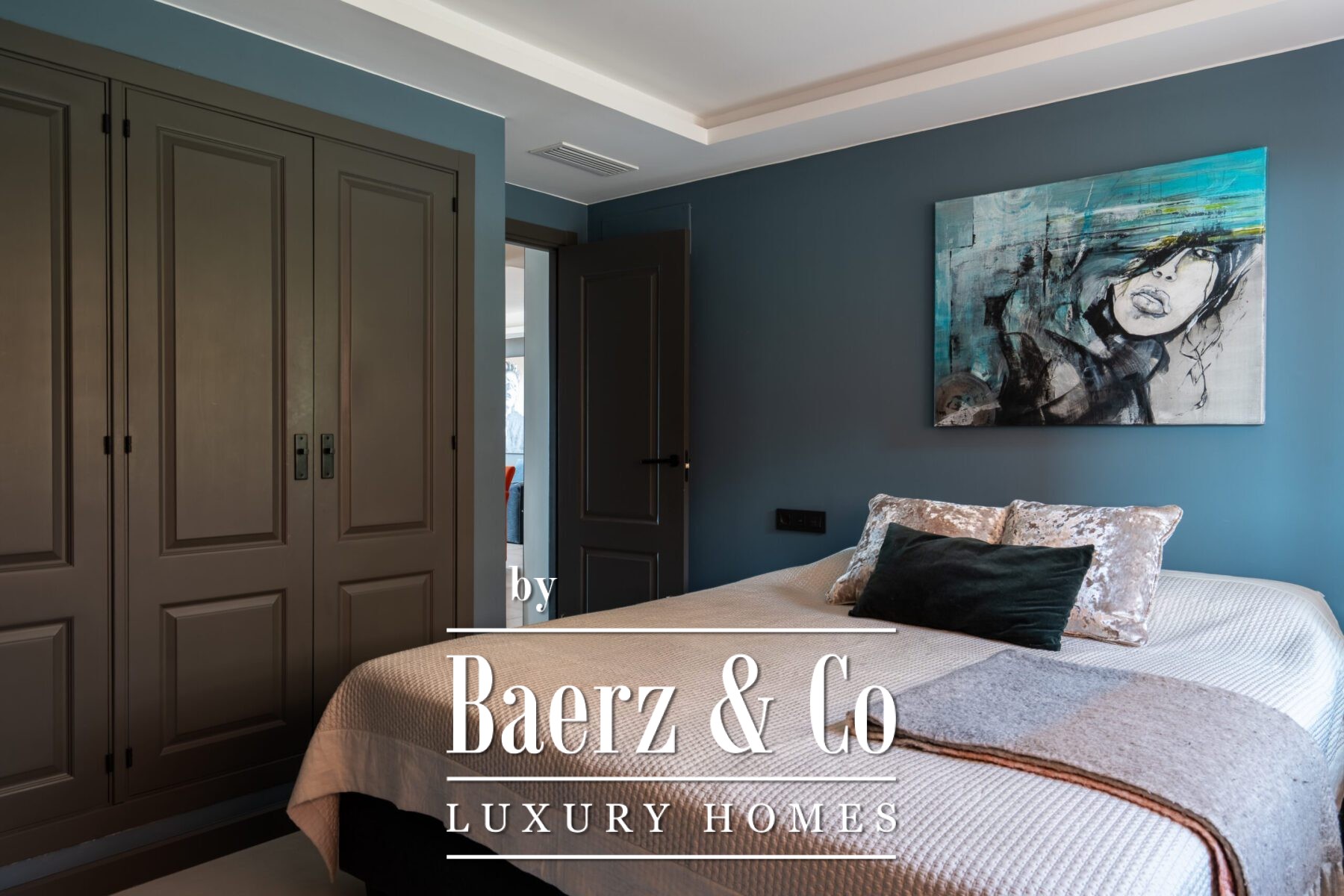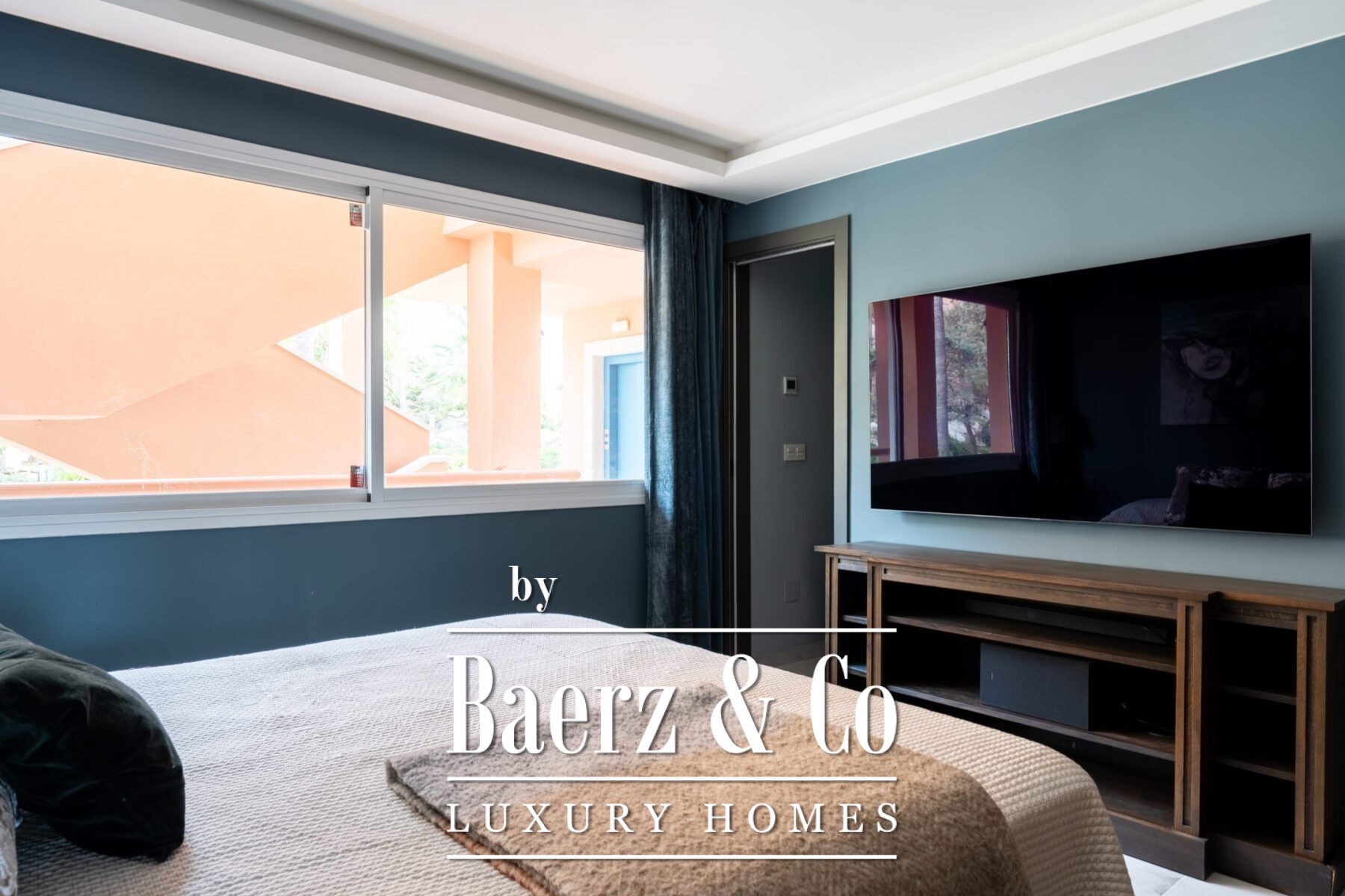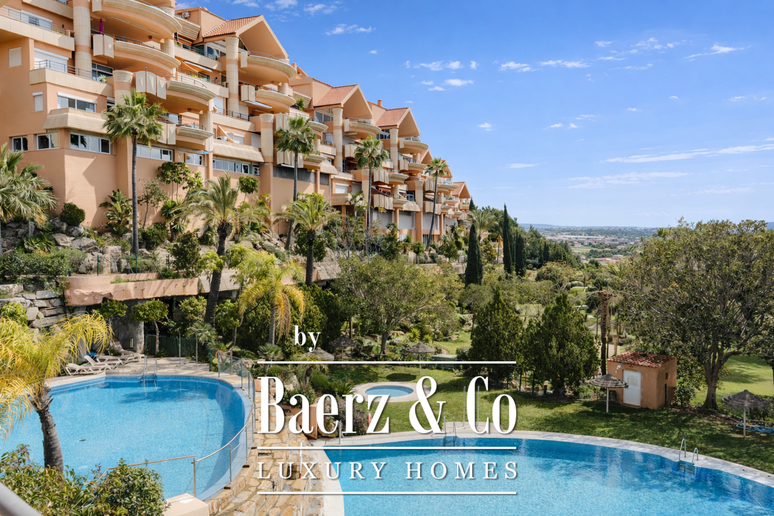 Two of the bedrooms feature en suite bathrooms, while the master bedroom is complemented by a walk in closet. Underfloor heating runs throughout the apartment, and the kitchen and bathrooms reflect high specification finishes. The secure, sought after complex is within walking distance to Los Naranjos Golf Club, its restaurant, and nearby amenities, with the beach and Puerto Banús only a short drive away.