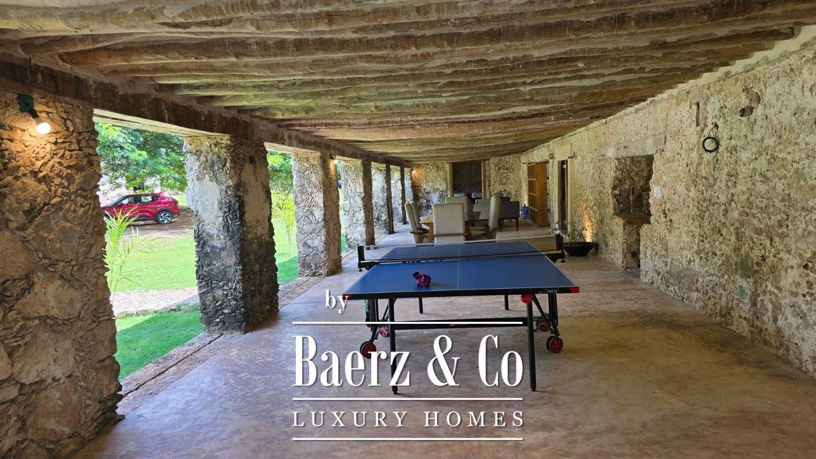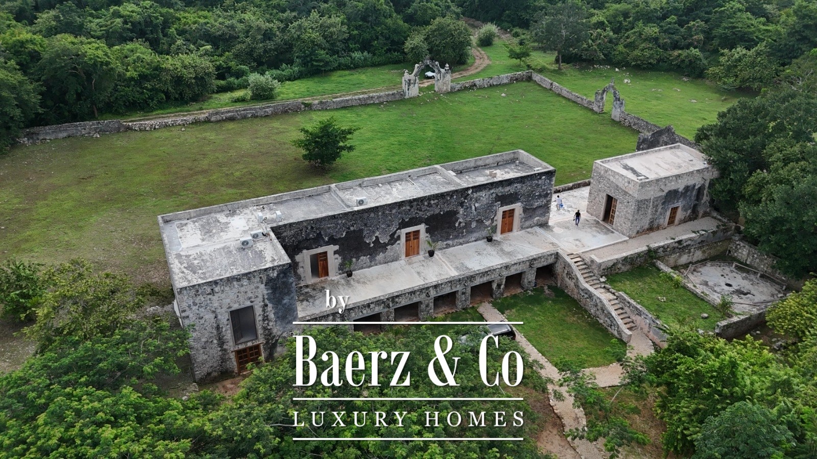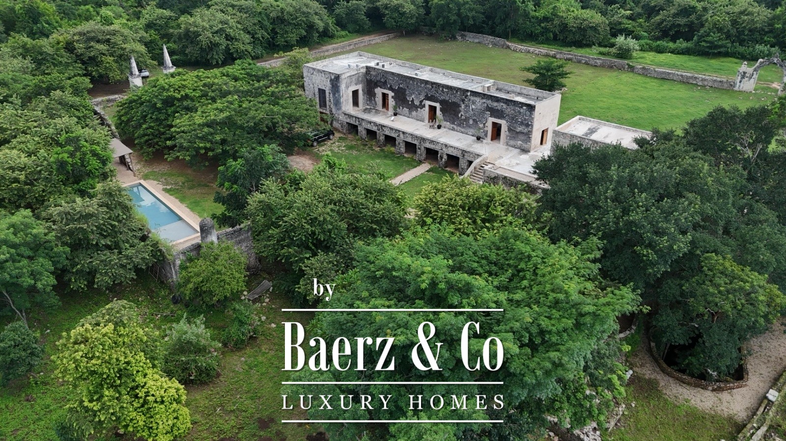 The estate is surrounded by jungle, with cenote views enhancing the experience of place. Colonial corridors, original stone walls, an orchard under restoration, and a swimming pool with lounge areas create layered moments throughout the grounds. The cenote itself reveals stone waterfalls and crystal-clear waters accessed by a hand-crafted zapote wood staircase, providing an intimate connection to the land’s legacy.