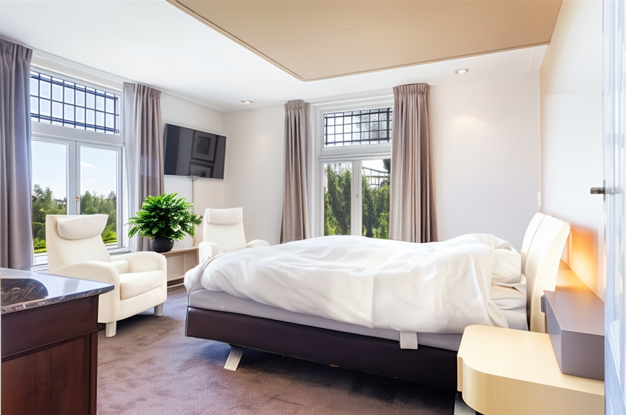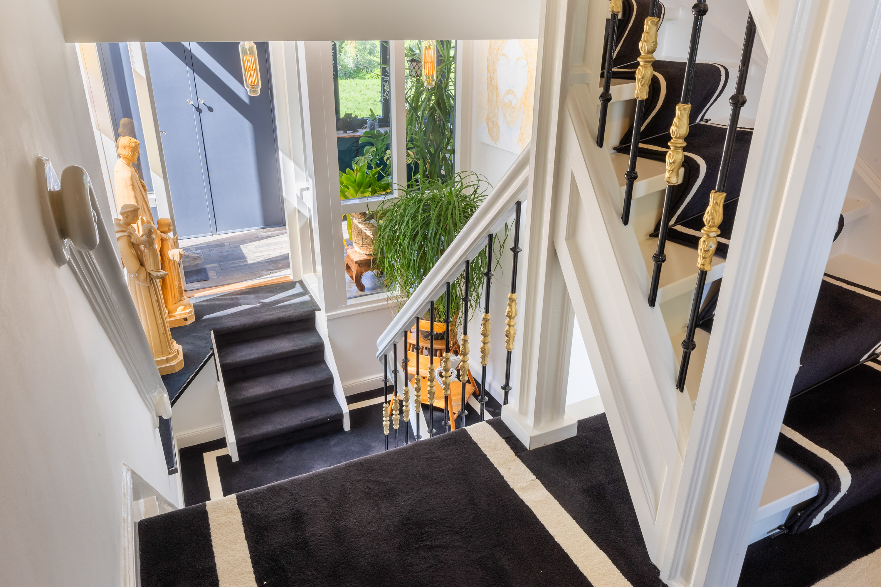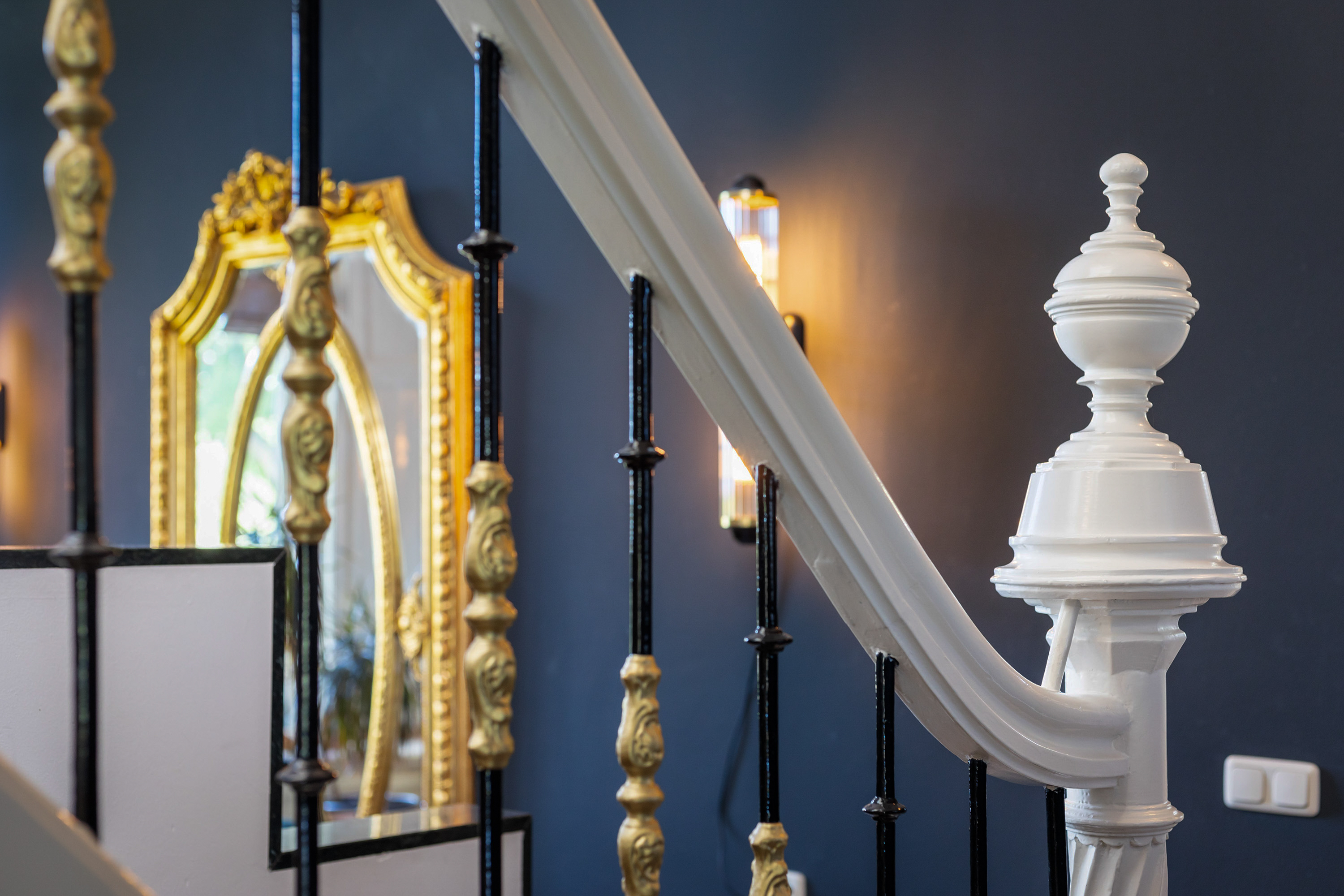One floor above, a remarkable feature reveals itself: the fully restored conservatory. Surrounded by glass, this space offers breathtaking views of the river landscape and serves perfectly as a lounge or retreat. An intimate roof terrace adjoins this area. This level also accommodates three comfortable bedrooms, a walk-in dressing room and a spacious bathroom equipped with a bath, separate shower, double washbasin and WC.