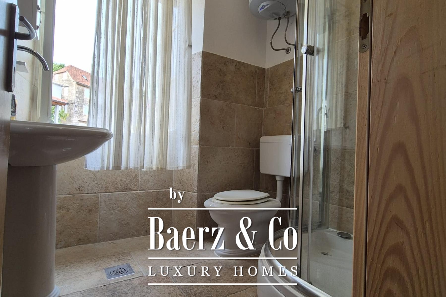 Stone house Milna Croatia seafront embodies the singular rhythm and presence of the Adriatic. Set on the island of Brač, this semi-detached stone property stands in the historic core of Milna, occupying a rare first-row position beside the water. The structure spans 220 m² across three levels, blending residential calm with commercial potential at the heart of the village.