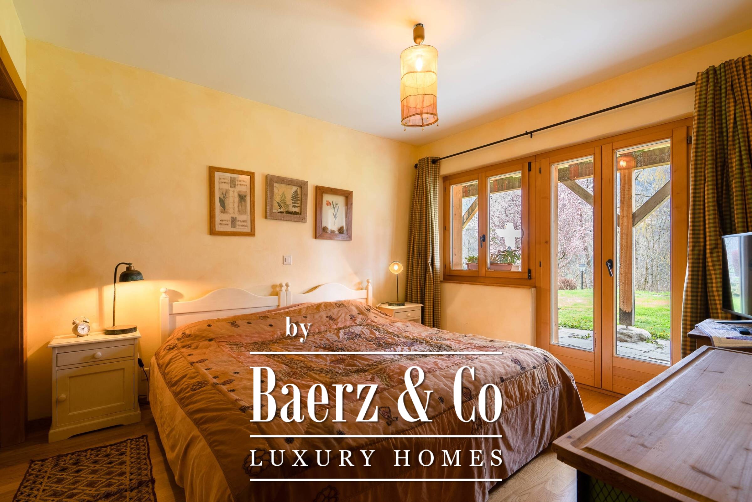 The chalet unfolds across 323 m², with a large open living room beneath a soaring roof, a kitchen merging seamlessly with the dining area, and direct access to a terrace and balcony that capture the light and rhythm of the landscape. The master suite includes an en suite bathroom, dressing room, and private balcony. The ground floor extends to an ensuite bedroom, a relaxation room, and a studio of approximately 30 m², each space offering quiet connection to the garden. Additional features include a fireplace, sauna, laundry room, and cellar, each enhancing daily life with thoughtful design.