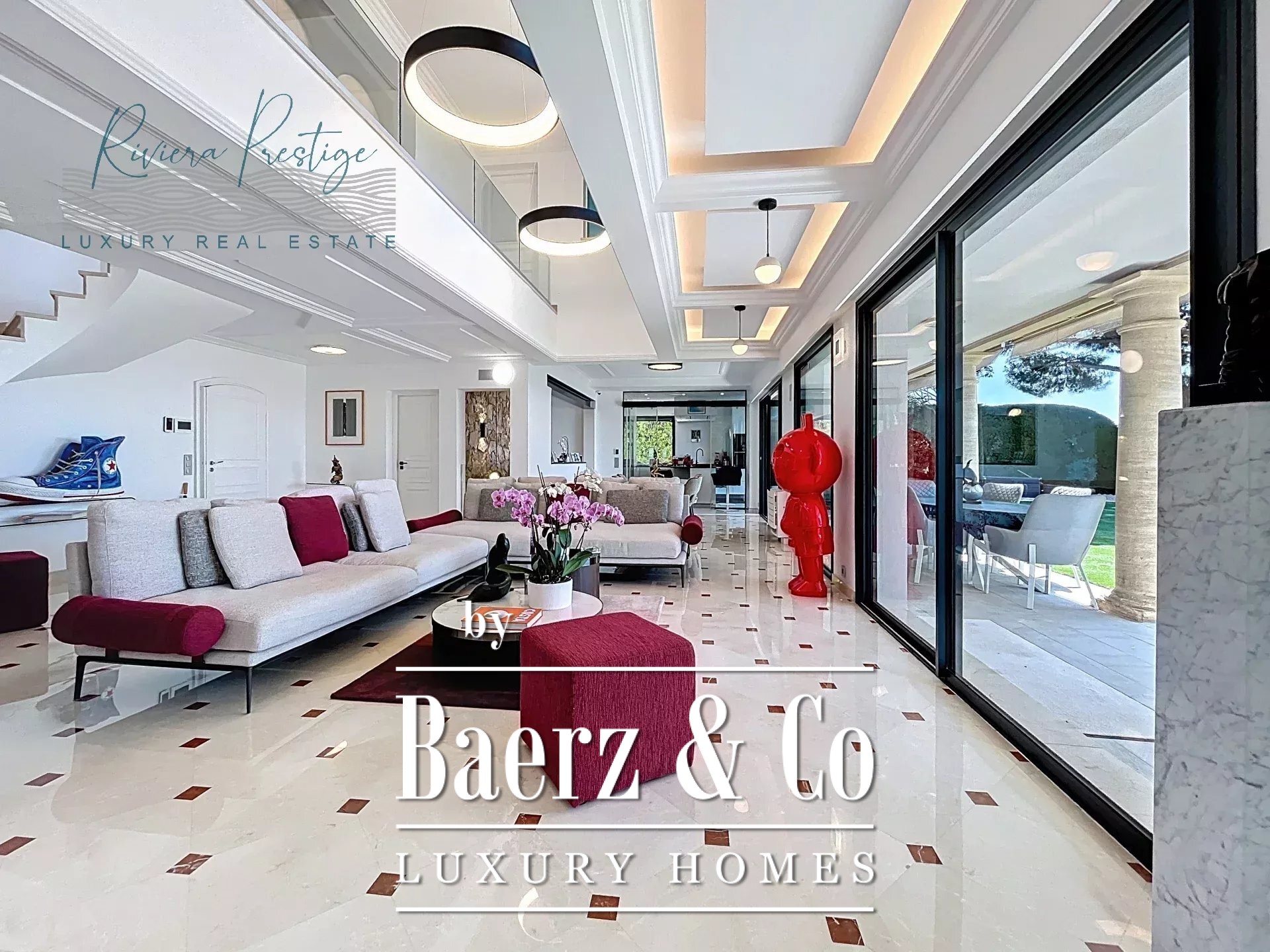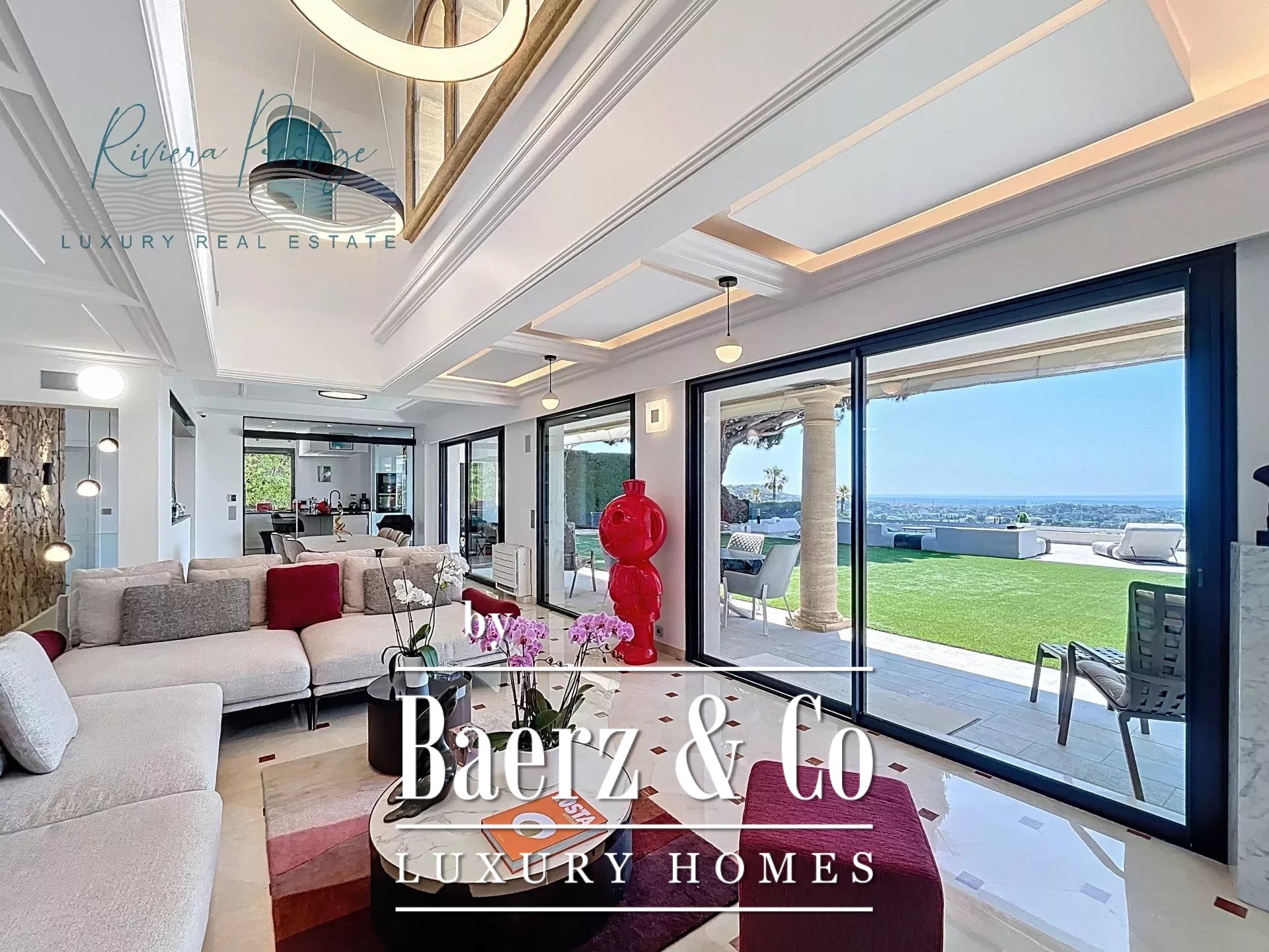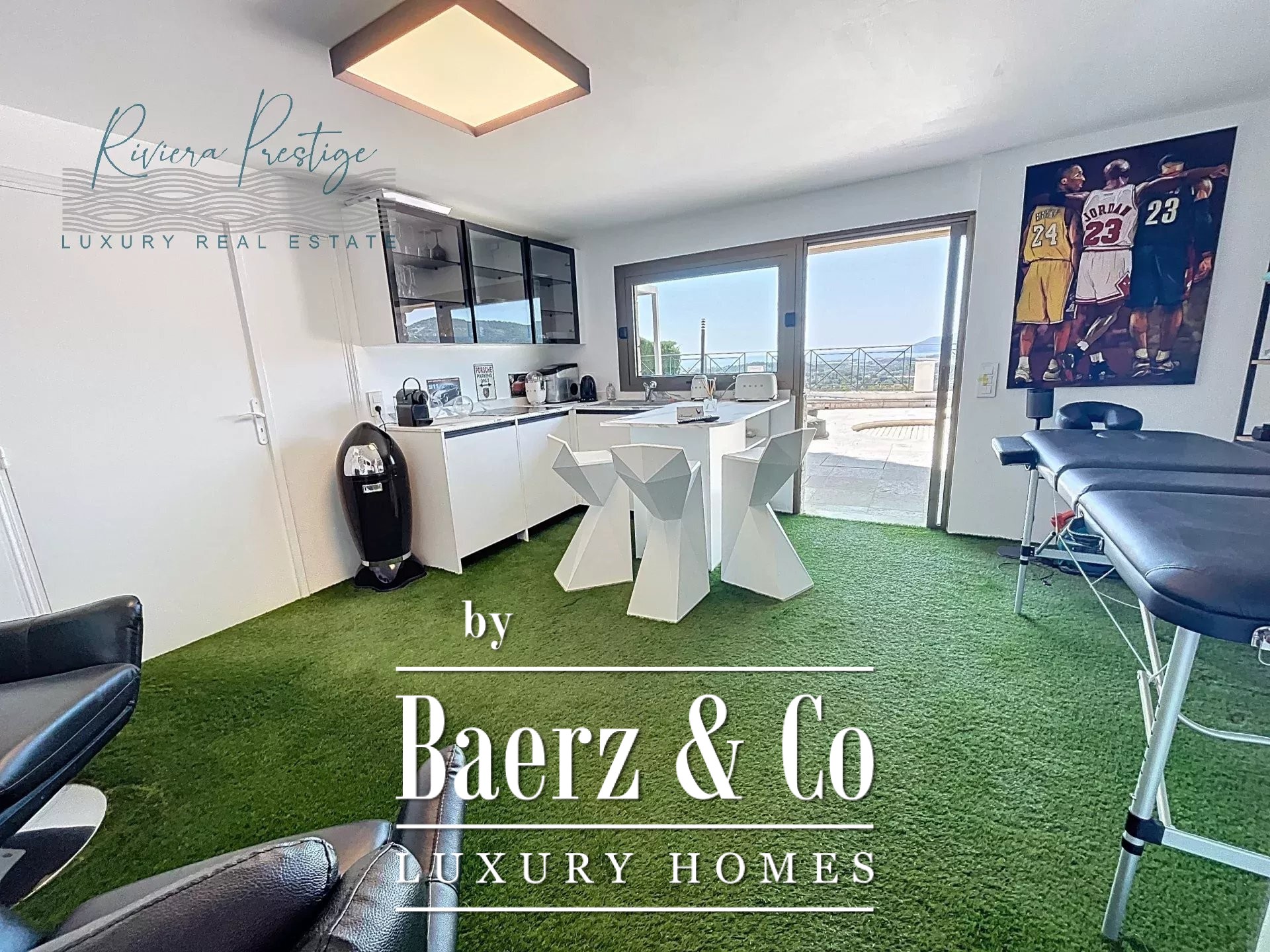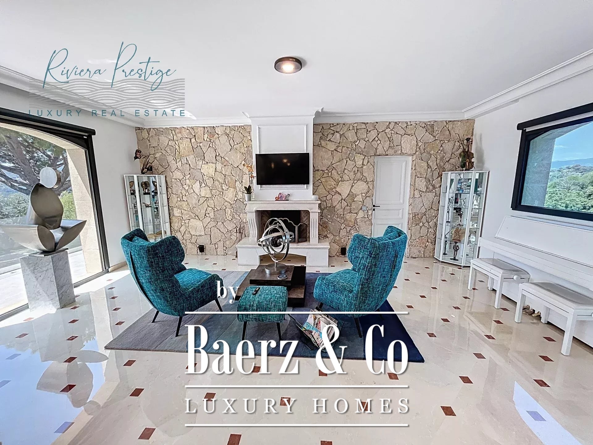 Villa Mougins presents a rare vantage point over the Mediterranean, offering uninterrupted sea views from its privileged setting near the Royal Golf Club. This seven-bedroom villa extends across 447 m² of living space, orchestrated for refined comfort and elegant daily living. The main living areas are spacious and purposeful, opening towards a landscaped garden that anchors the home in tranquility. Air conditioning ensures year-round comfort, while a whirlpool bath and fireplace enrich moments of retreat.