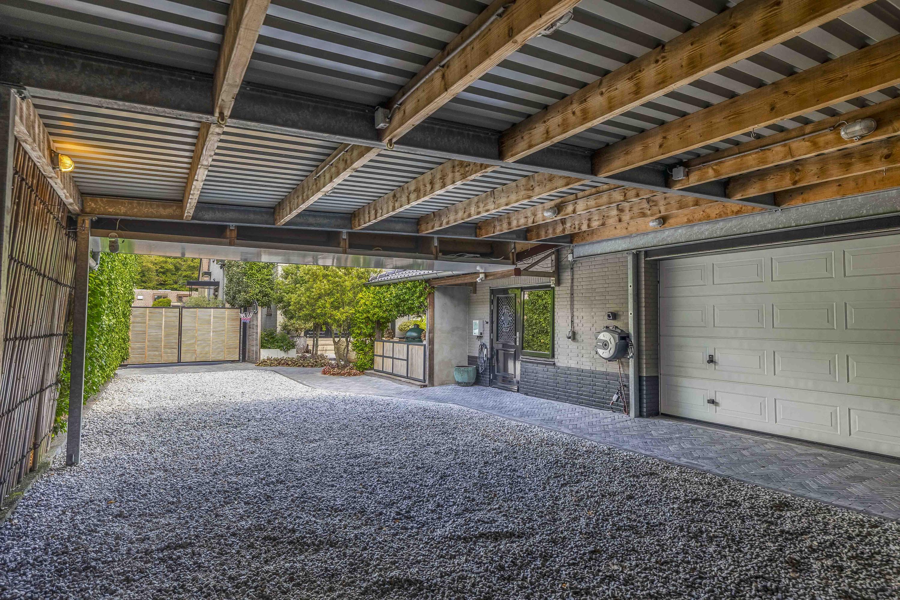 De luxe ervaring wordt doorgetrokken in het bijgebouw, ingericht als comfortabele lounge met bar en eigen toilet. Deze veelzijdige ruimte biedt volop mogelijkheden, zoals een hobbyruimte, thuiskantoor of plek om gasten te ontvangen. De hoogwaardige afwerking sluit perfect aan bij de woning en de tuin. In de royale, verwarmde garage en onder de riante carport is er voldoende ruimte voor meerdere luxe voertuigen. De elektrisch bedienbare toegangspoorten zorgen voor optimale veiligheid.