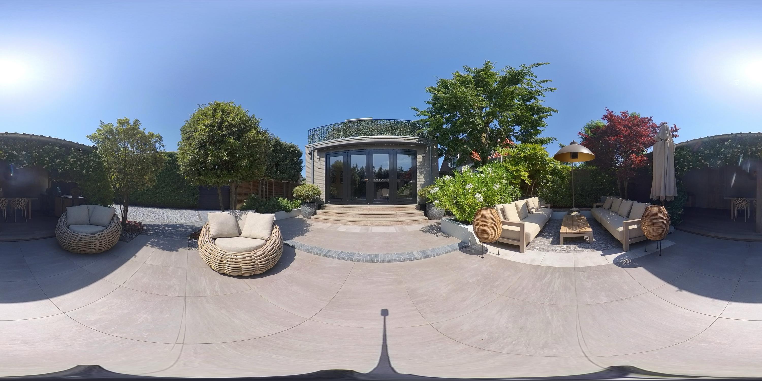 - Fraai aangelegde zonnige tuin met diverse terrassen en sfeervolle overkapping