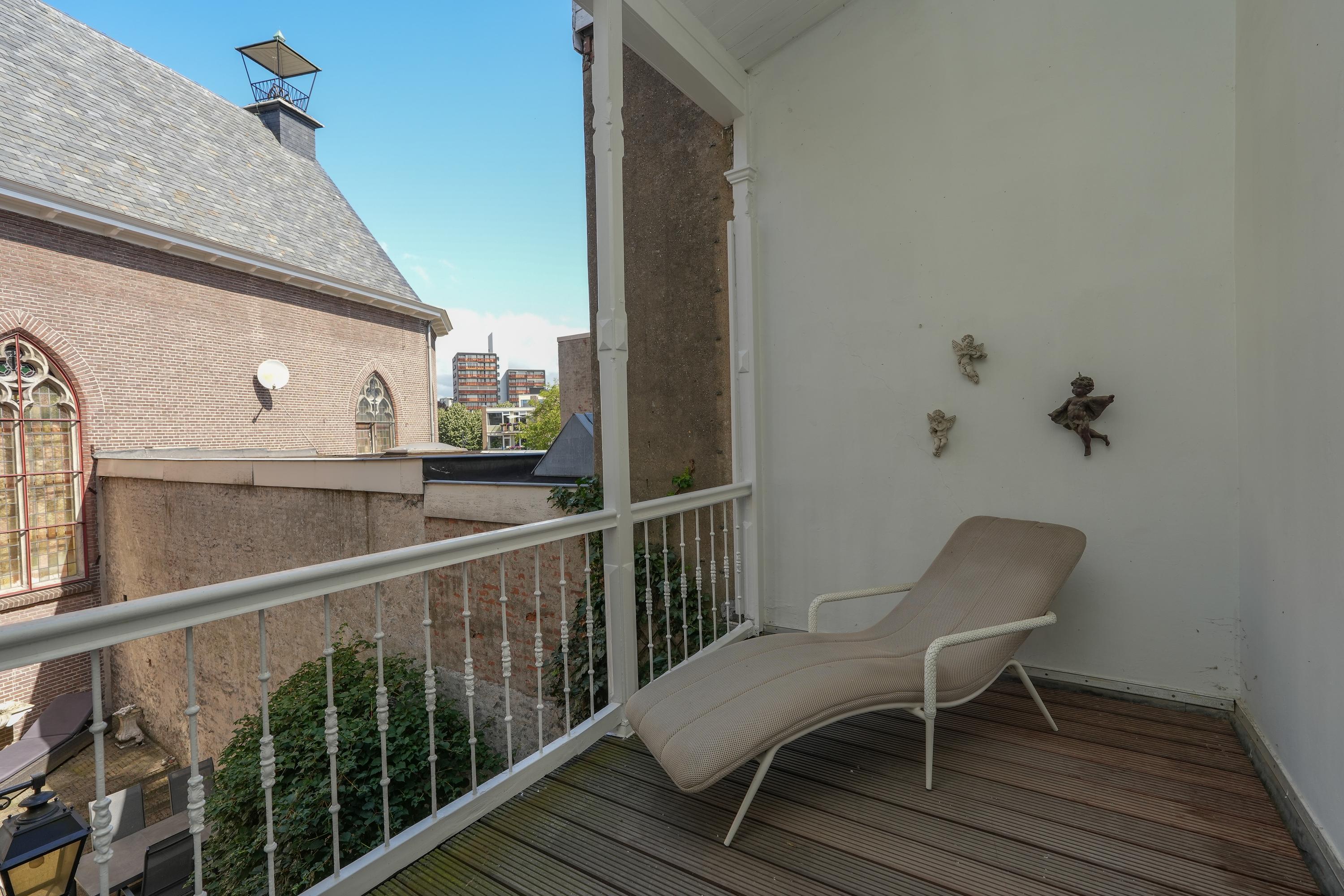 Naast een royale voortuin beschikt de woning over een balkon, loggia, dakterras én een stadstuin met veel privacy die grenst aan een voormalige kerk. De woning heeft vier woonlagen en elke verdieping is voorzien van een keuken, sanitair en een buitenruimte.